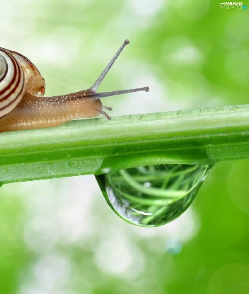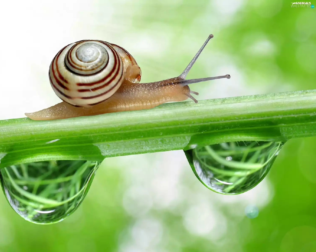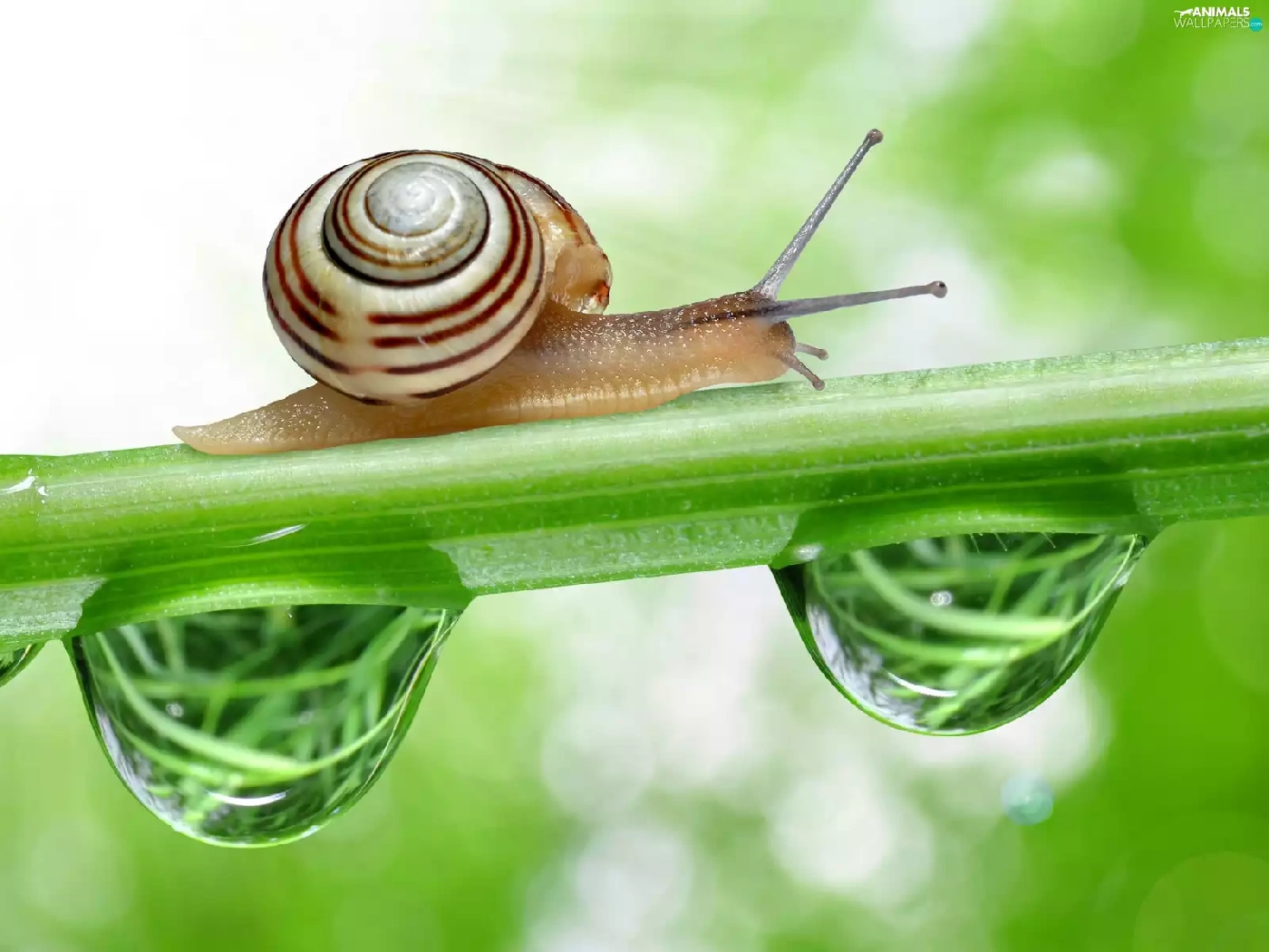 snail, drops, Close, stalk