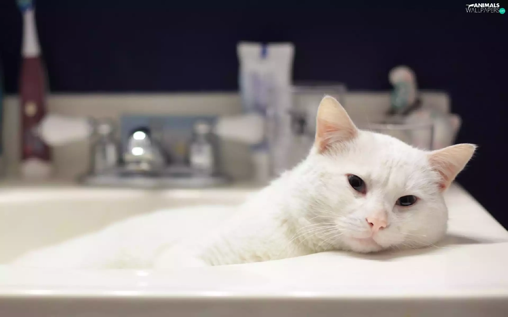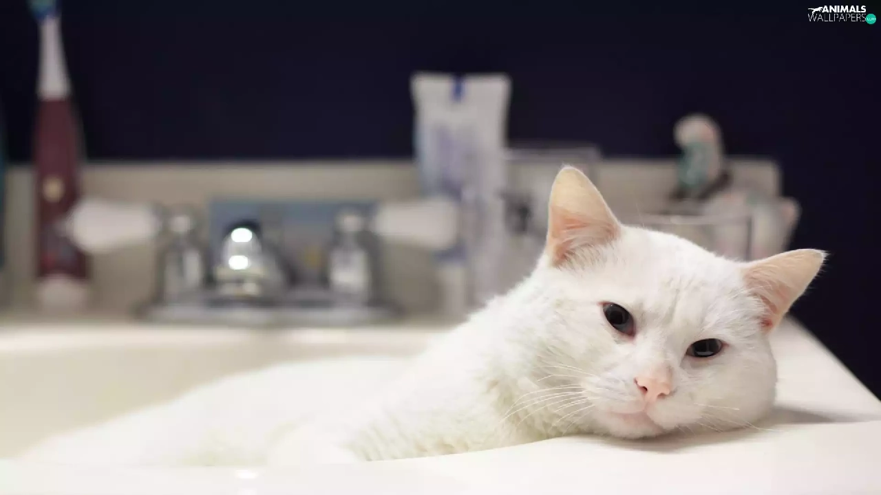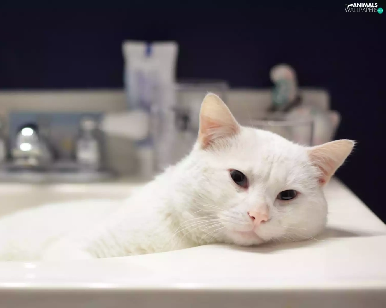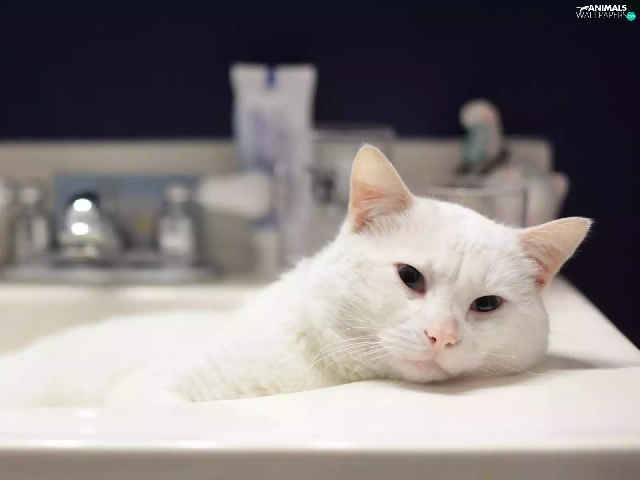 resting, cat, wash-stand