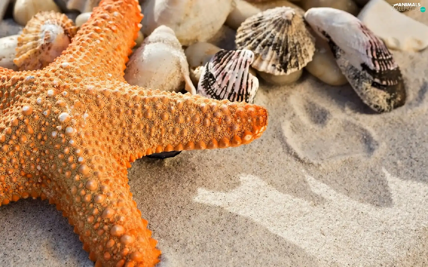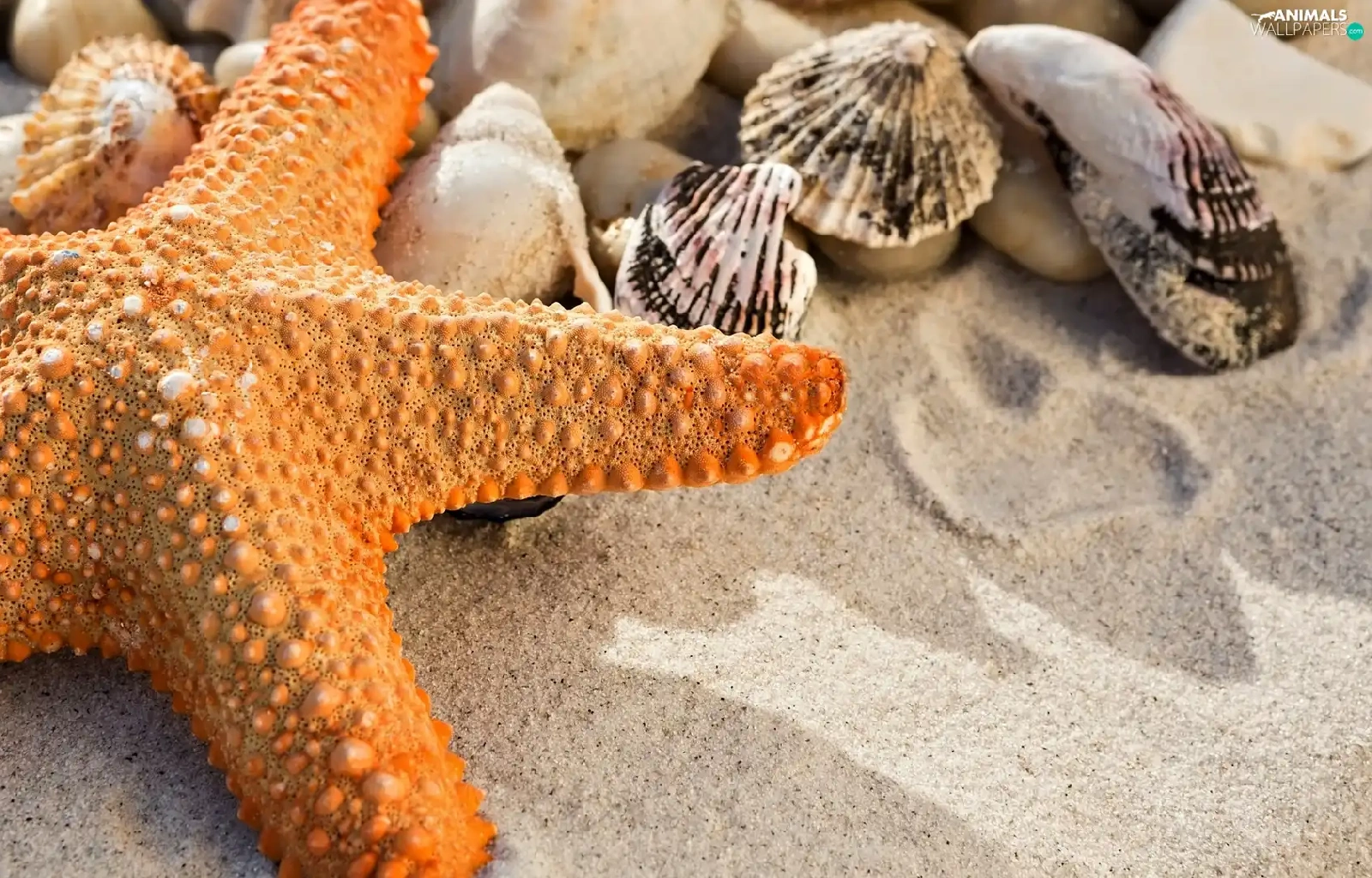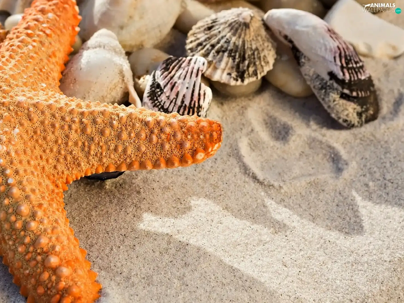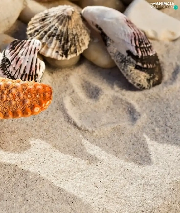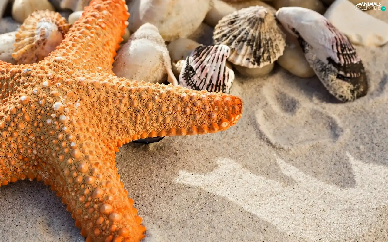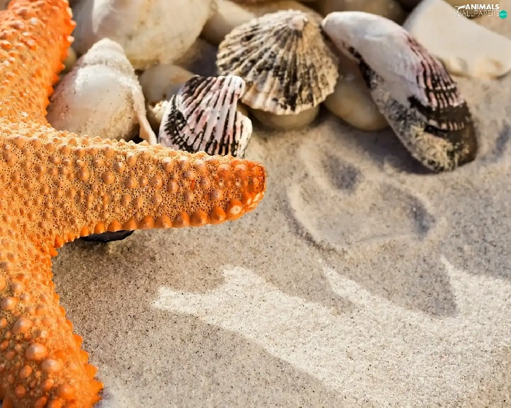 Orange, Shells, Sand, starfish