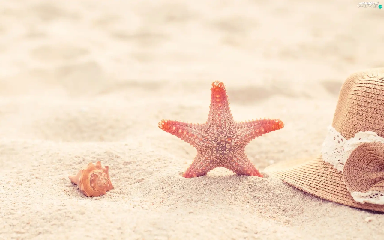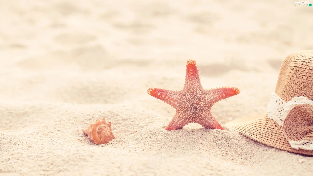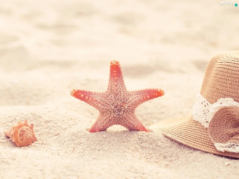 Sand, shell, Hat, starfish