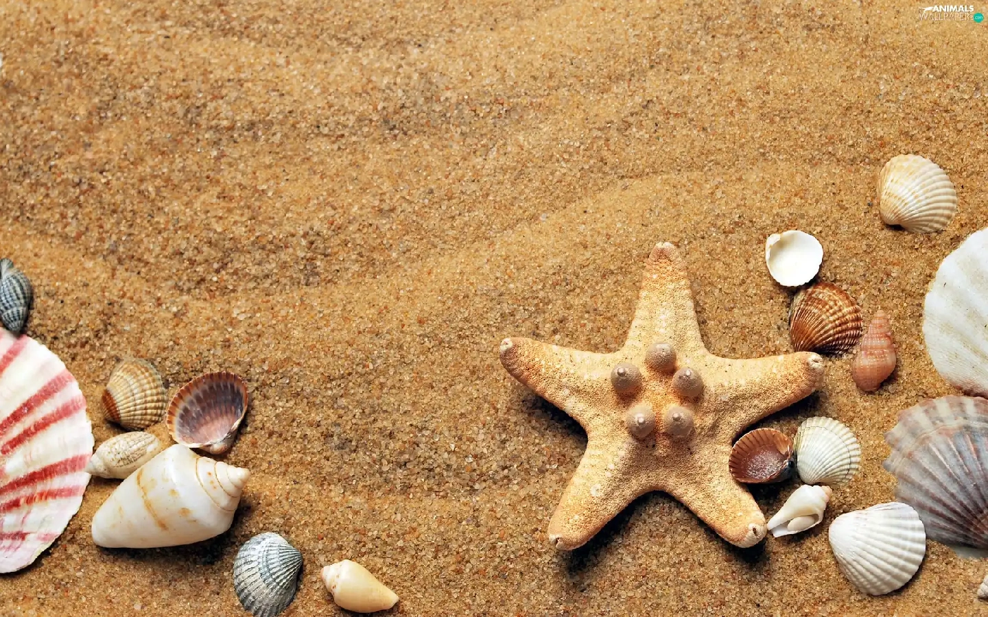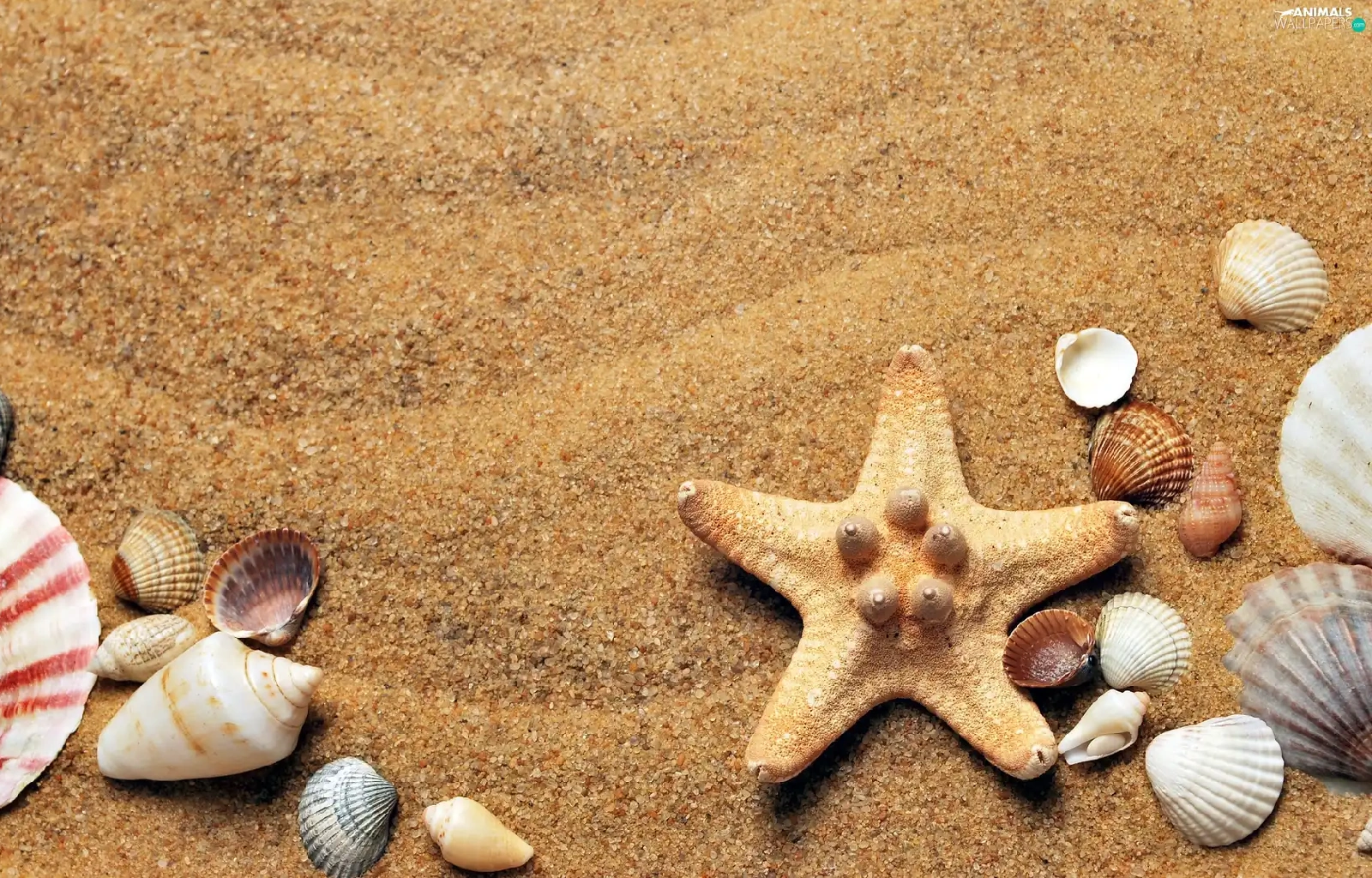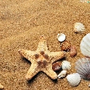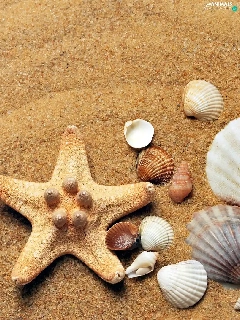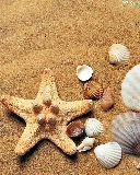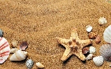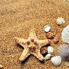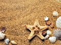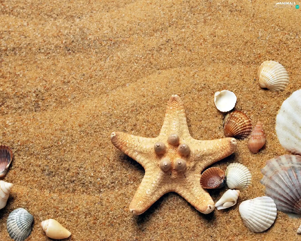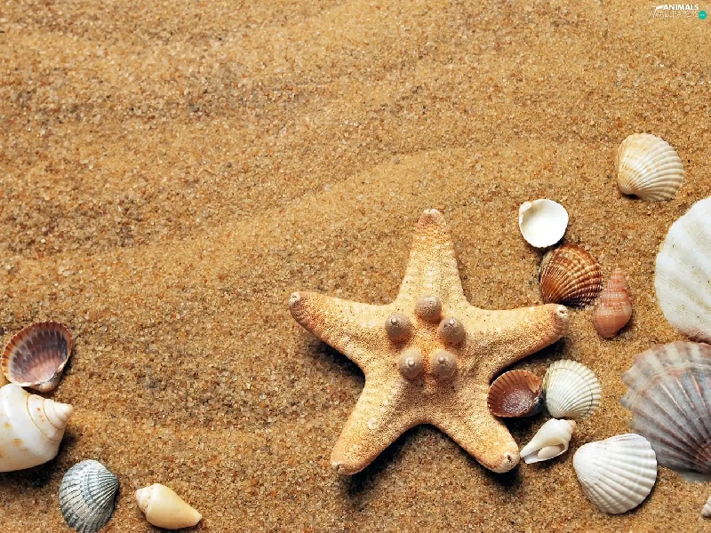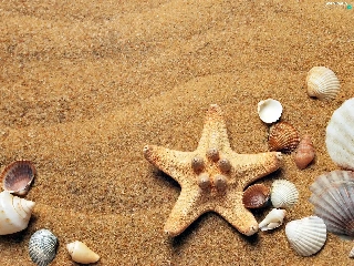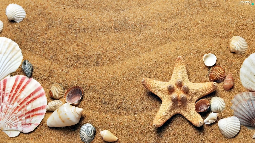 Shells, Sand, composition, starfish