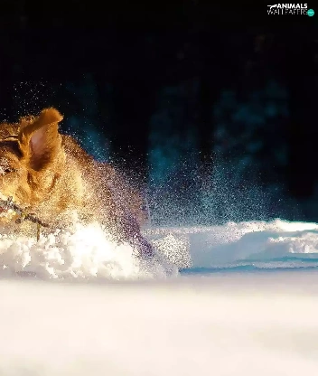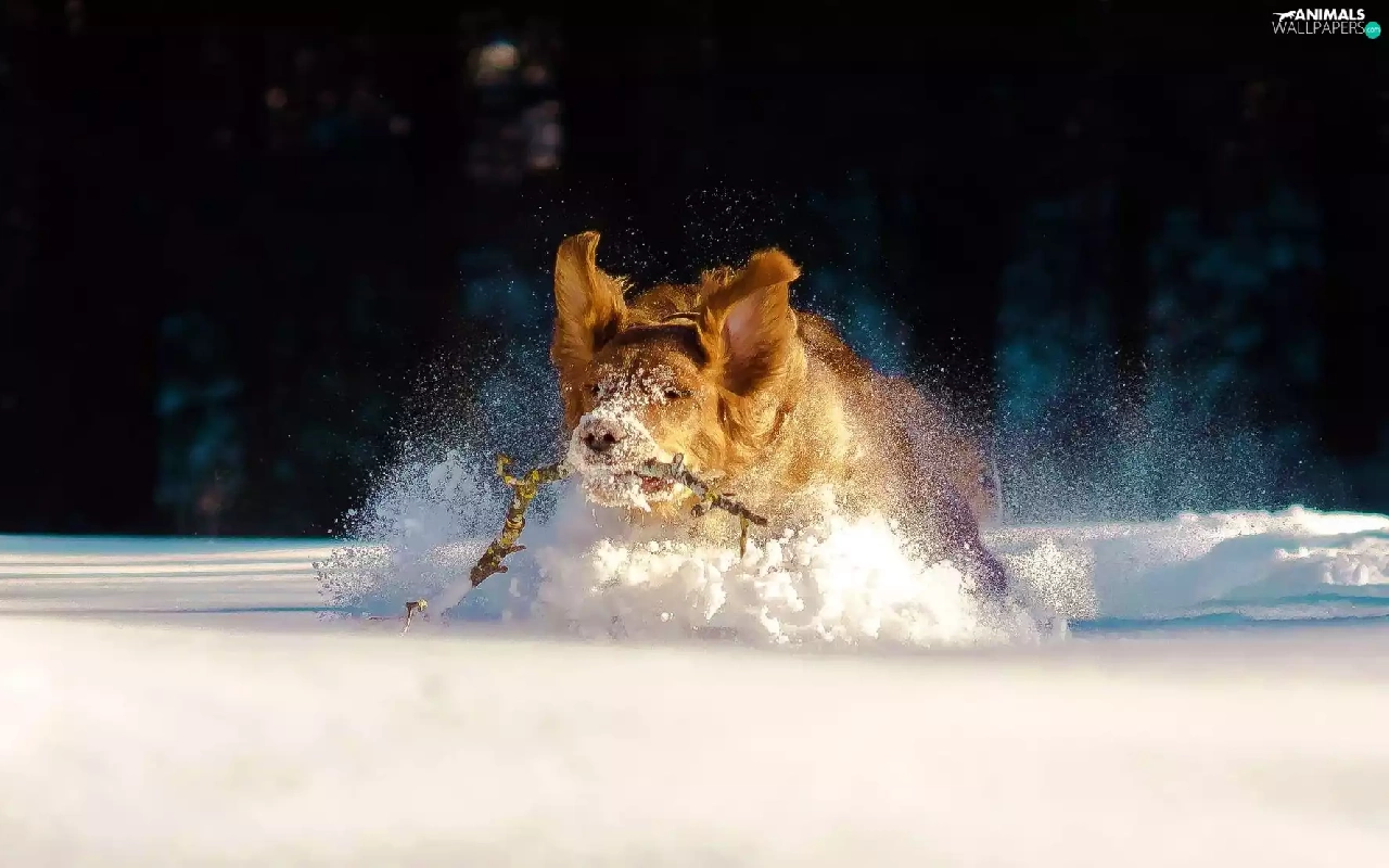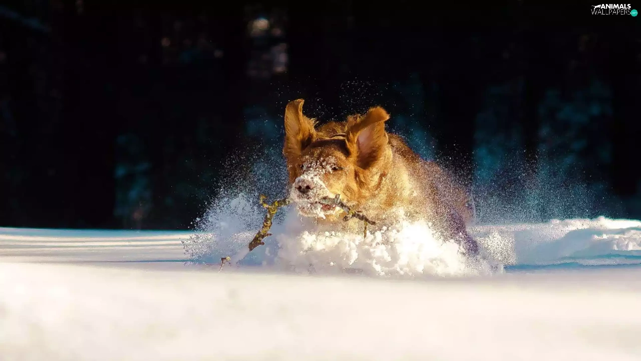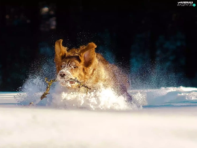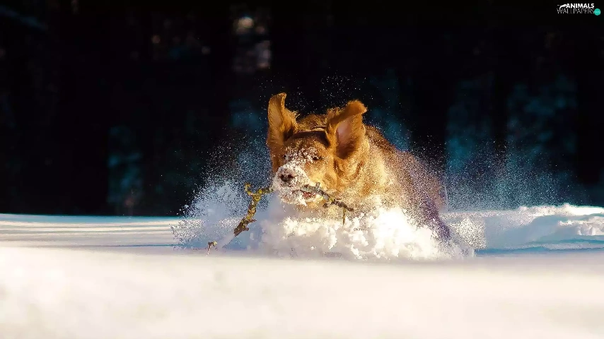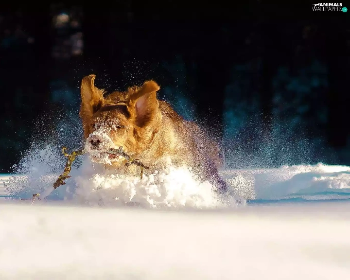dog, snow, drifts, Stick