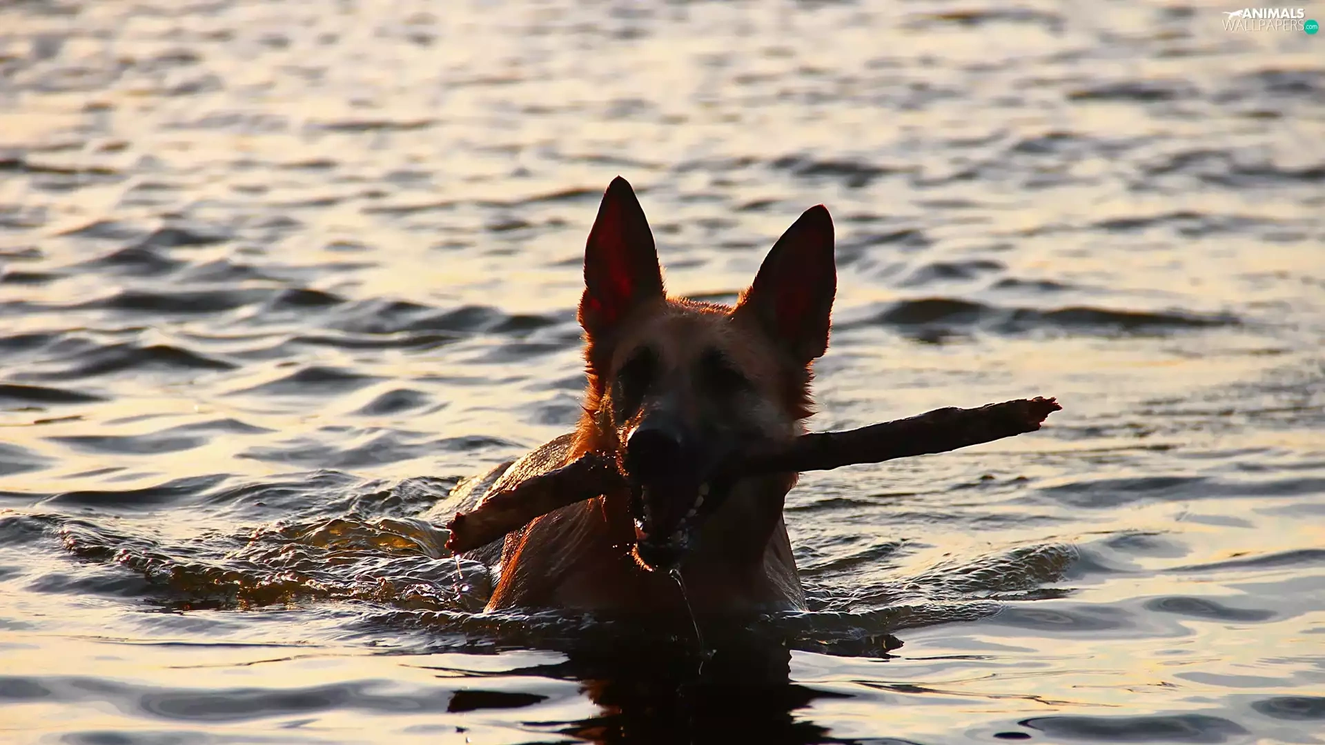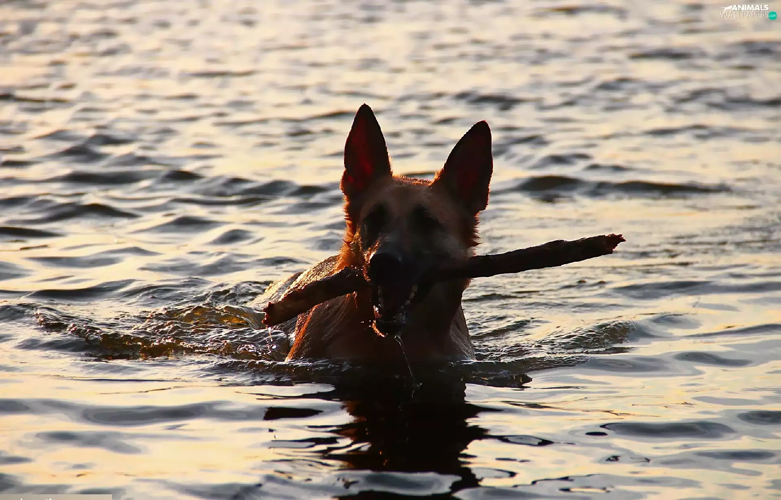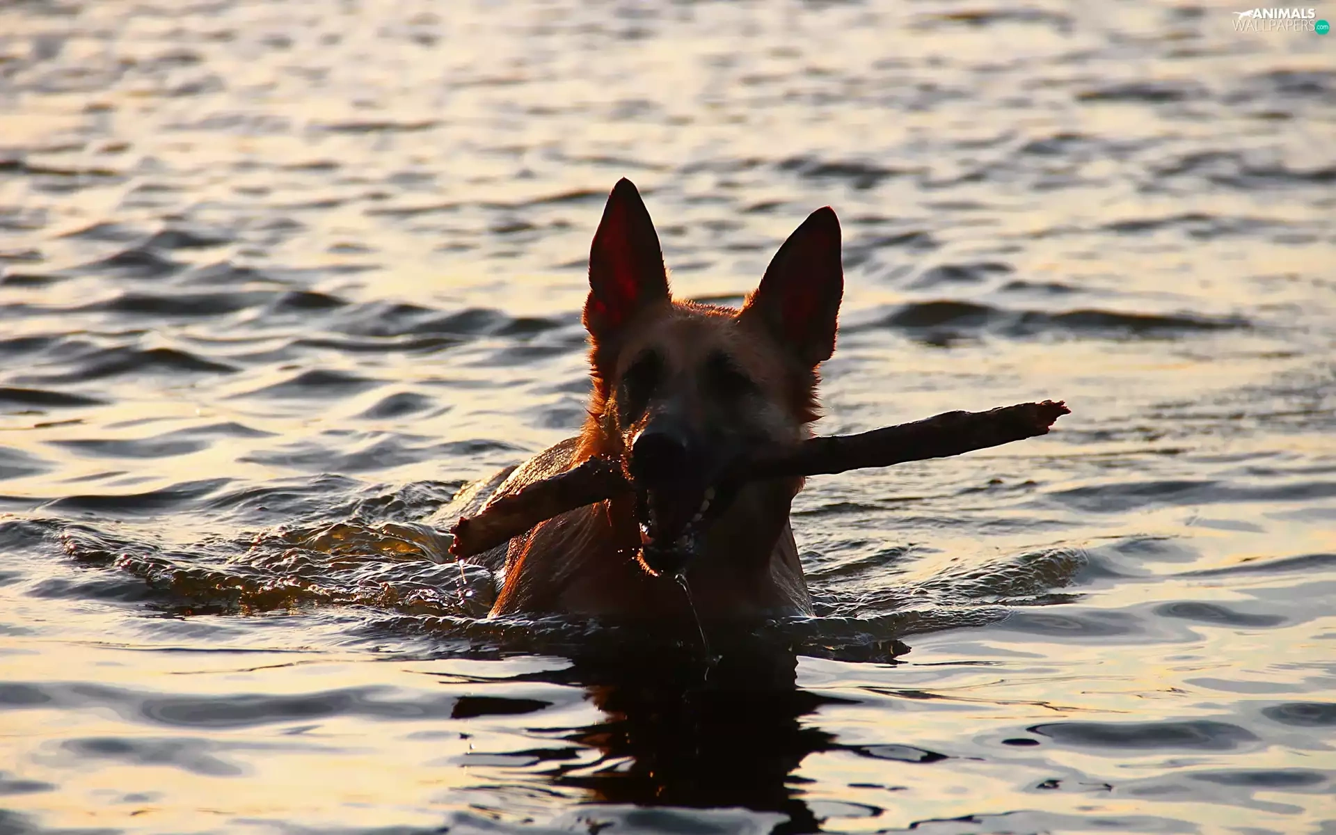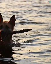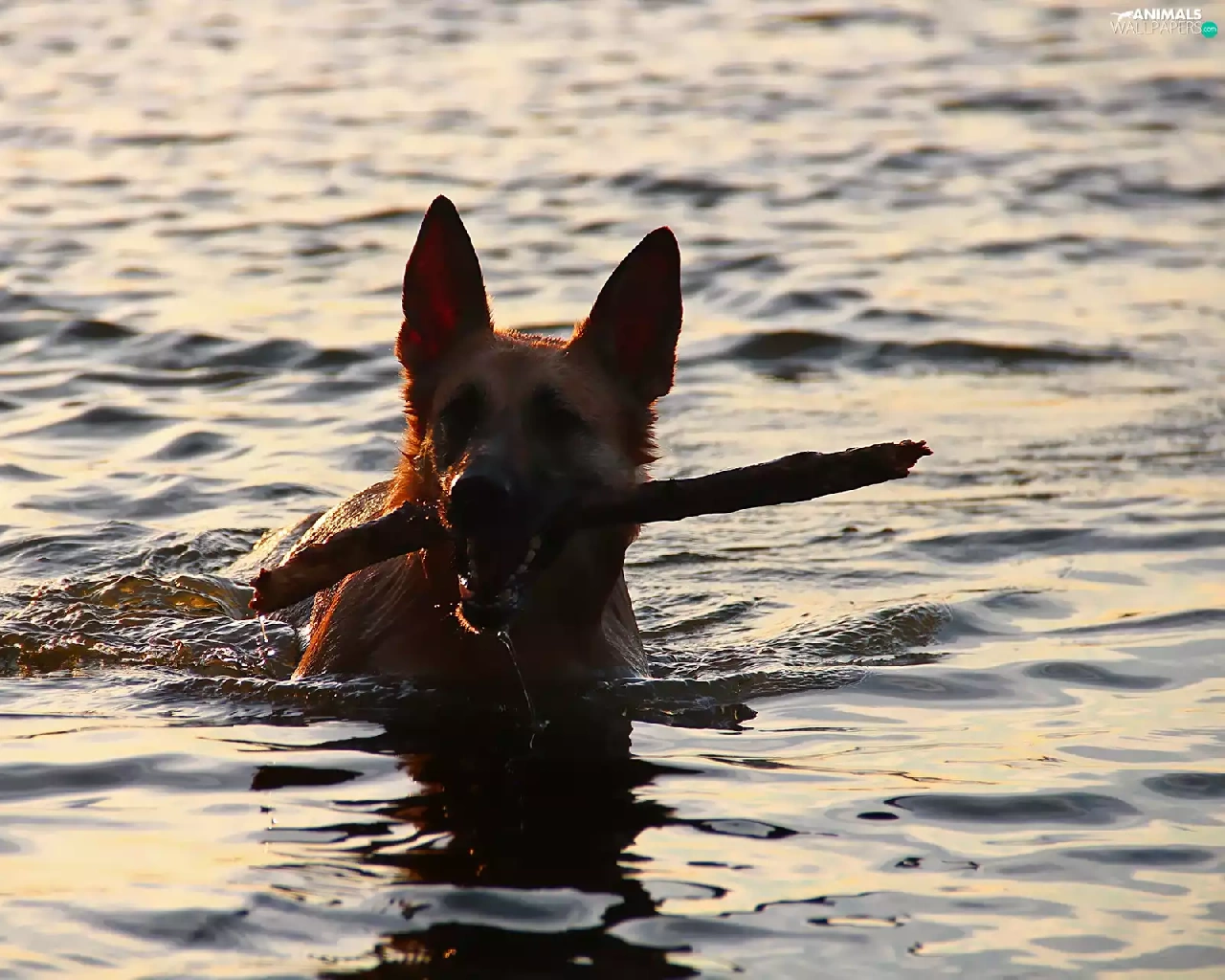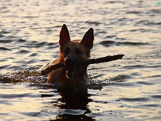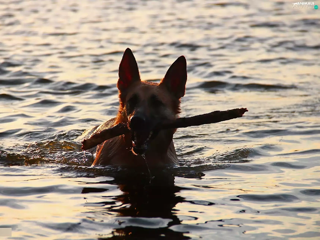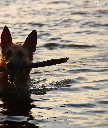 Stick, dog, water