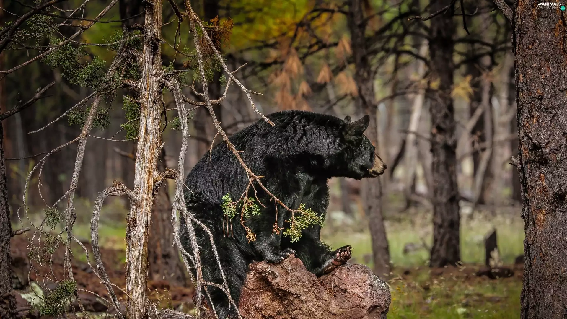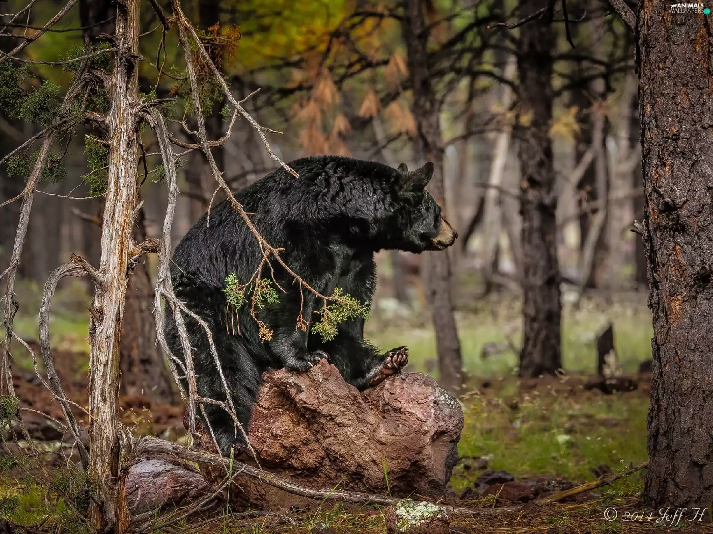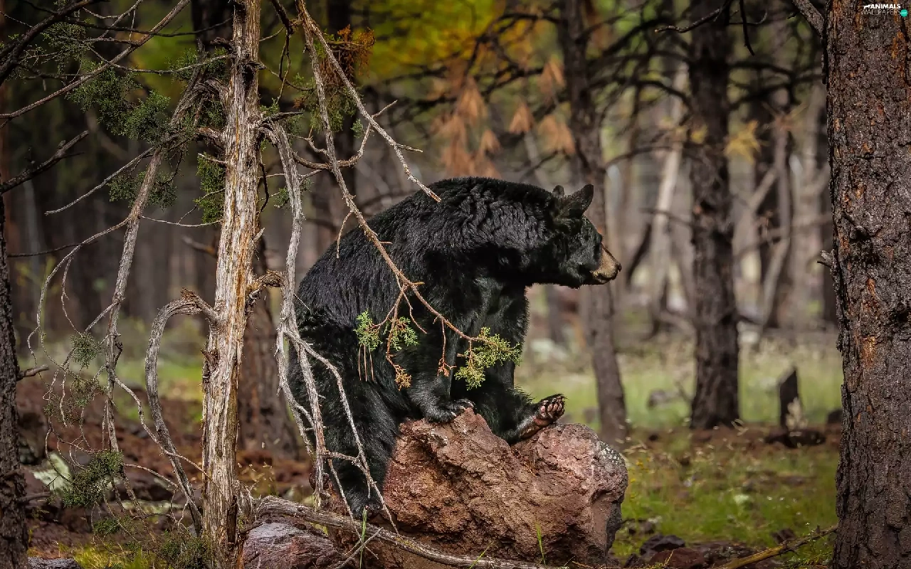 American Black Bear, Stone, forest, Baribal