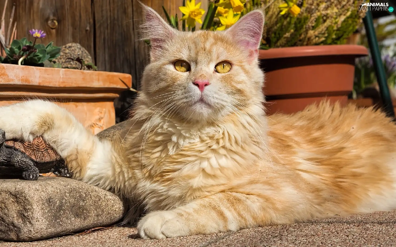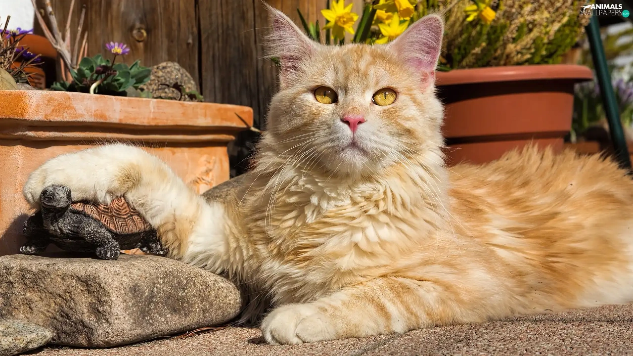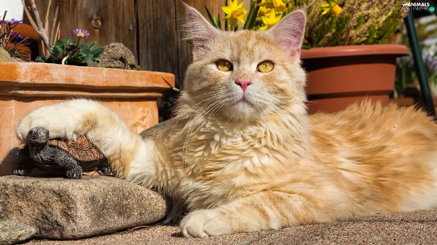 turtle, Stone, cat, figure, Reddish