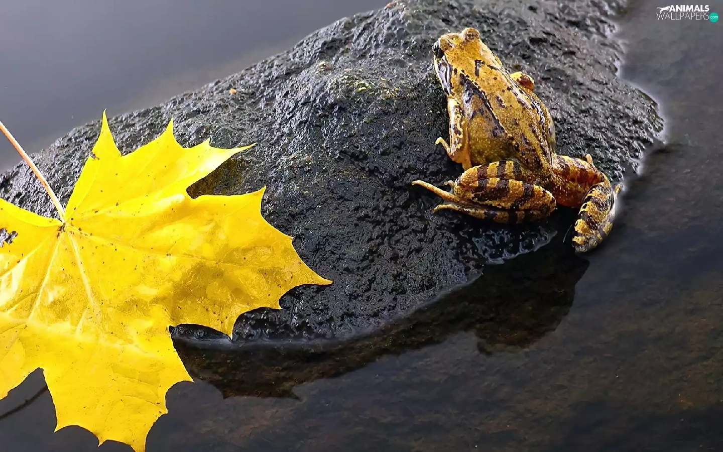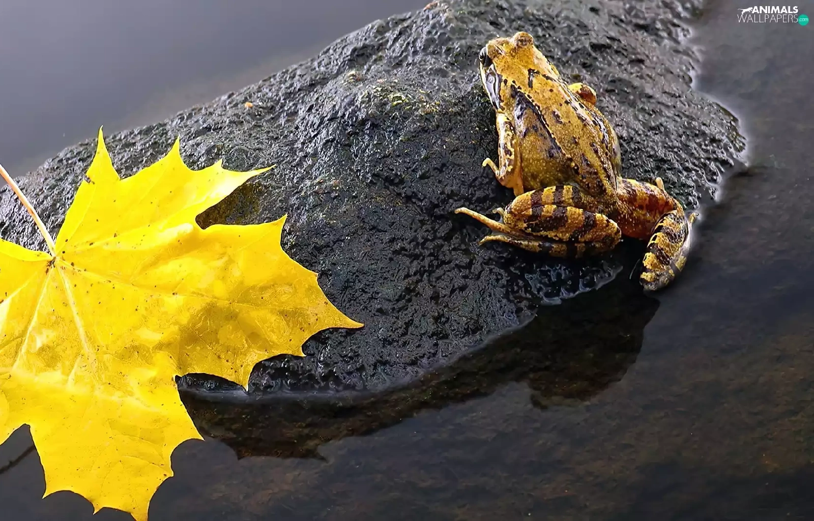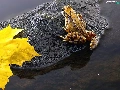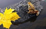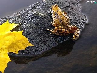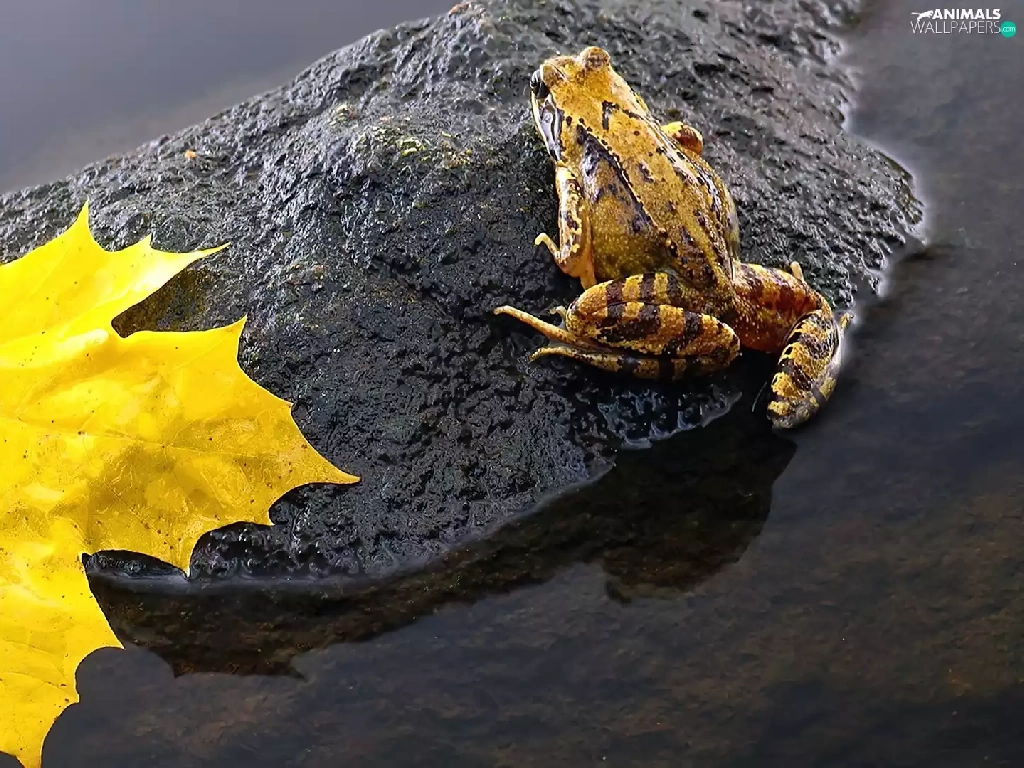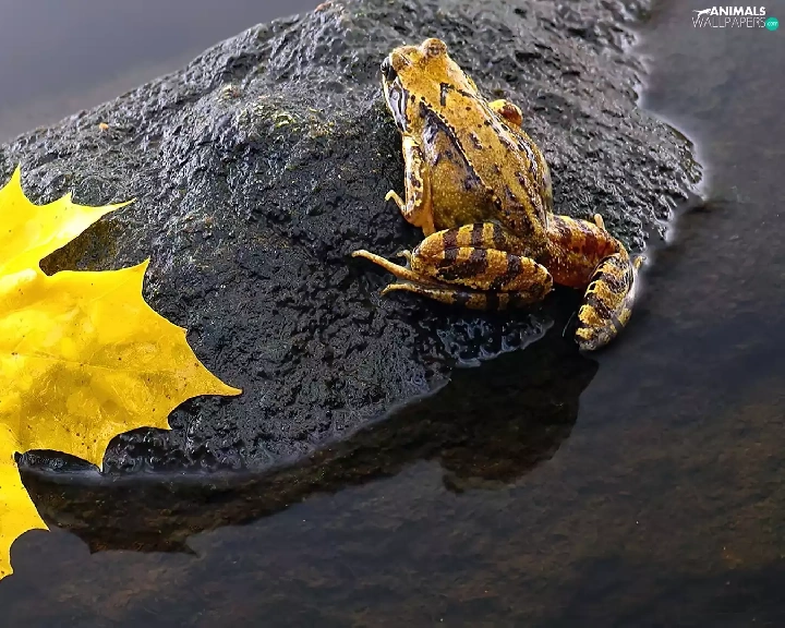 leaf, strange frog, Stone