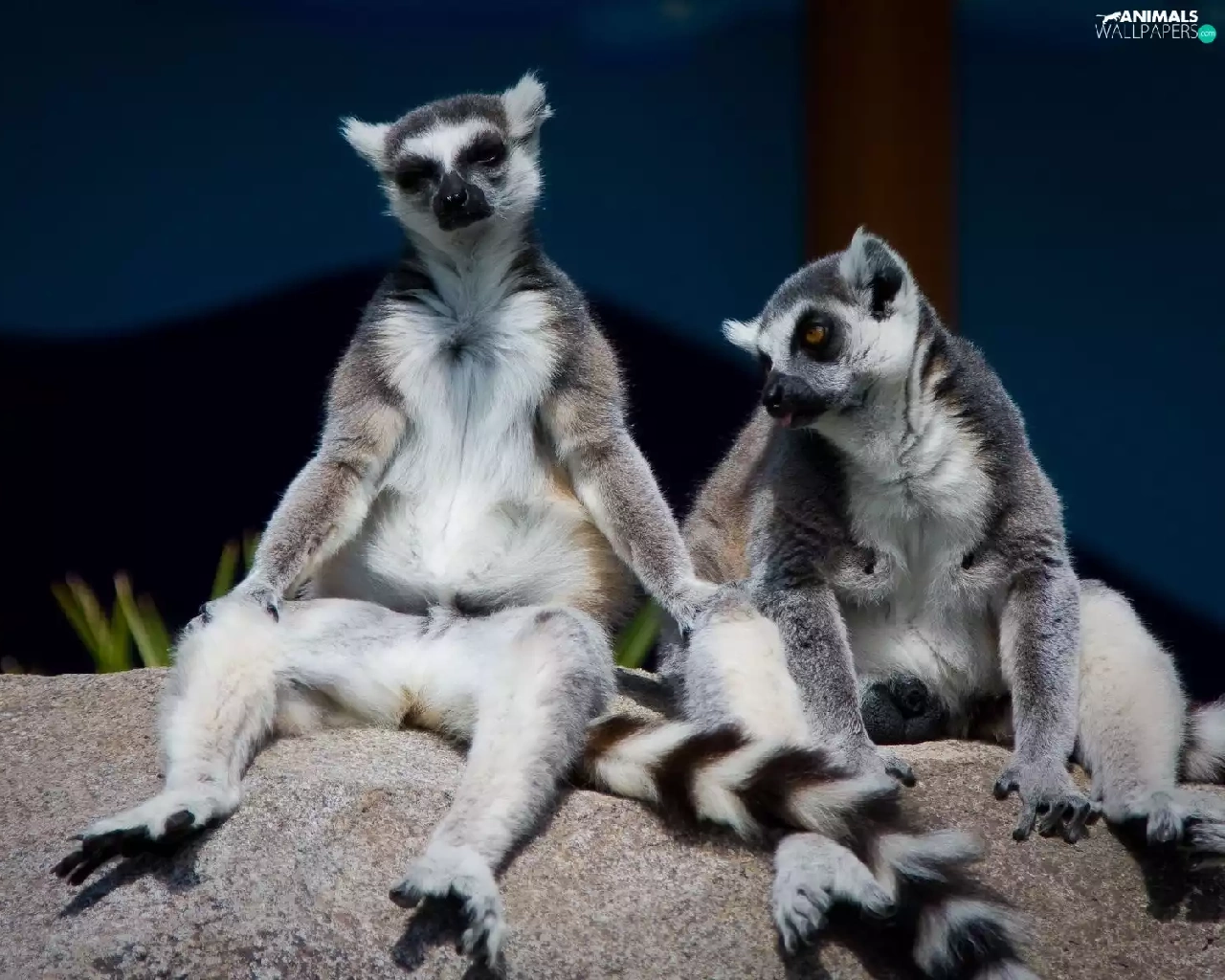 Stone, seating, lemurs