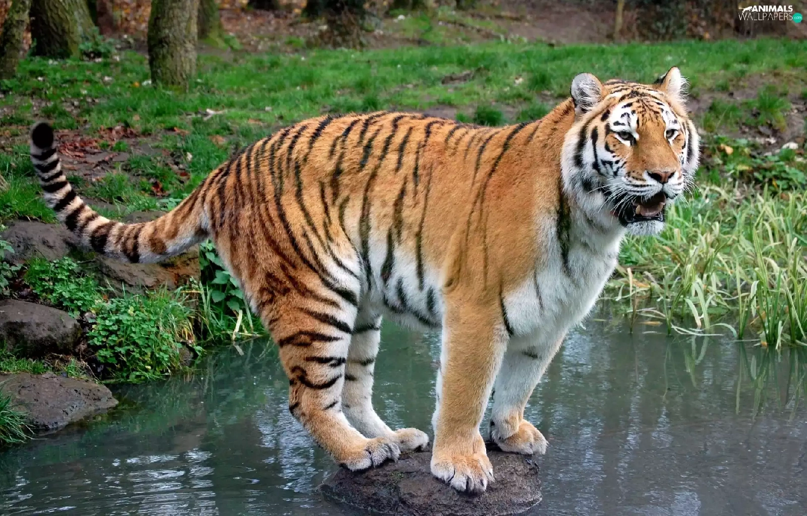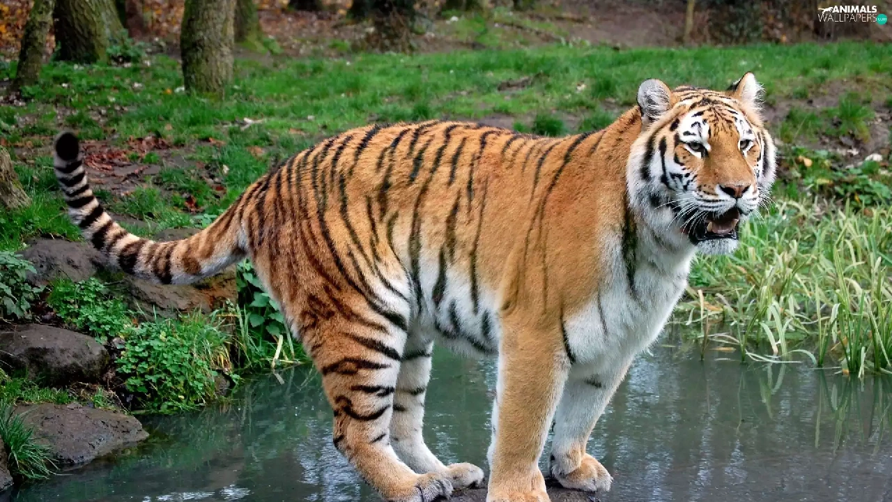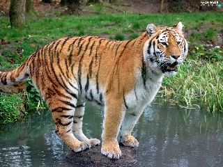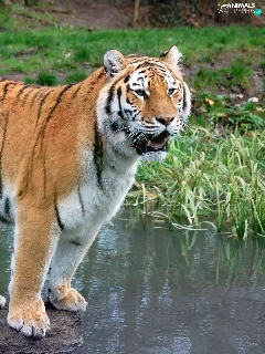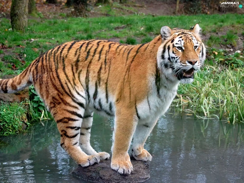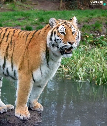 tiger, water, green, Stone
