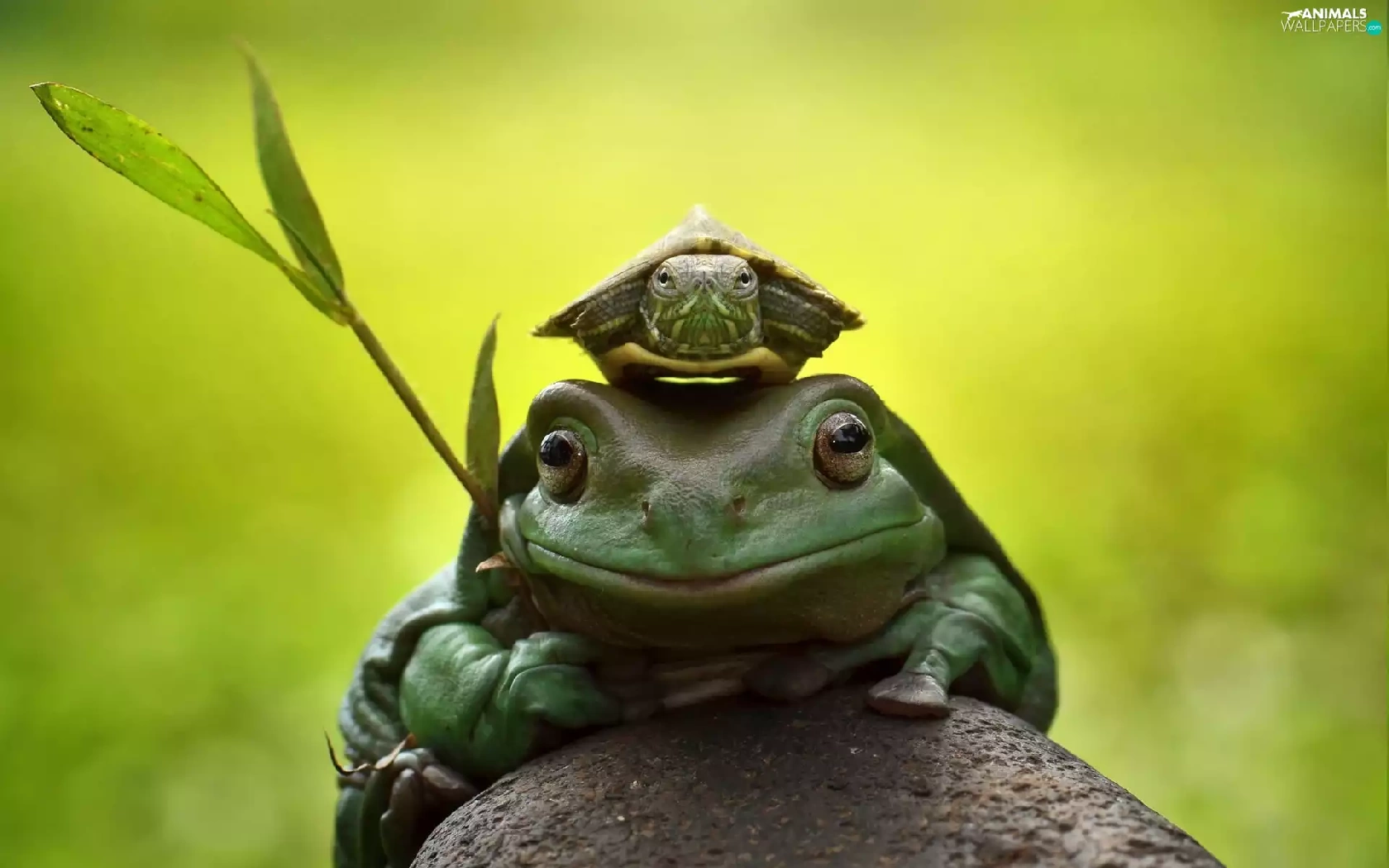 Stone, frog, turtle