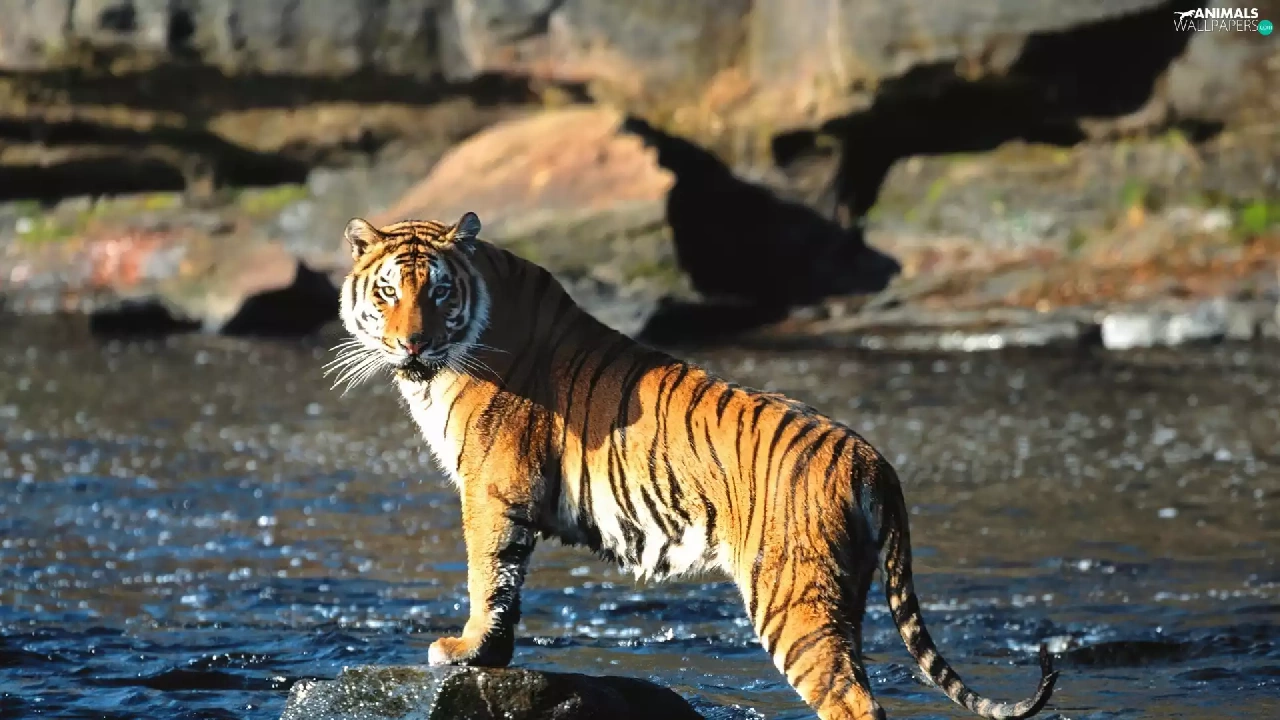 Stones, tiger, River