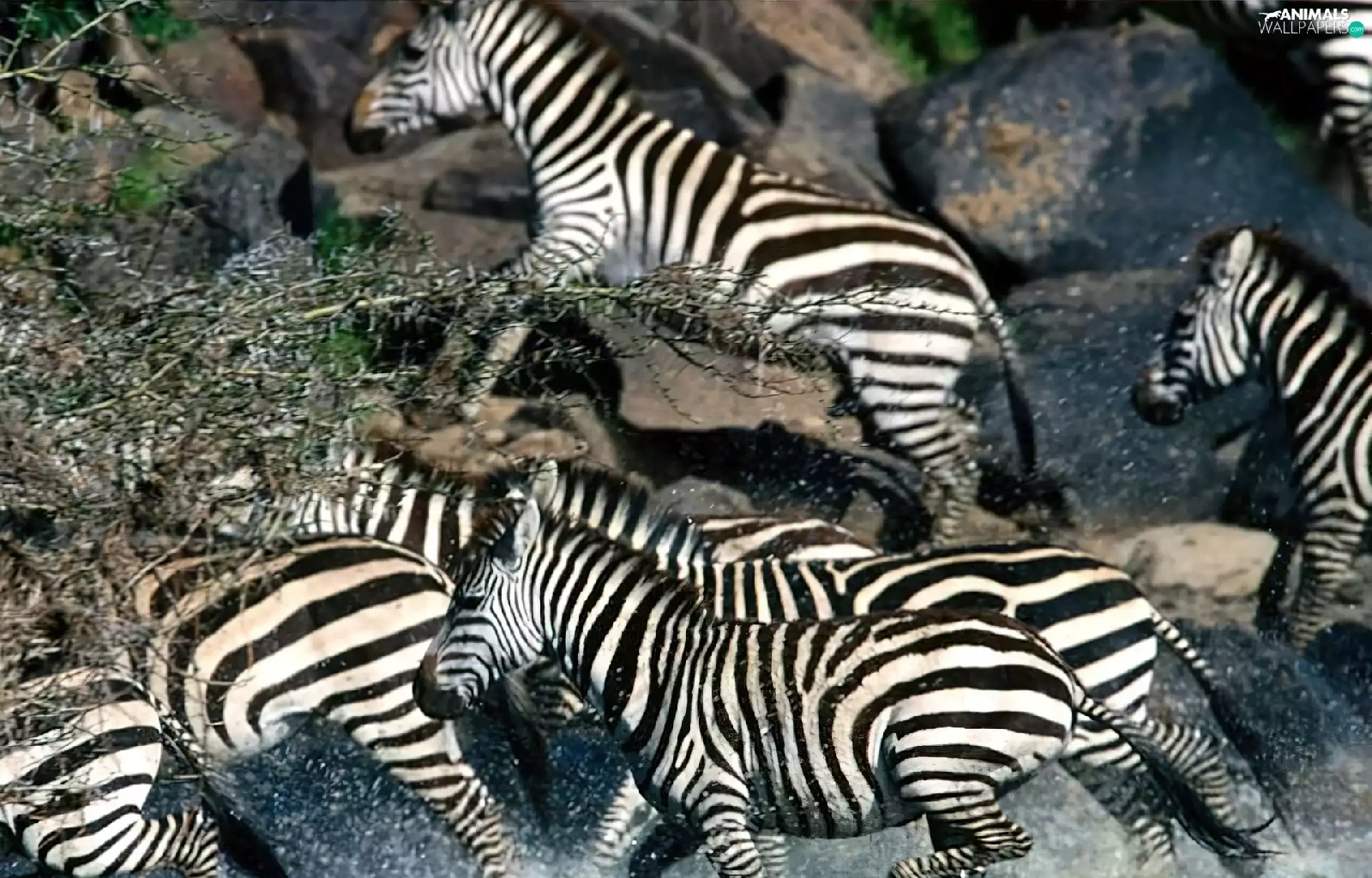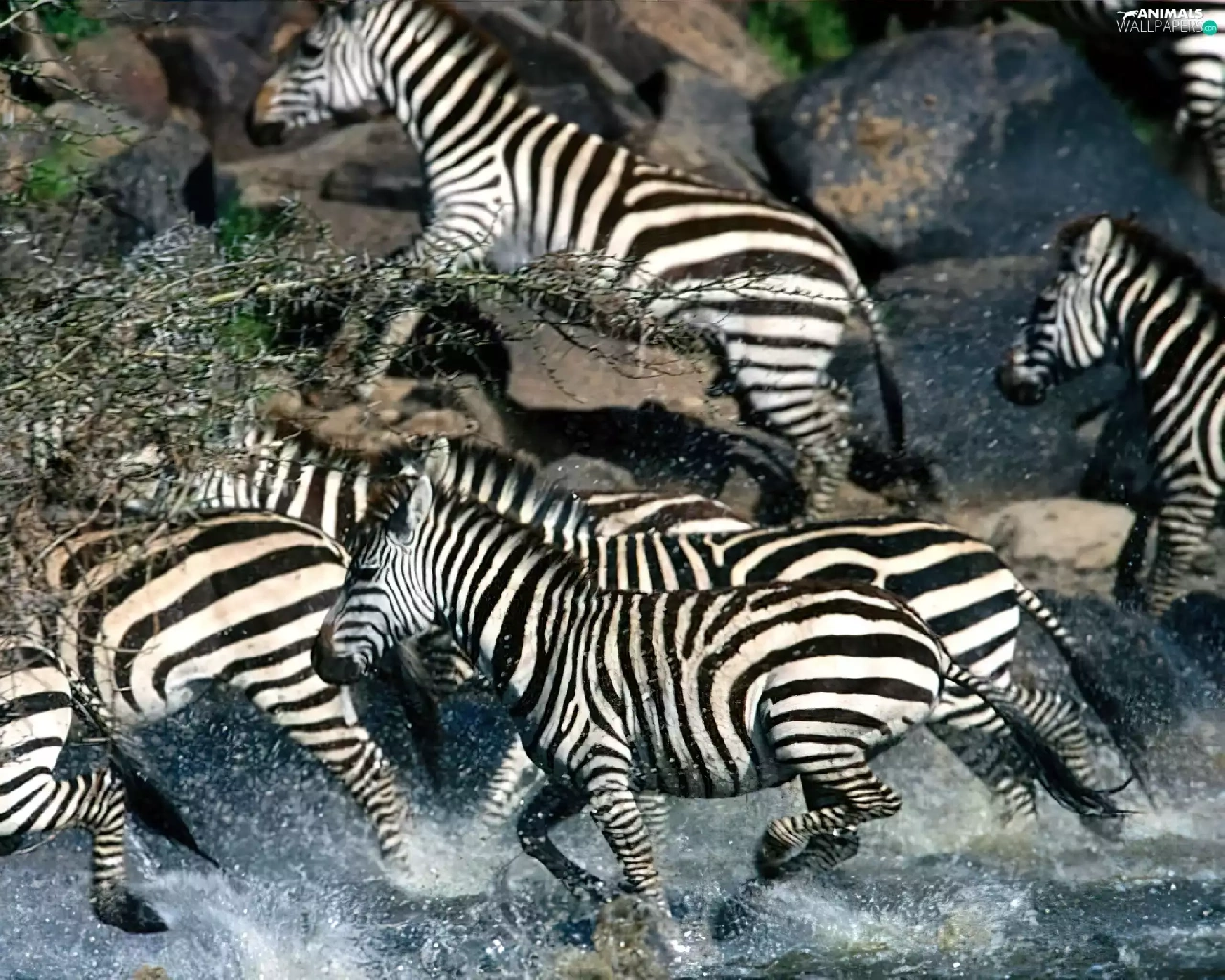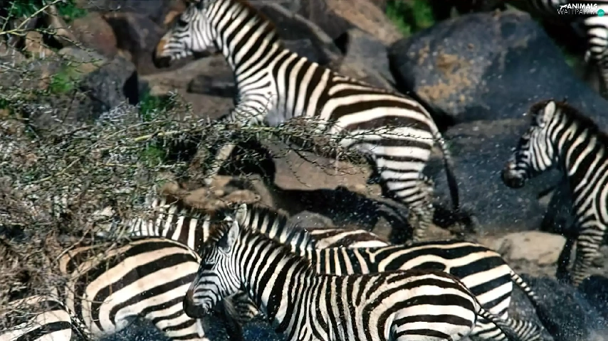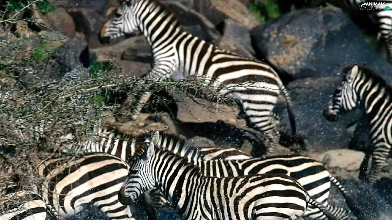 Stones, zebra, water