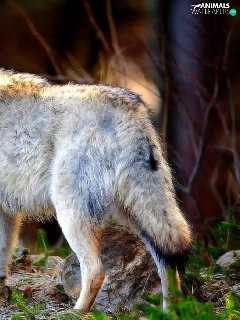 Wolf, litter, forest, Stones
