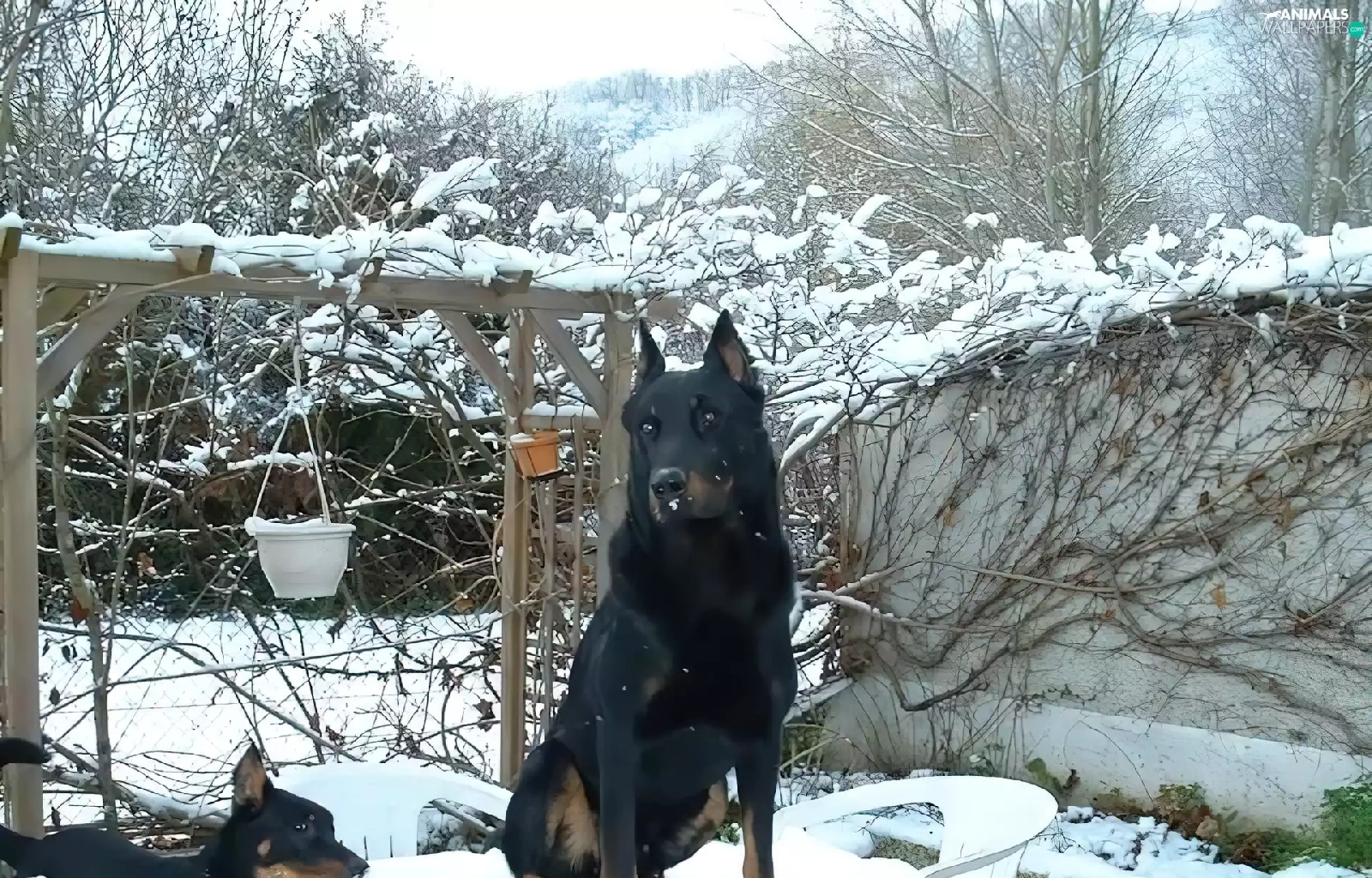 Shepherd French Beauceron, Stool, snow, Table