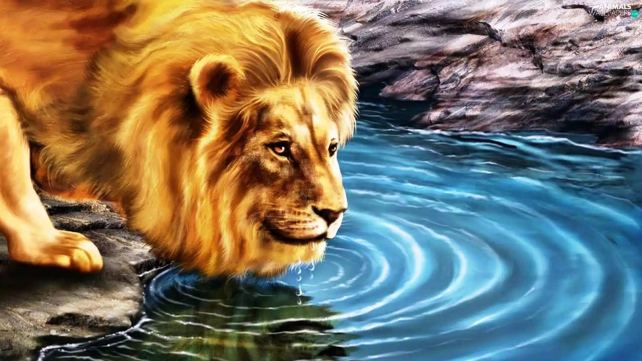 stream, drawings, Lion