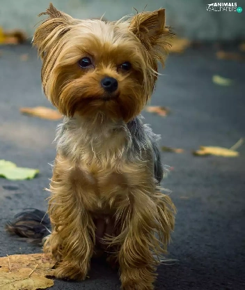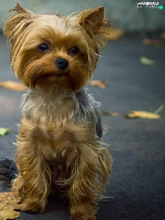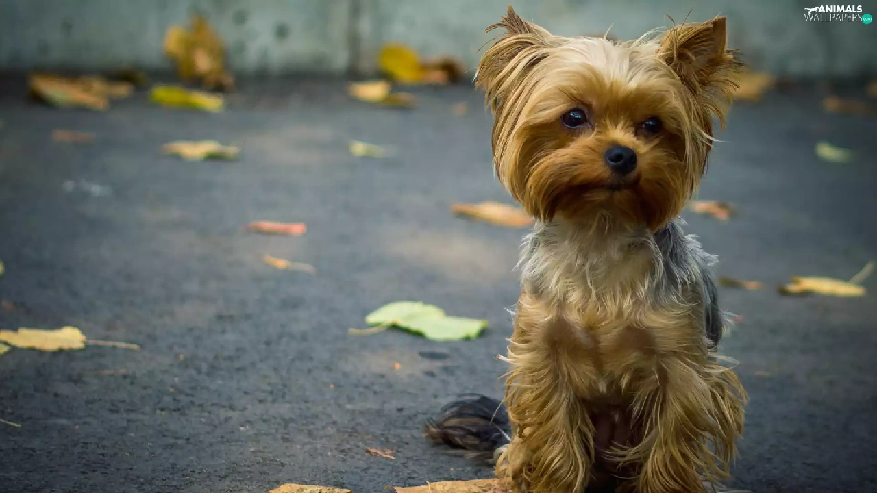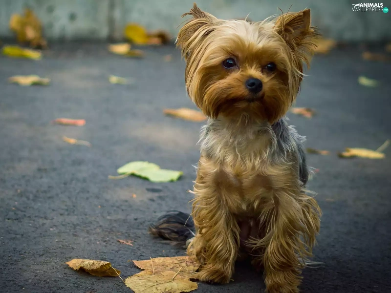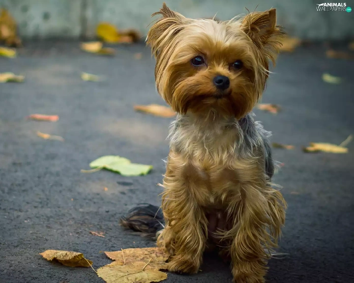 puppie, Street, Leaf, Yorkshire Terrier