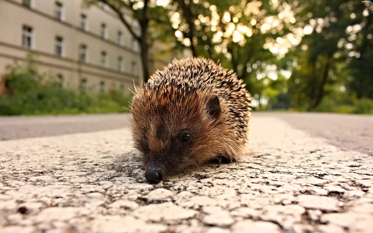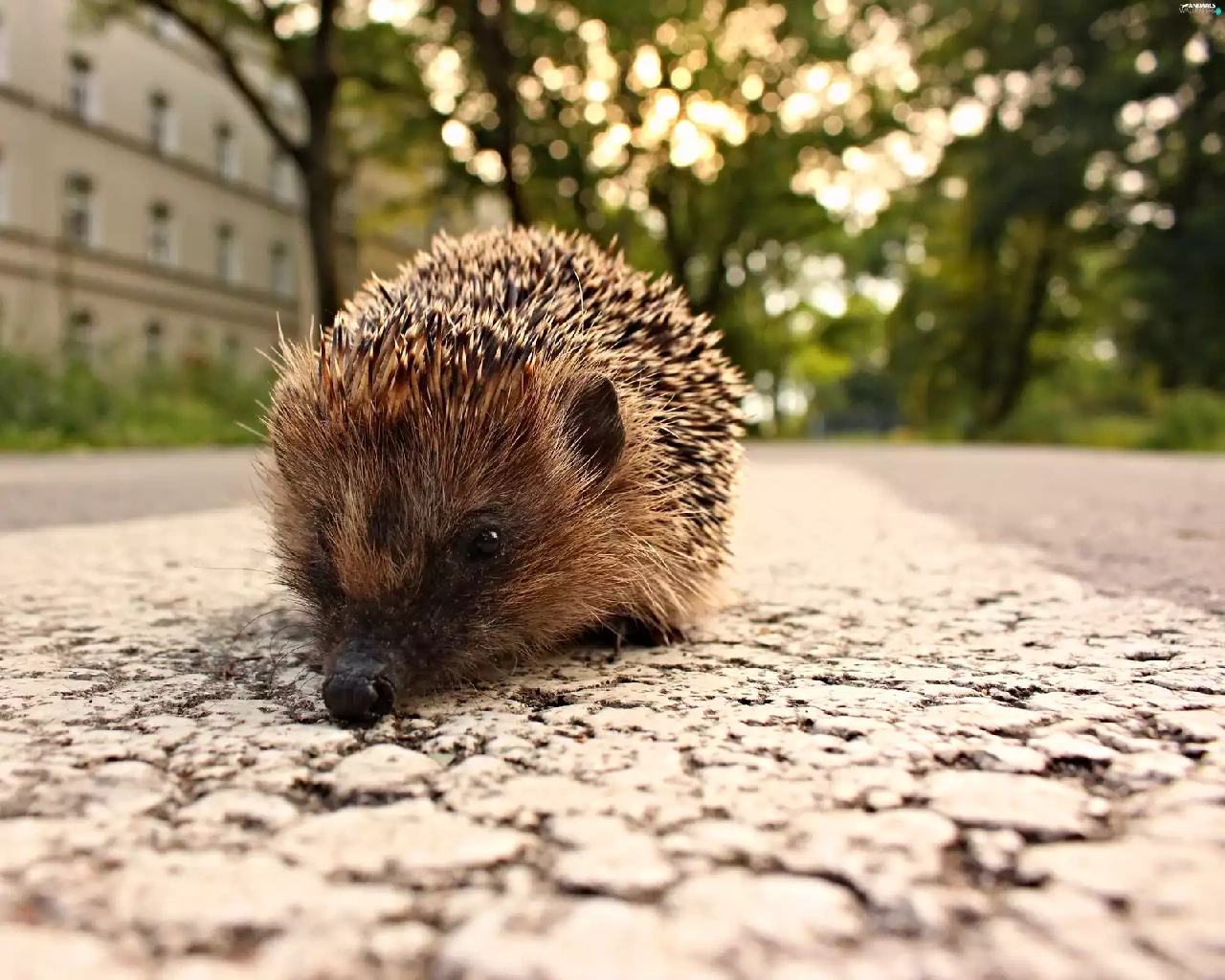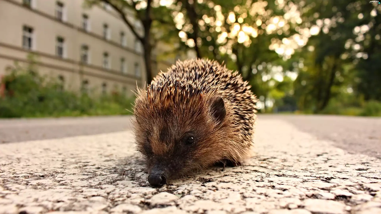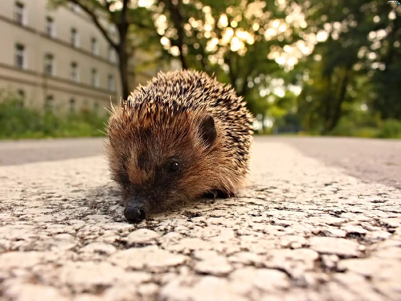 walking, hedgehog, Houses, Street