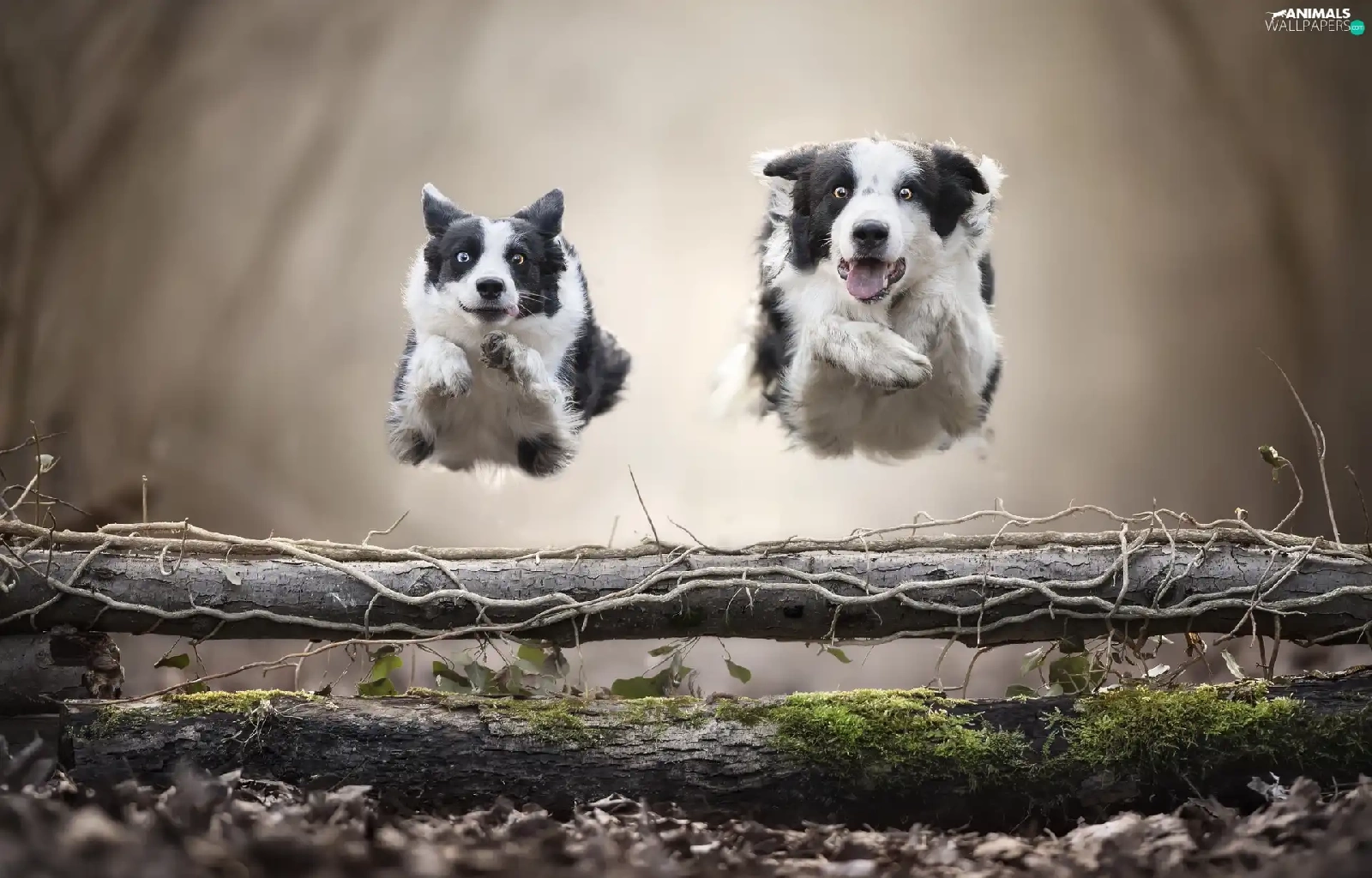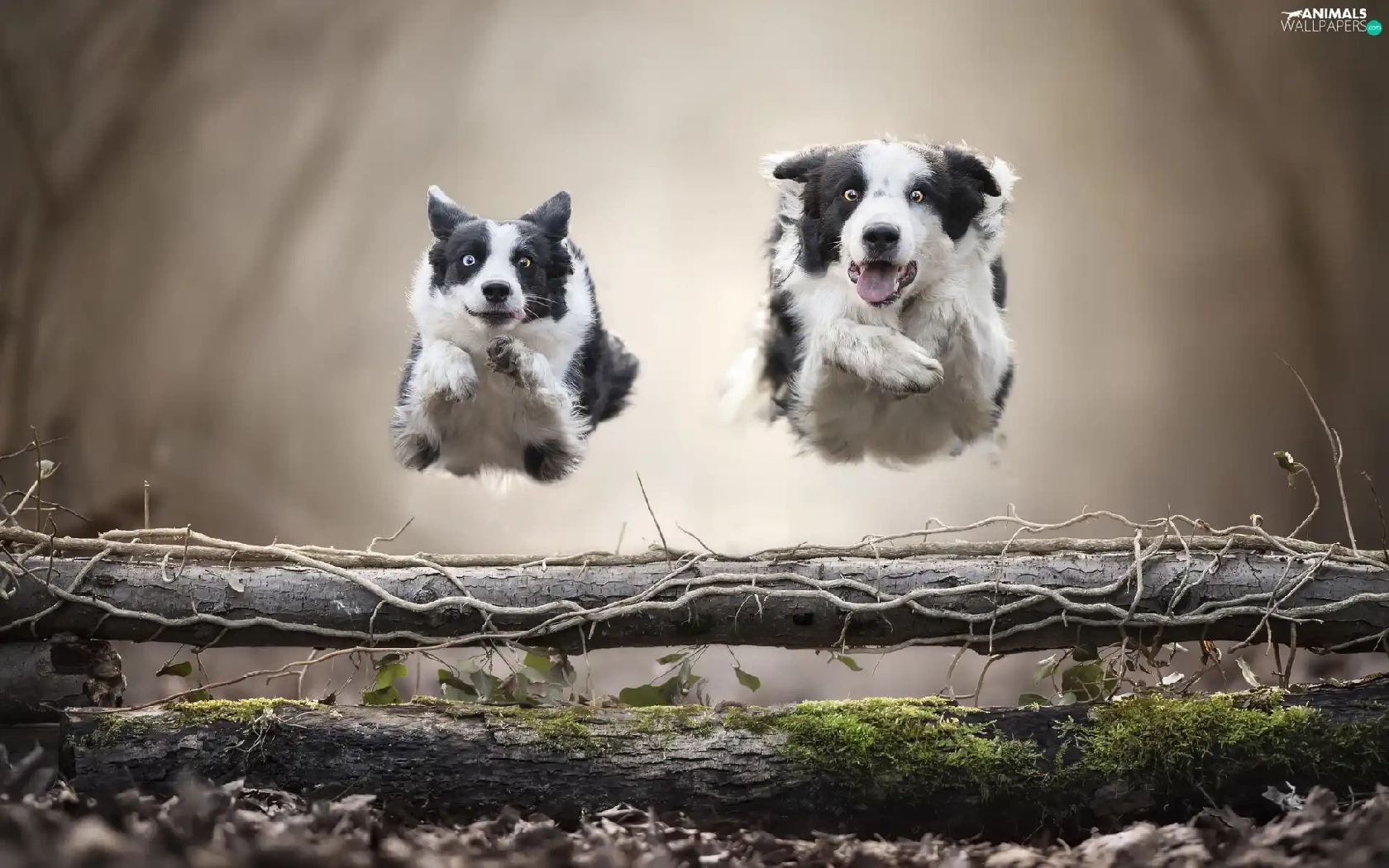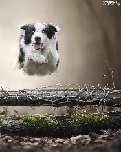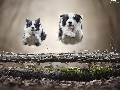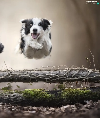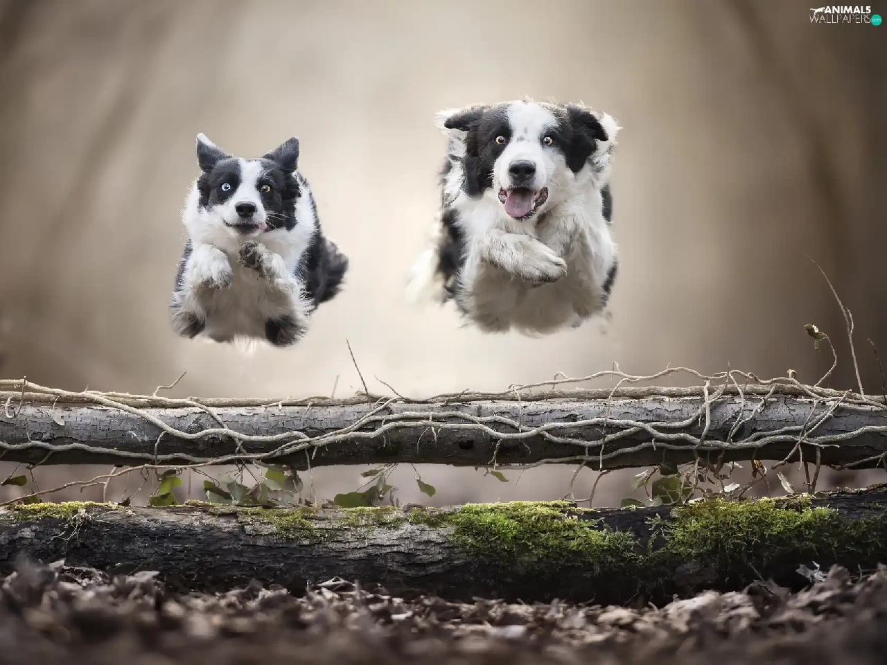 Dogs, Two cars, bar, jump, Border Collie, stretching