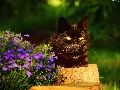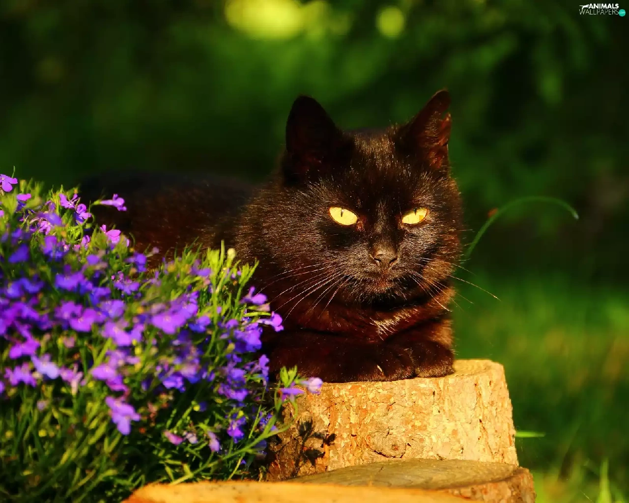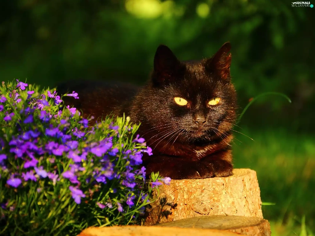 stump, cat, Flowers