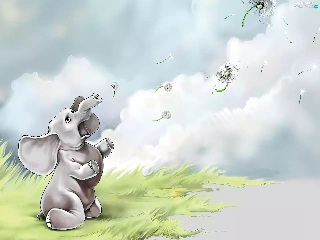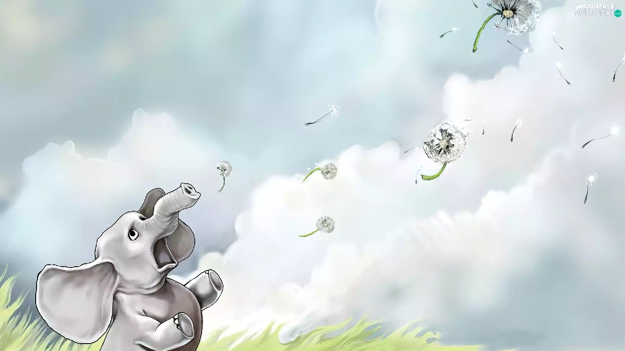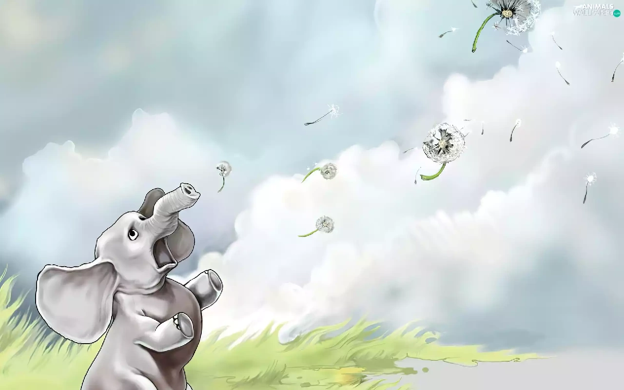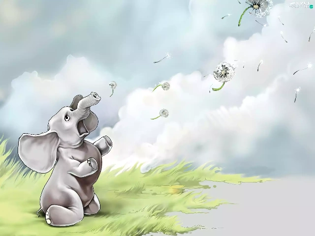Baba, summer, grass, Sky, Elephant