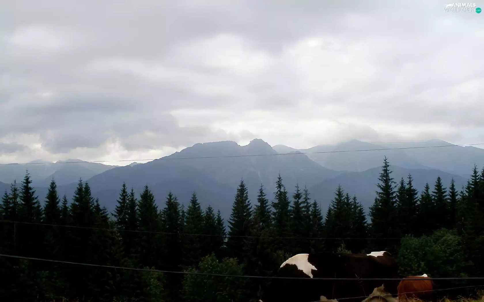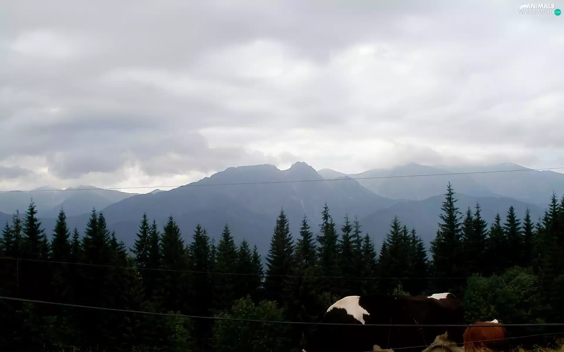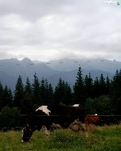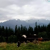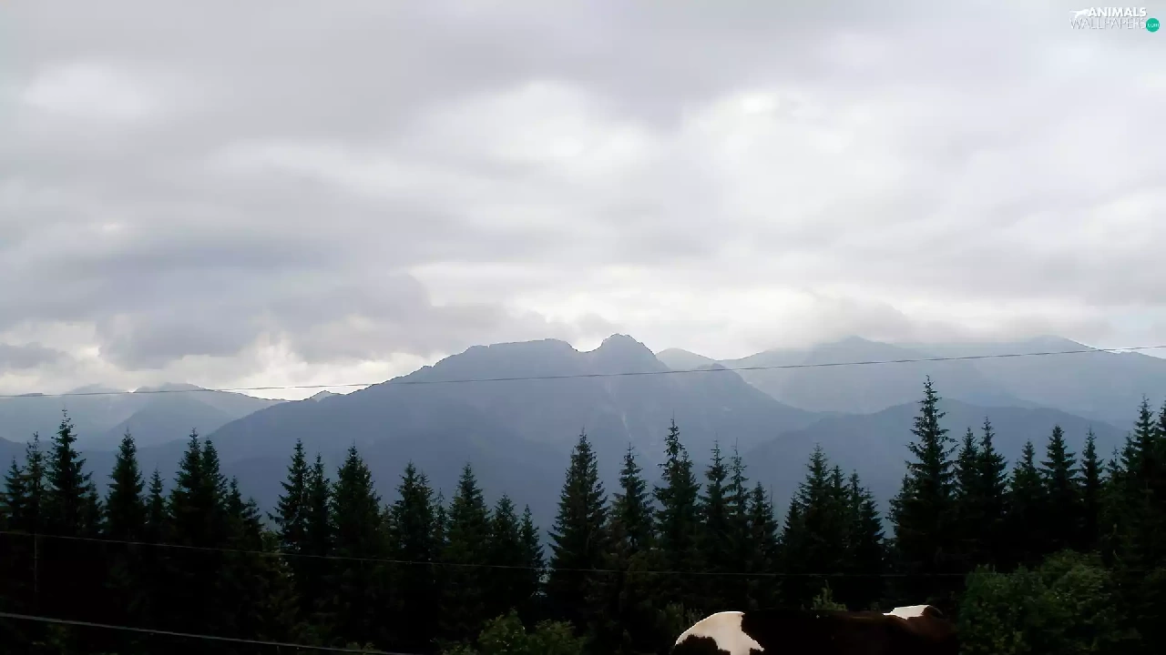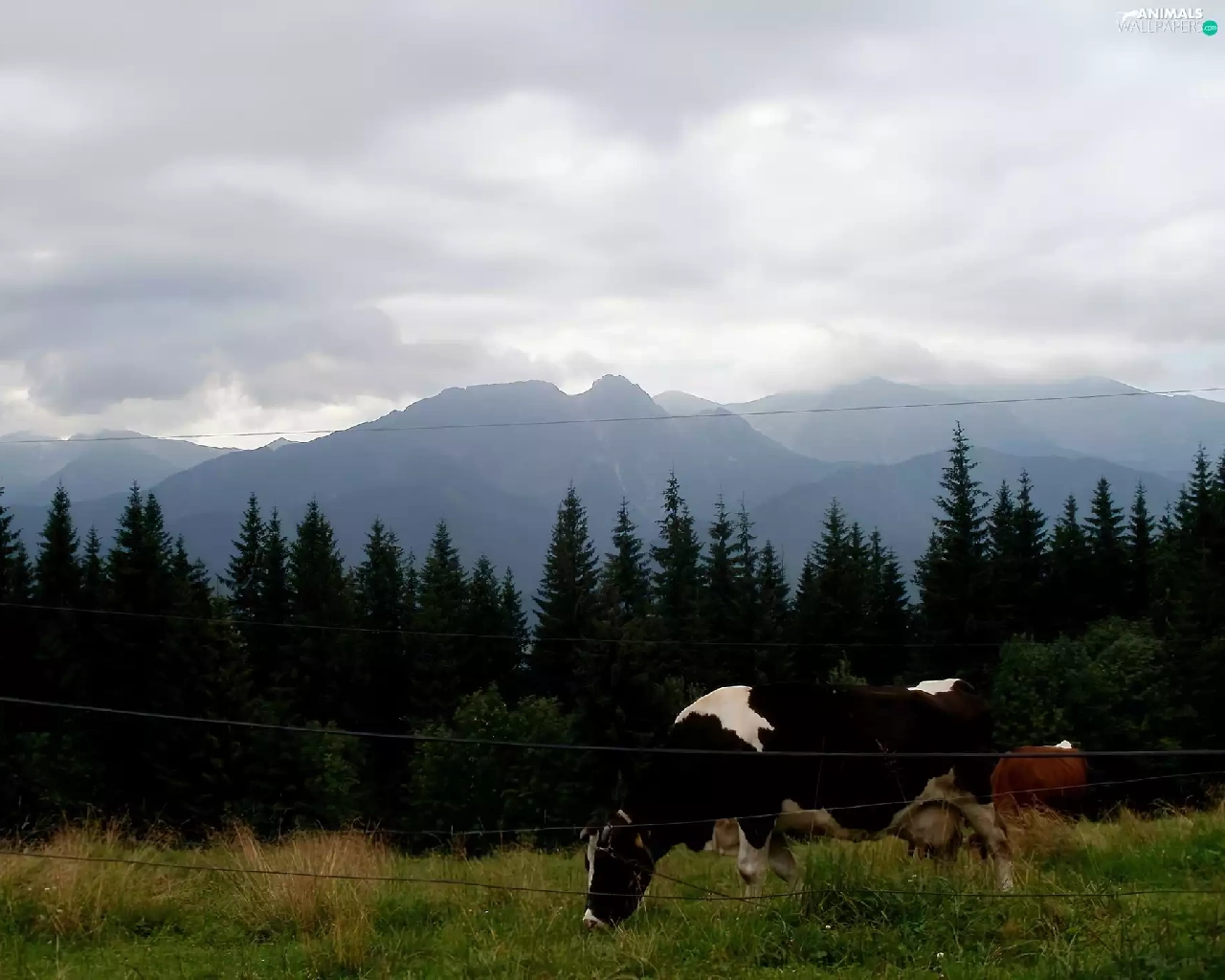 Mountains, Cow, Meadow, summer