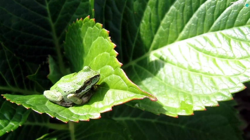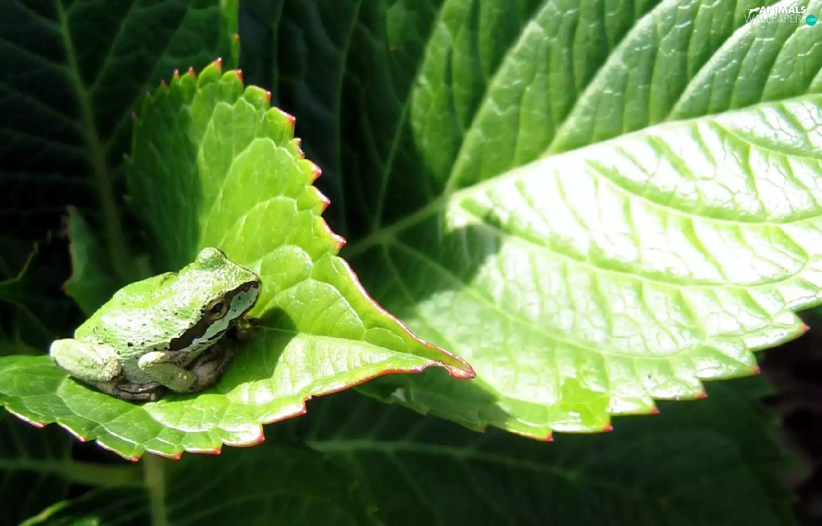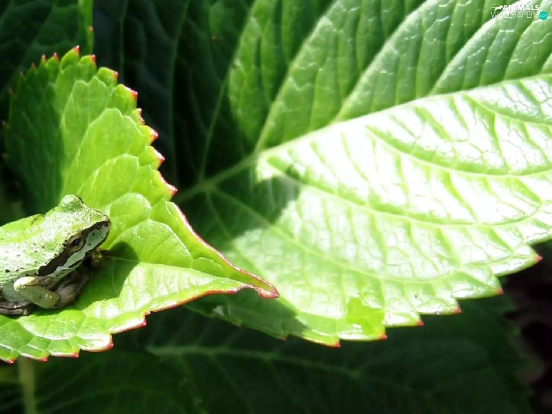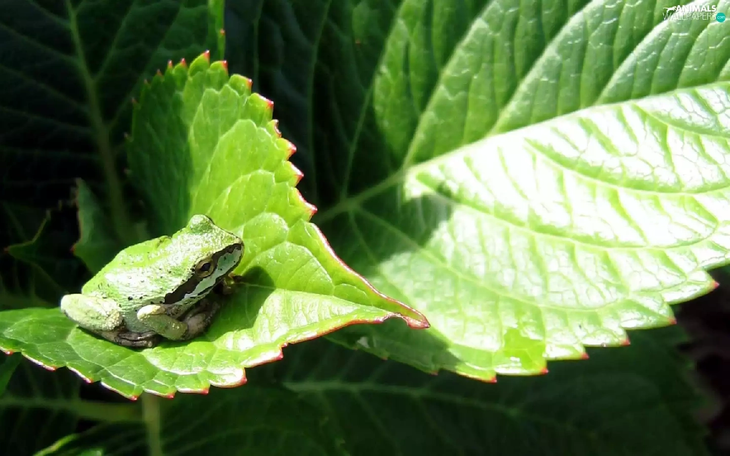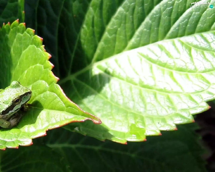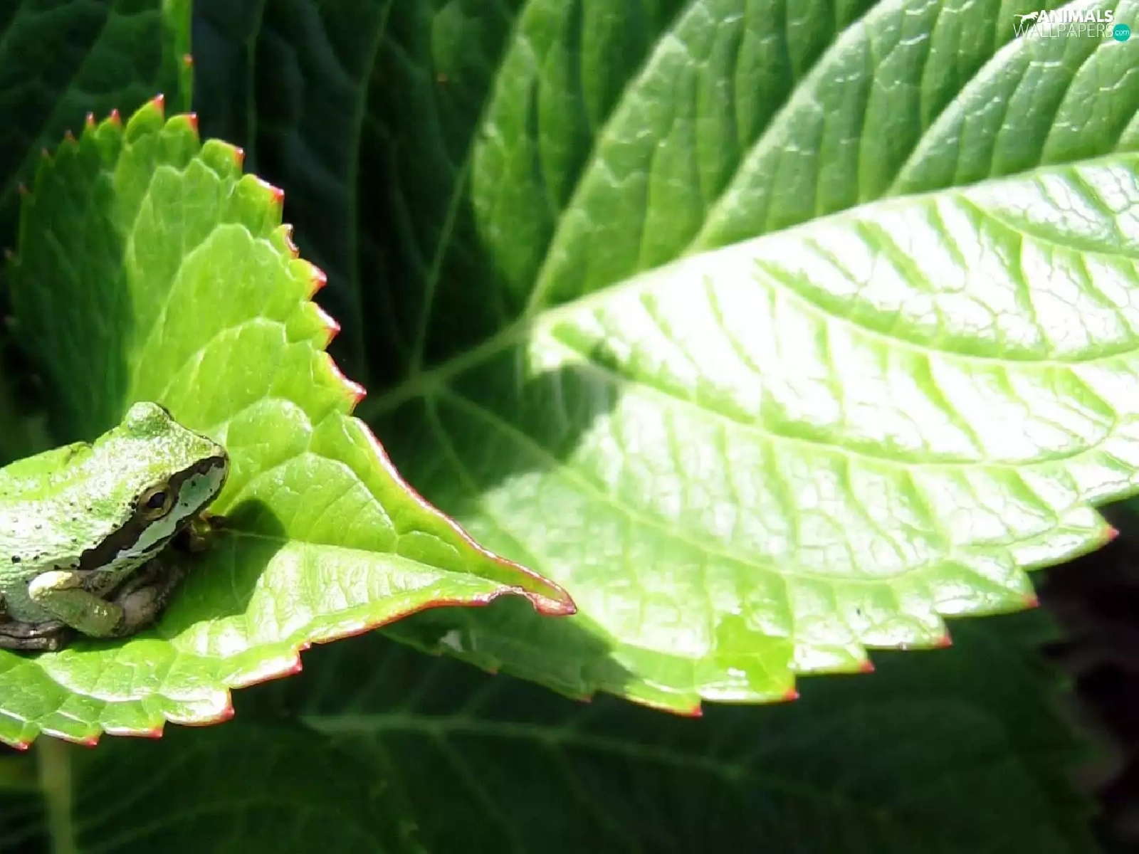 Leaf, Przebijające, luminosity, ligh, flash, frog, Green, sun