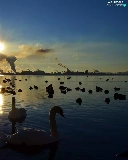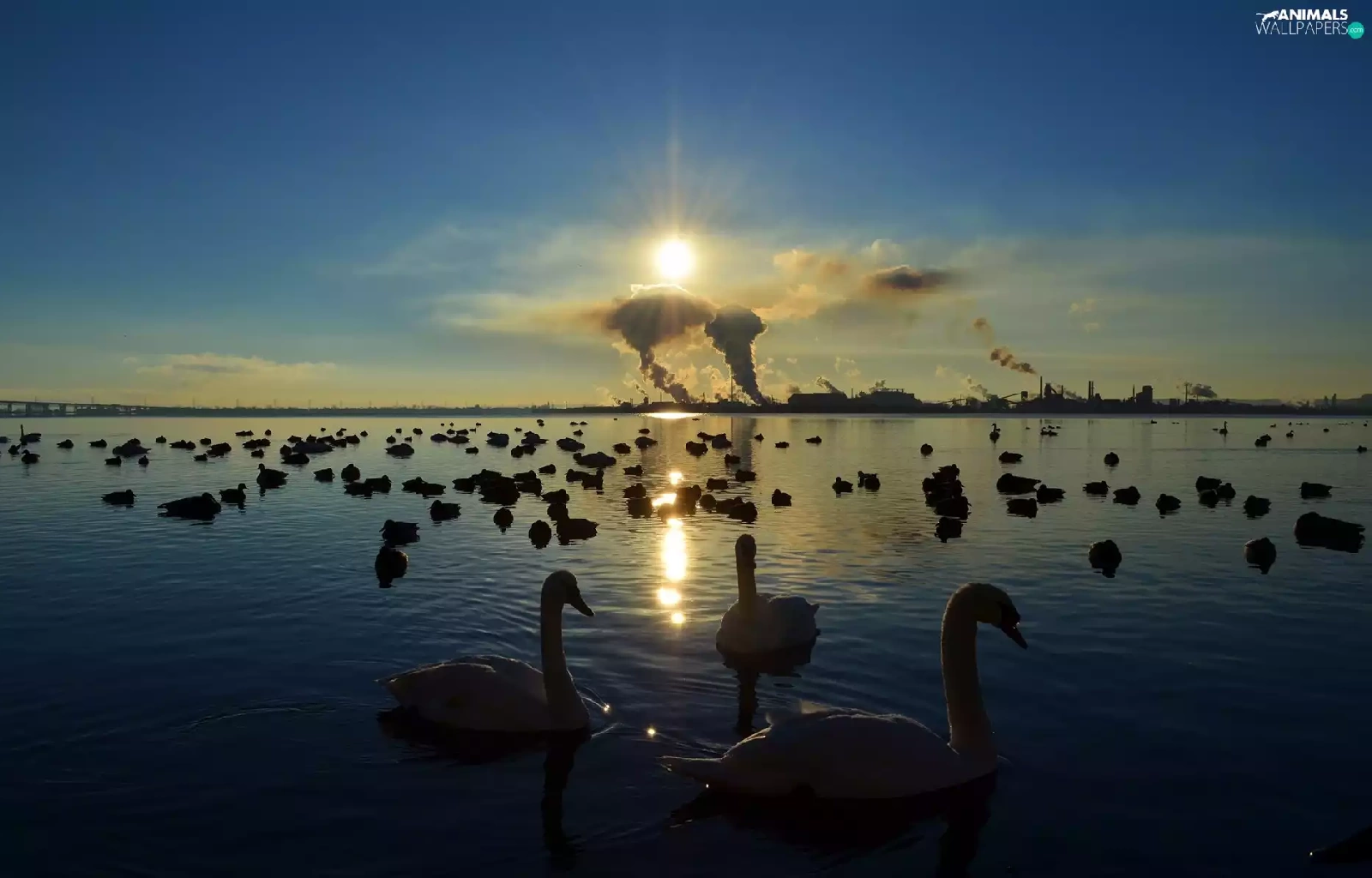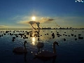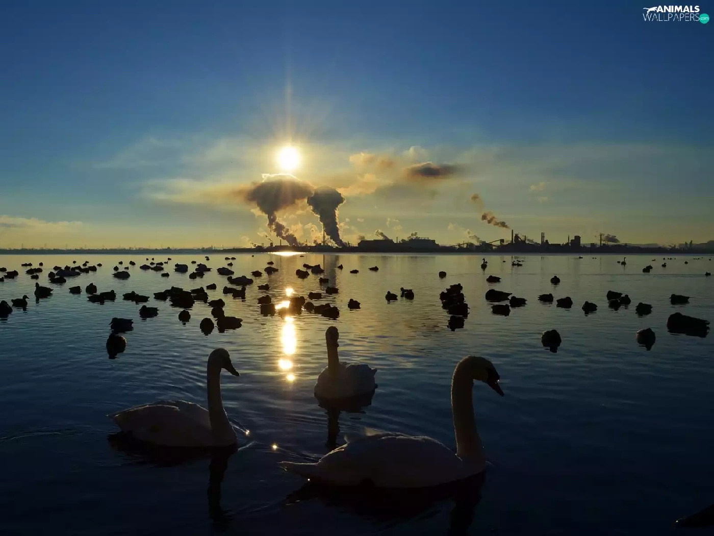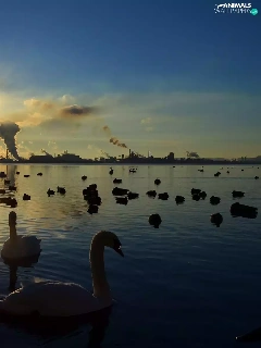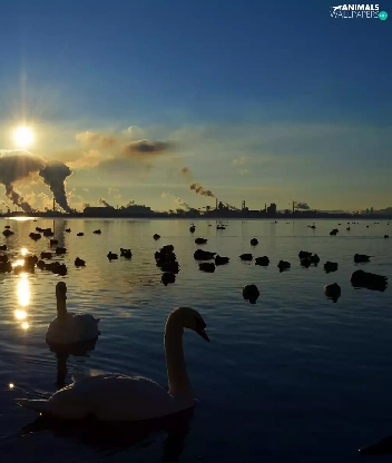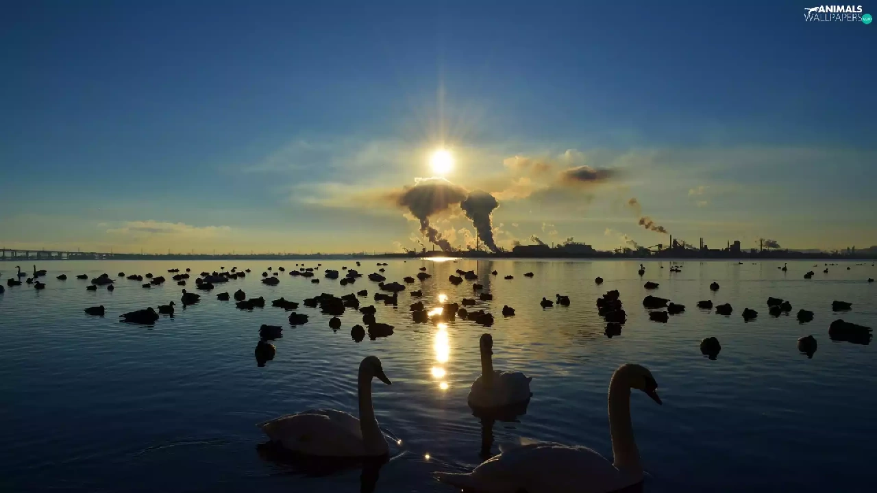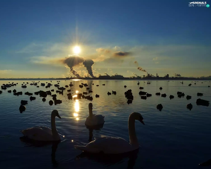 sun, lake, Swan