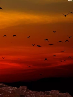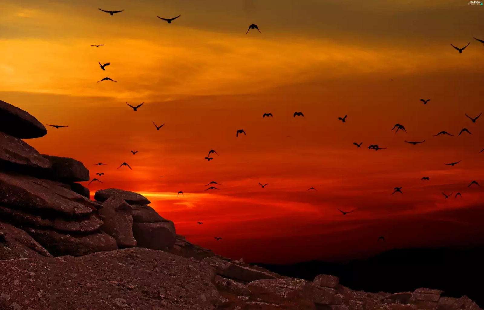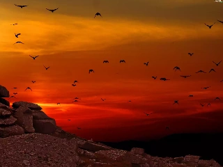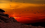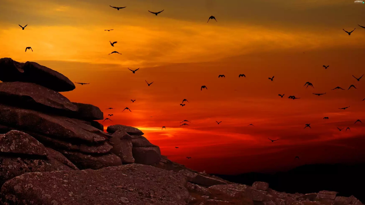 west, rocks, birds, sun