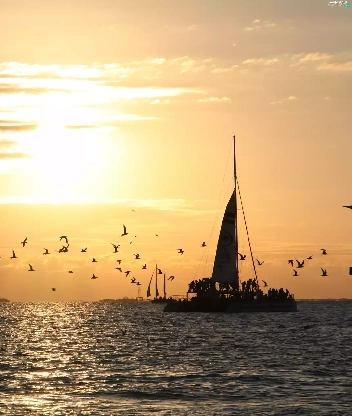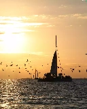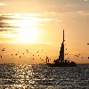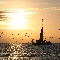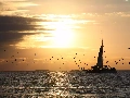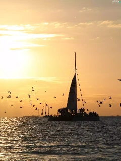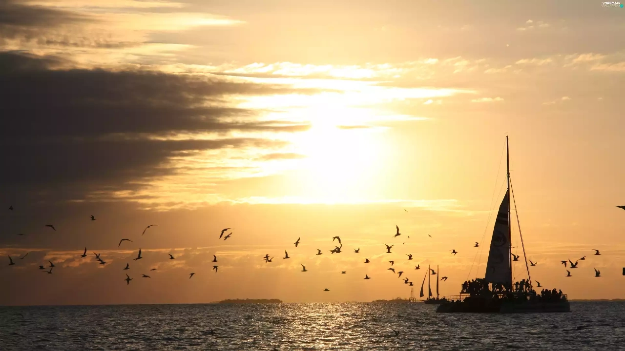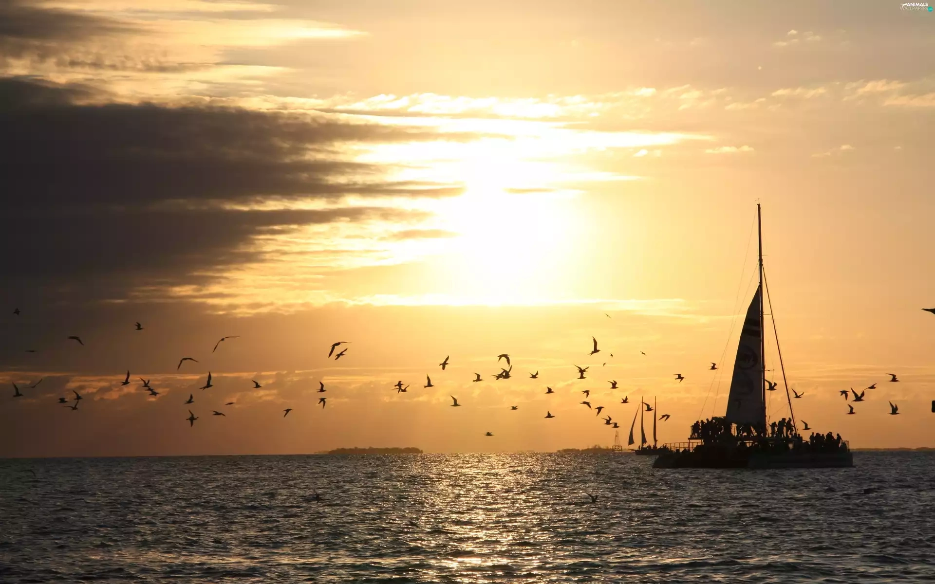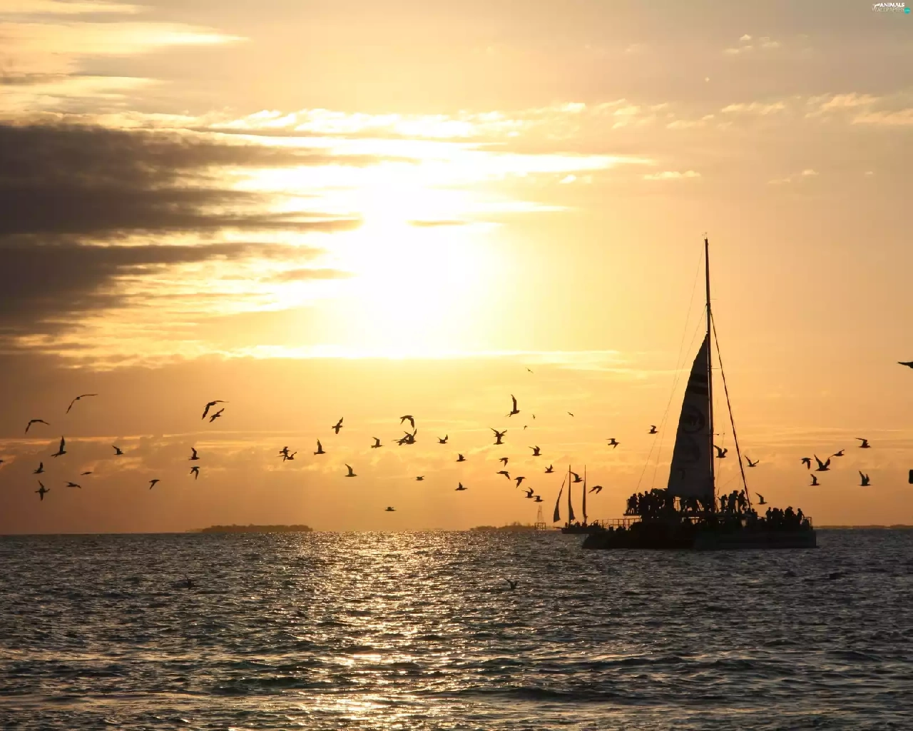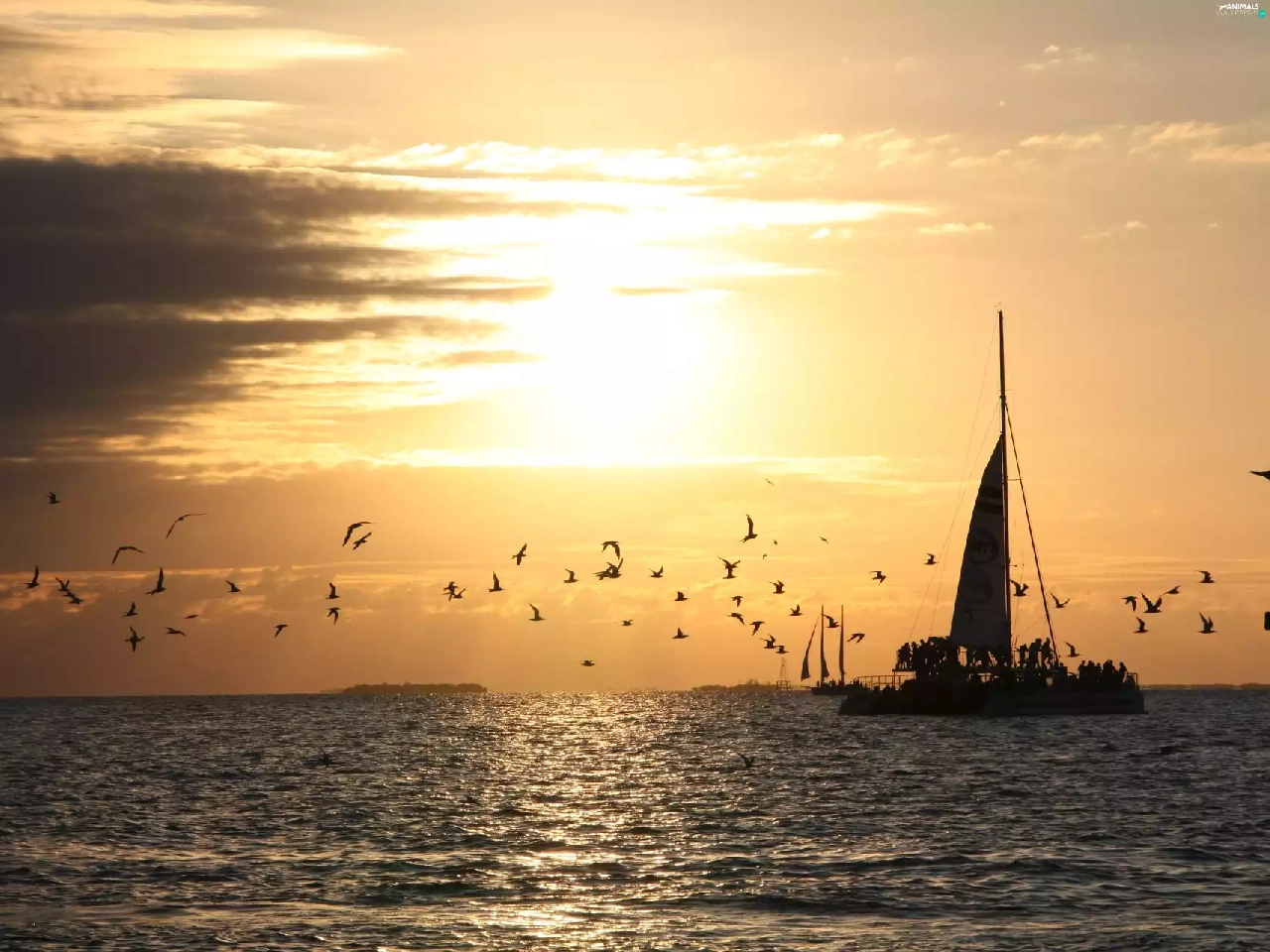 west, sea, birds, sun