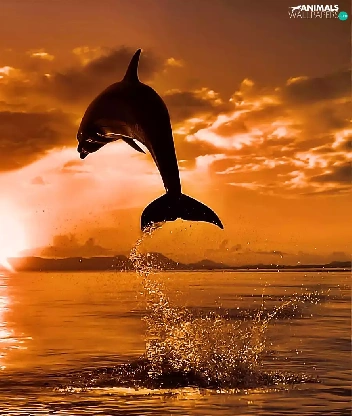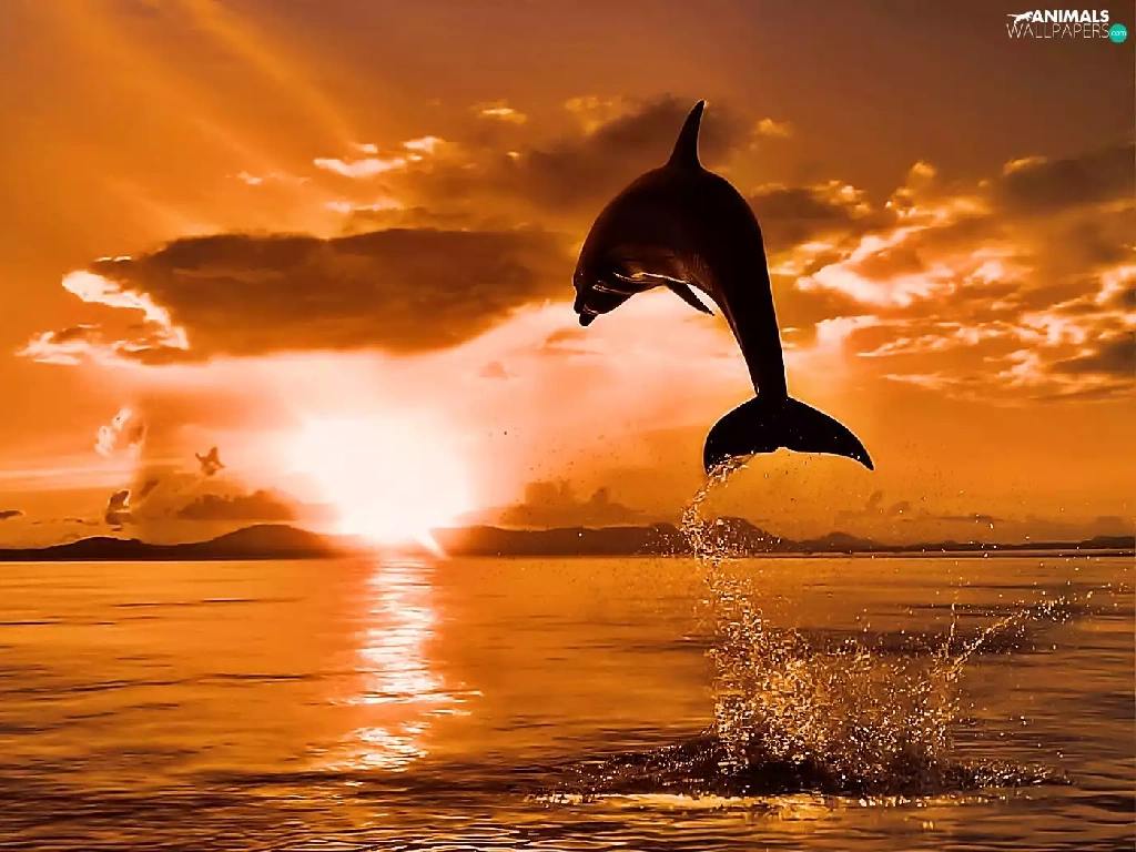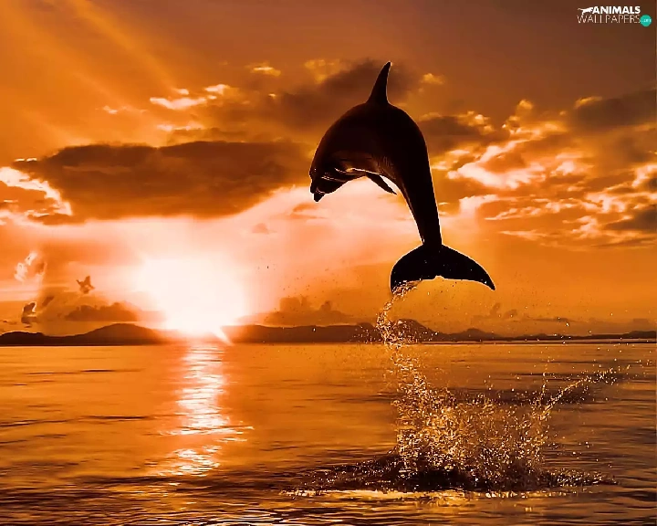 west, dolphin, jump, sun