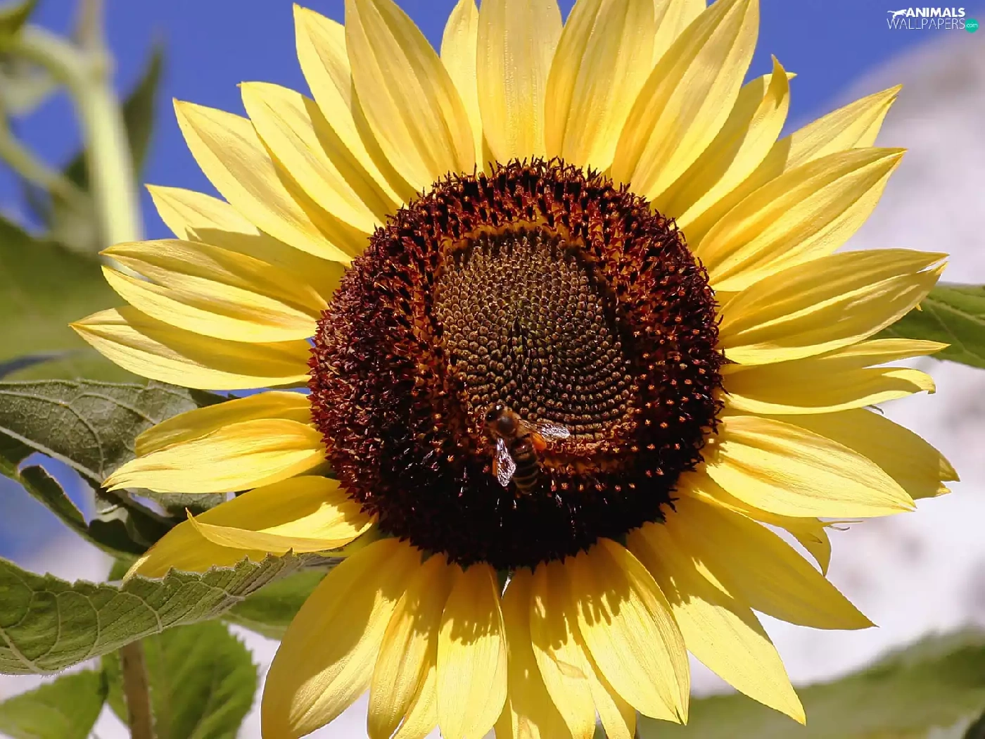 sunflower, bee, an