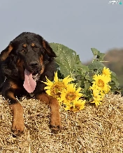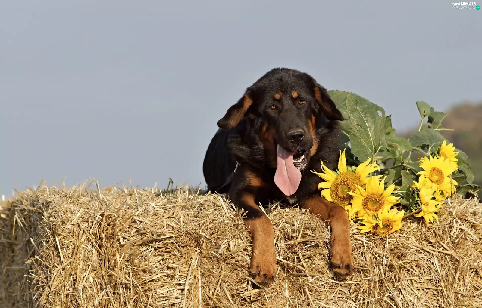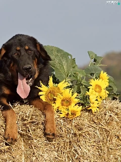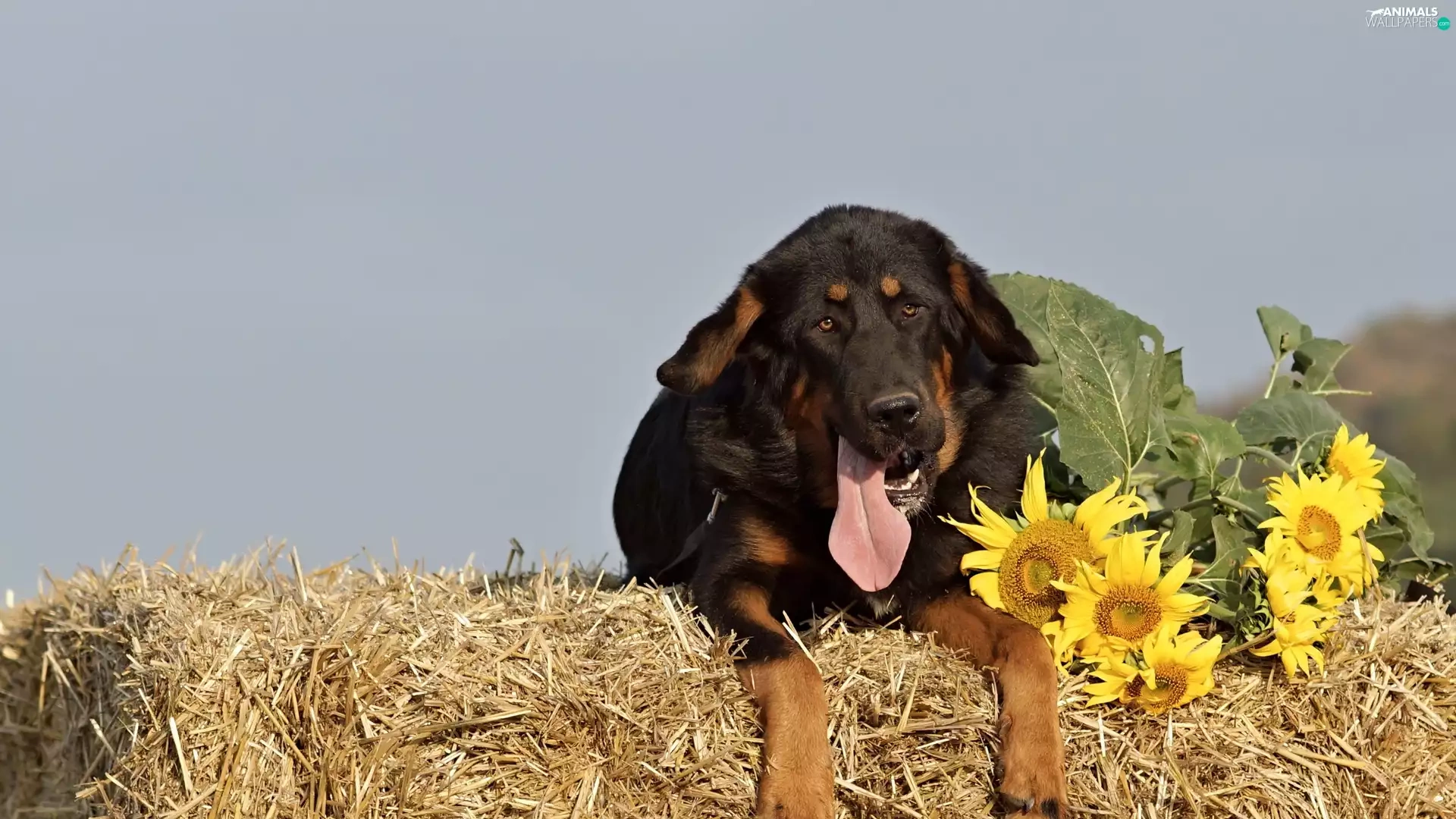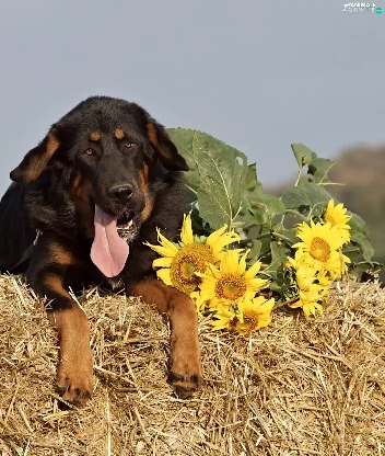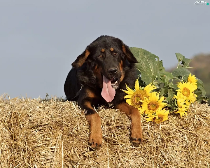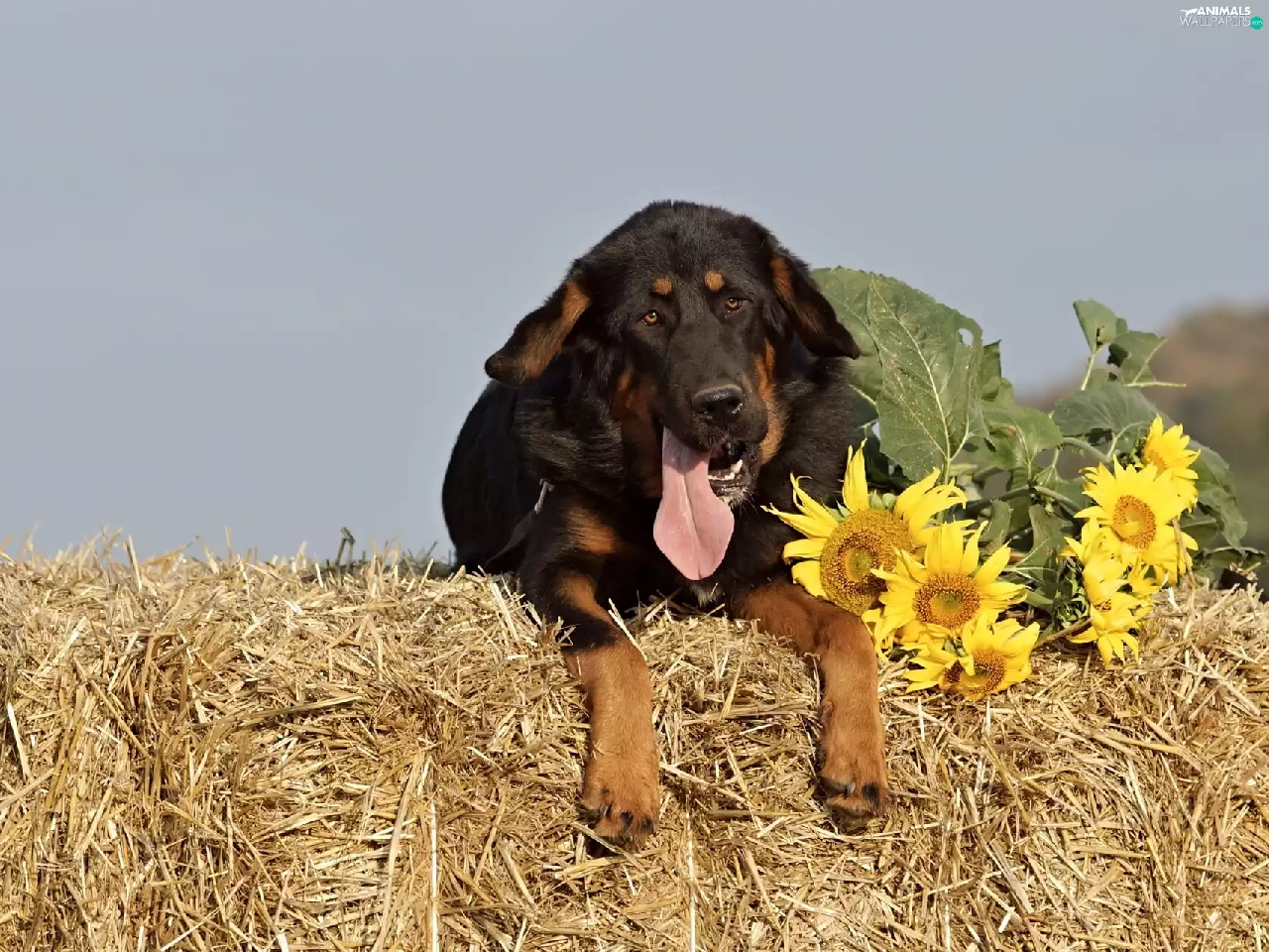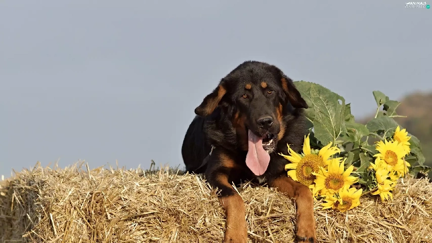 brick, mastiff, Hay, Bale, dog, straw, Nice sunflowers