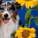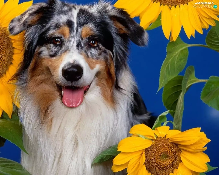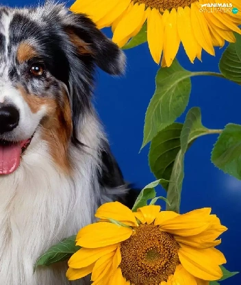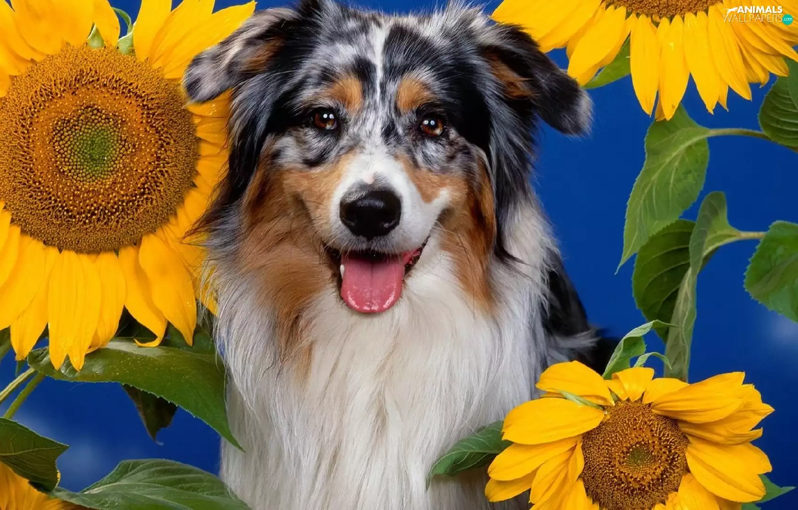 Australian Shepherd, Nice sunflowers, Australian Shepherd