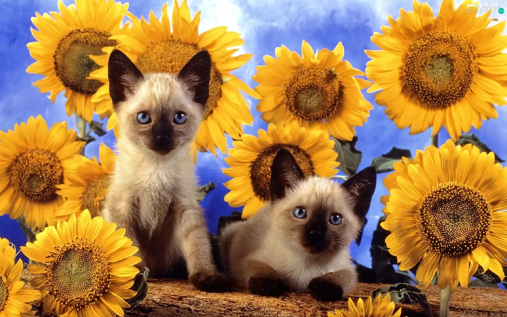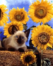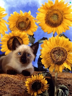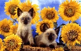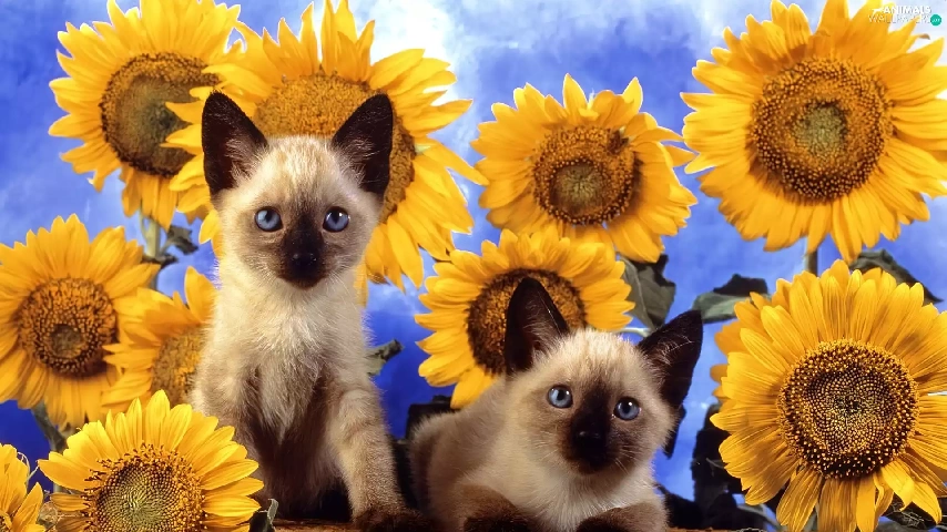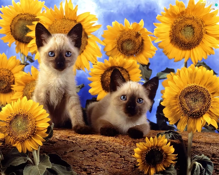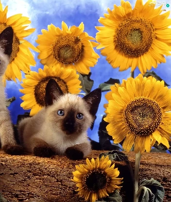 Nice sunflowers, Two cars, cats
