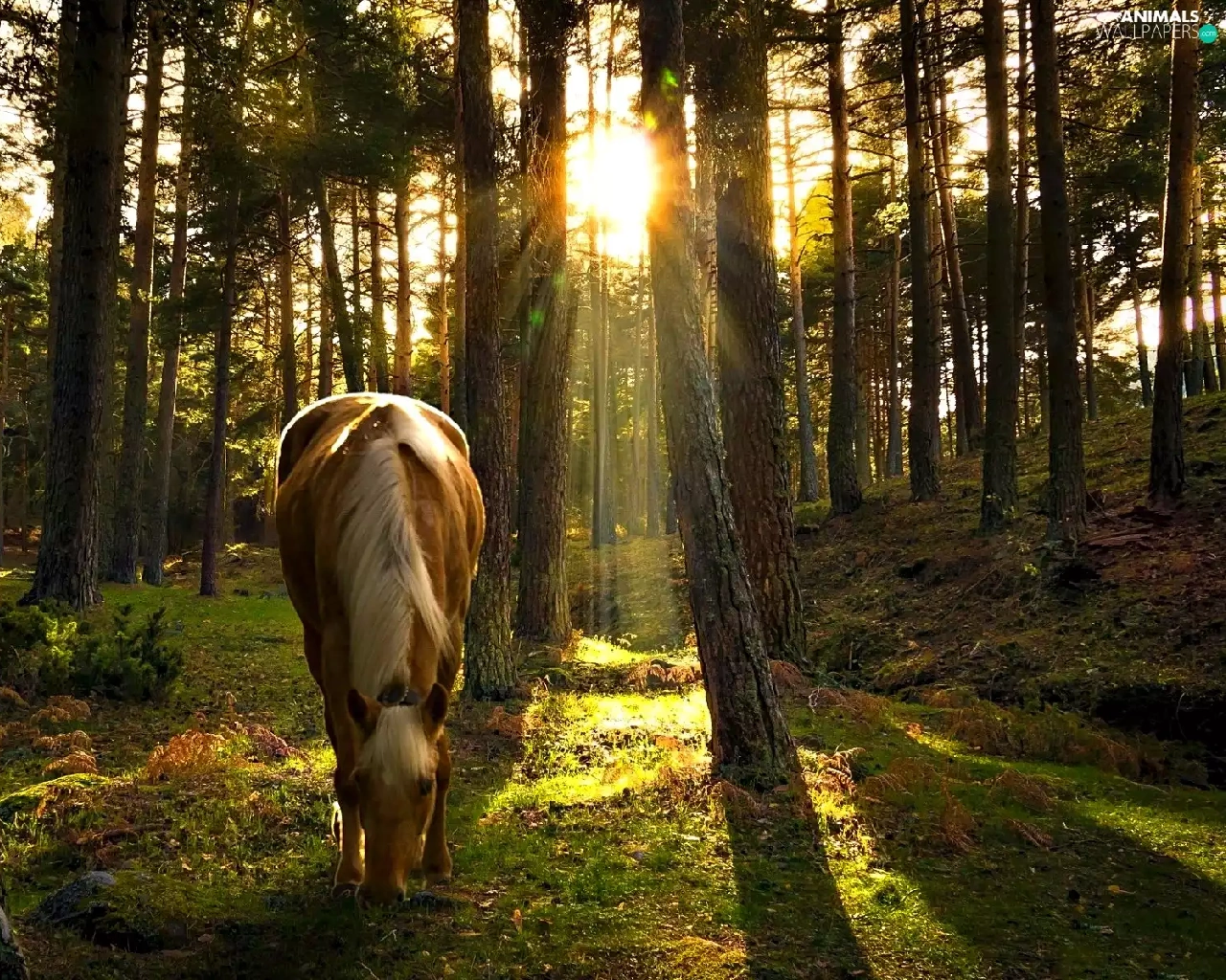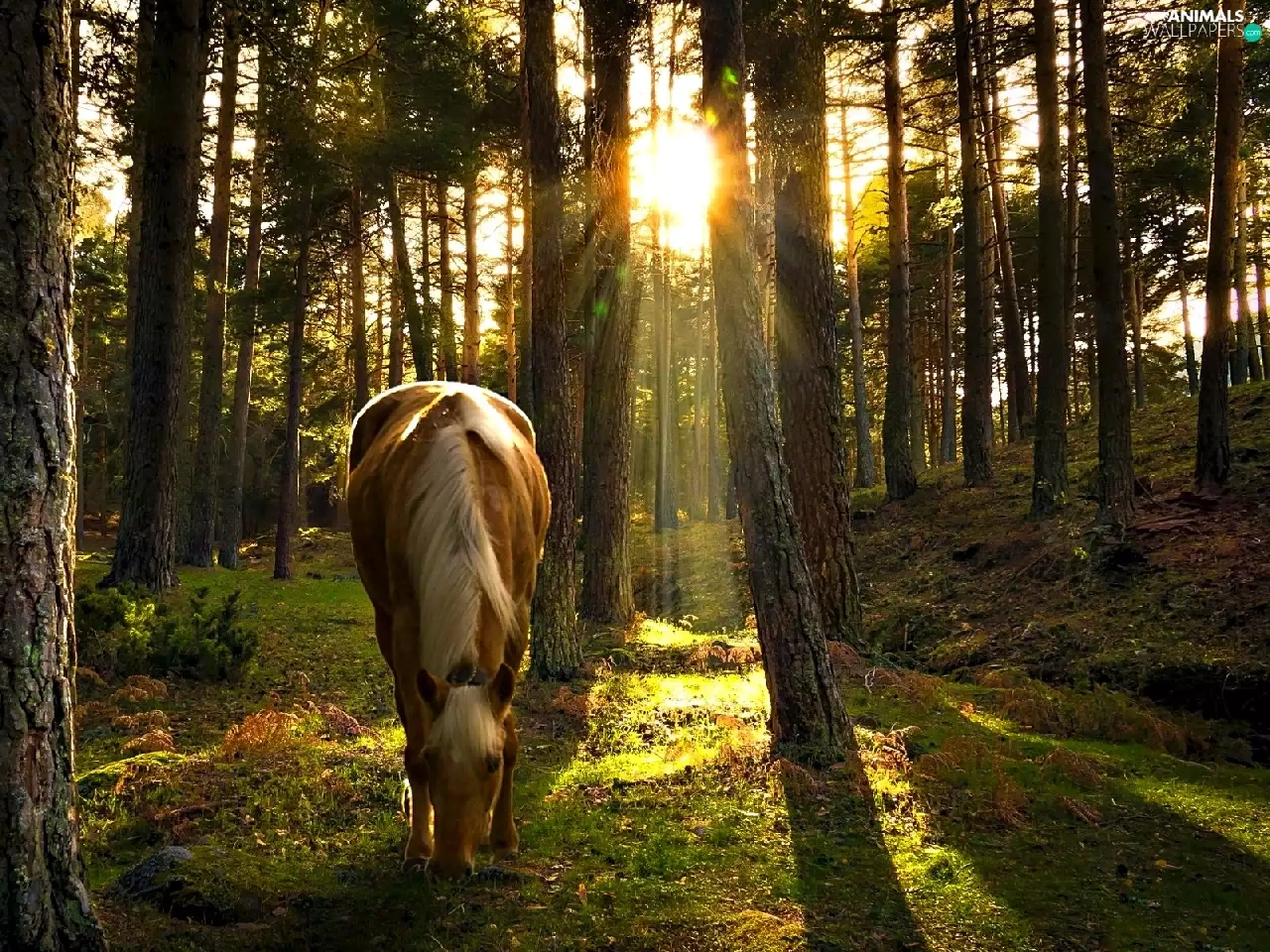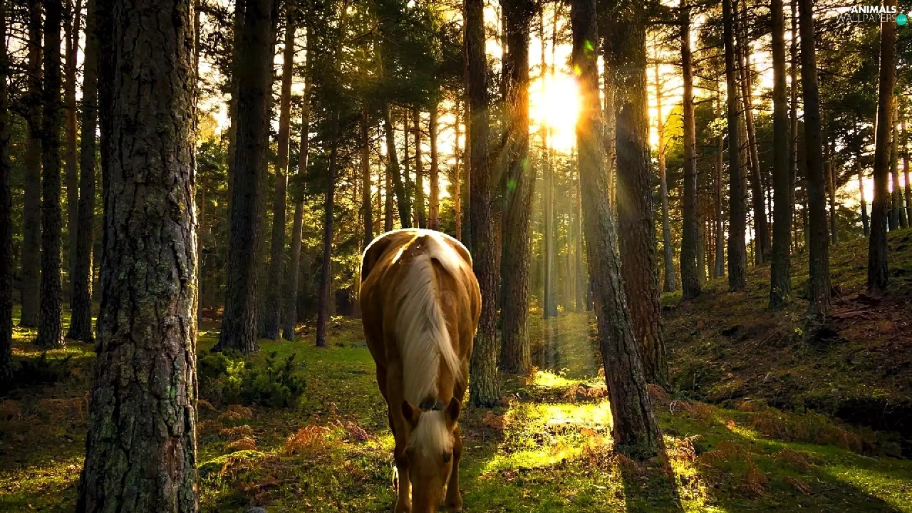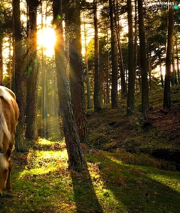 Sunrise, Horse, forest