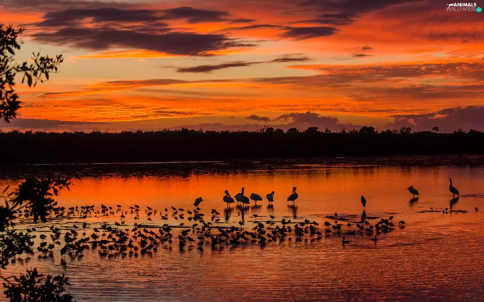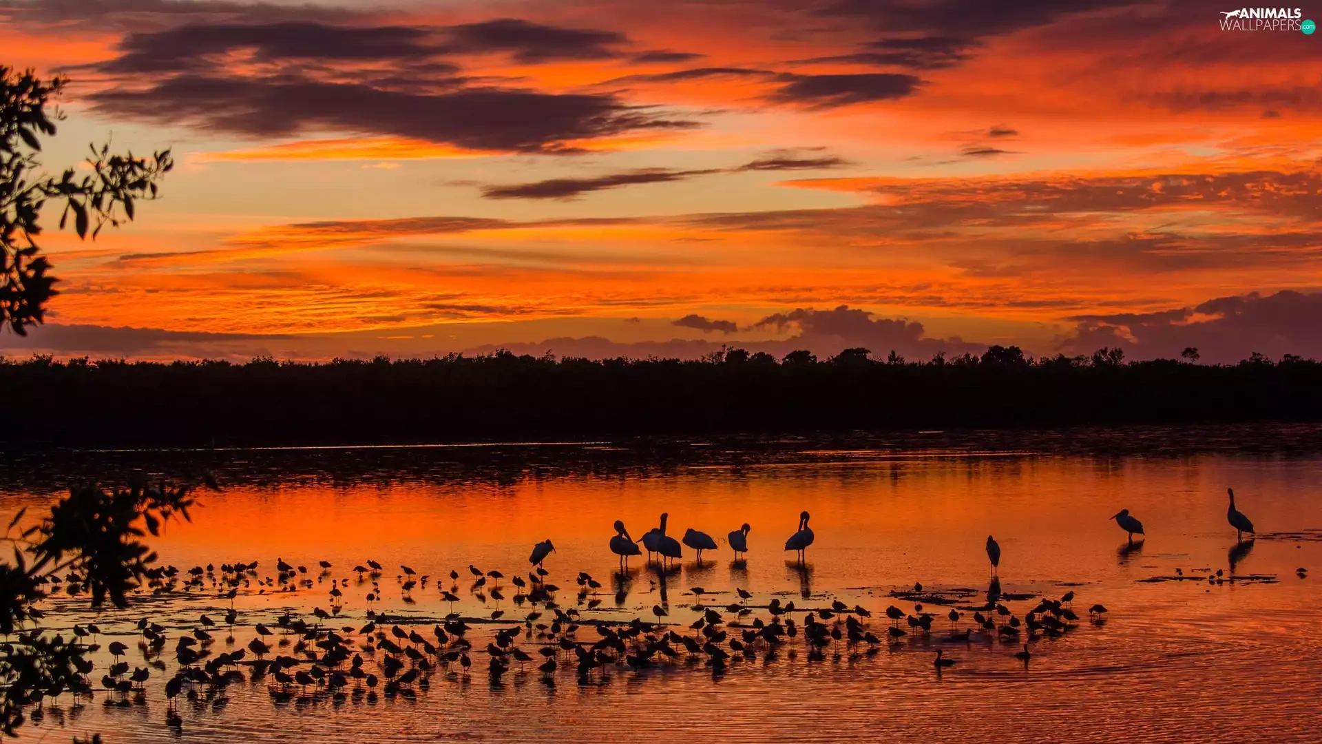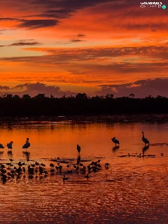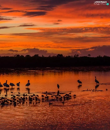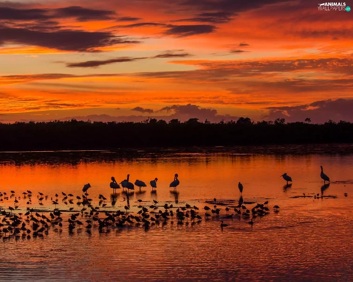 birds, clouds, Great Sunsets