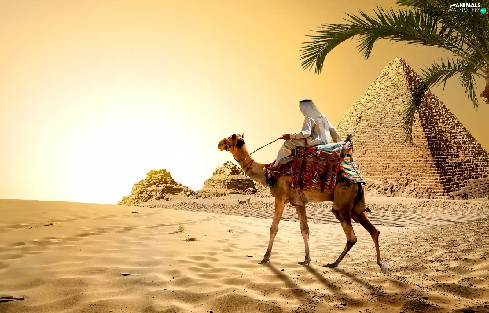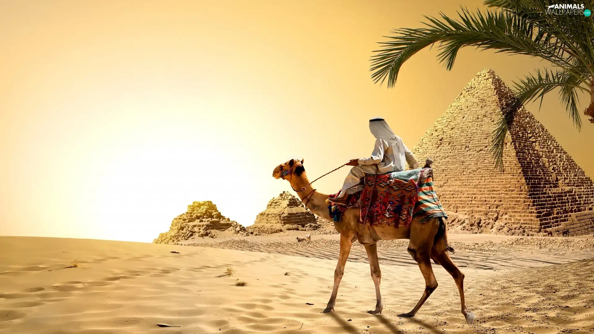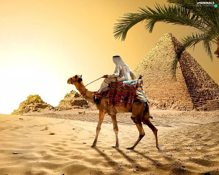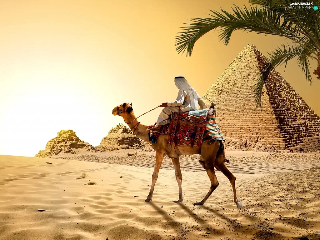 Sand, Camel, Palm, Pyramid, Egypt, Desert, Great Sunsets