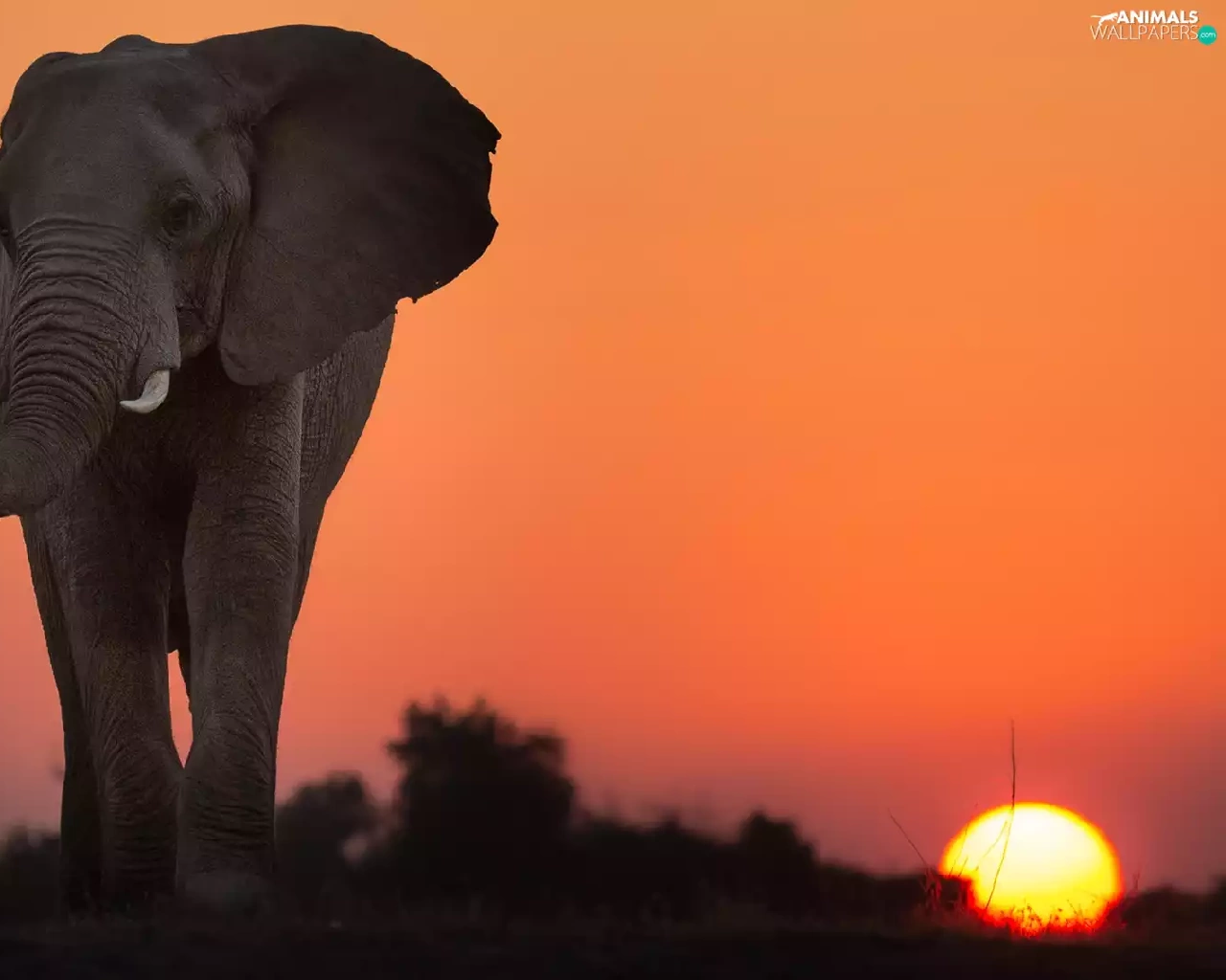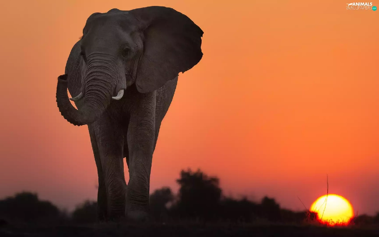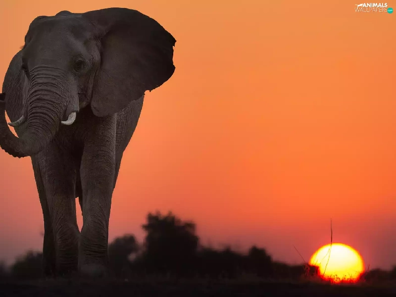 African Elephant, Great Sunsets, Sky, savanna