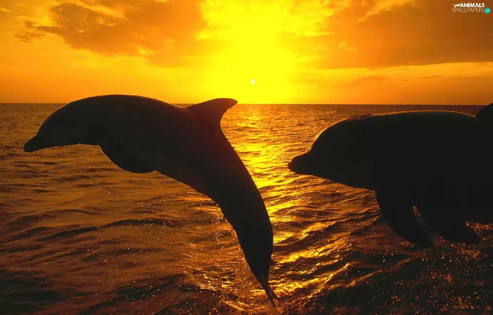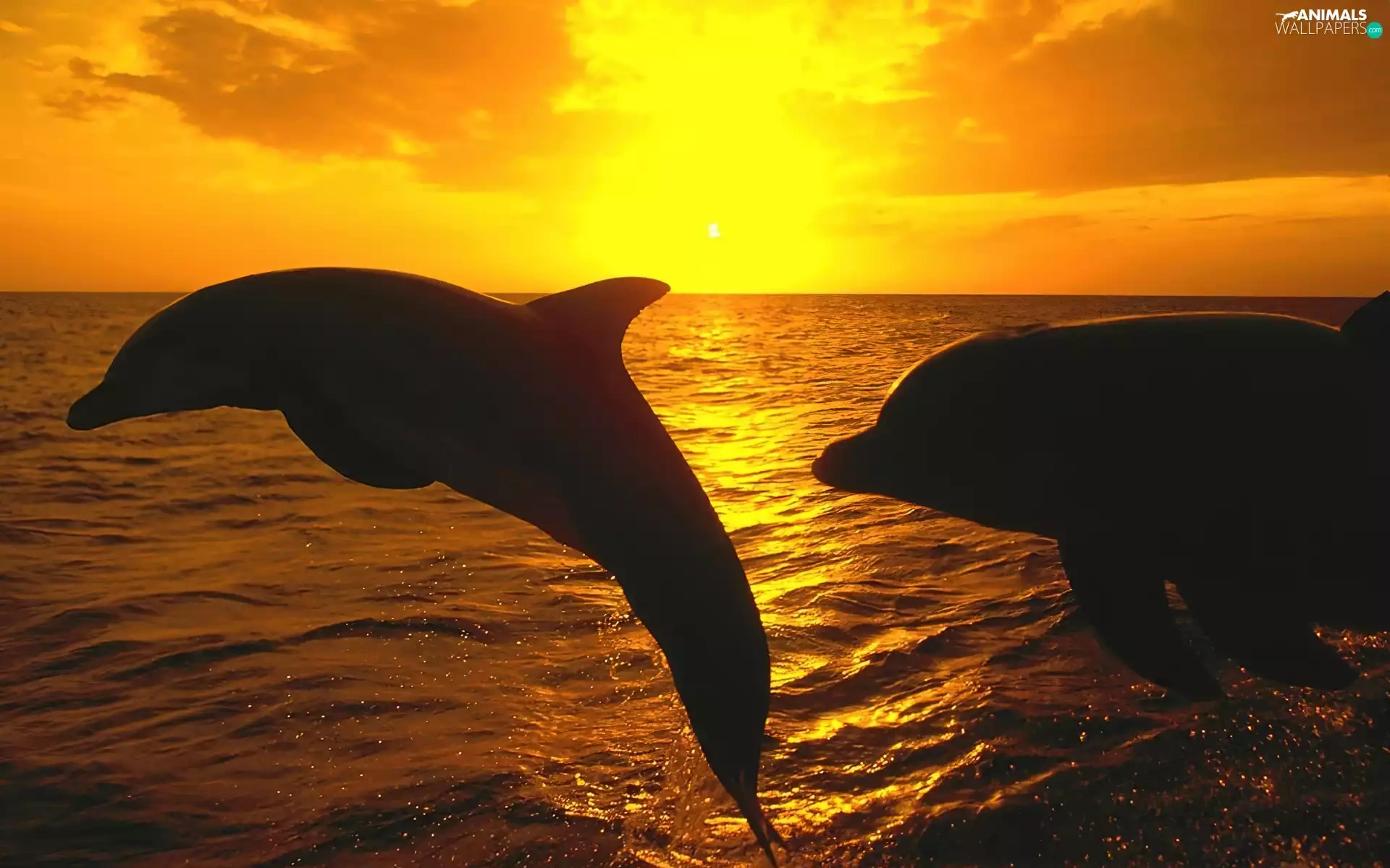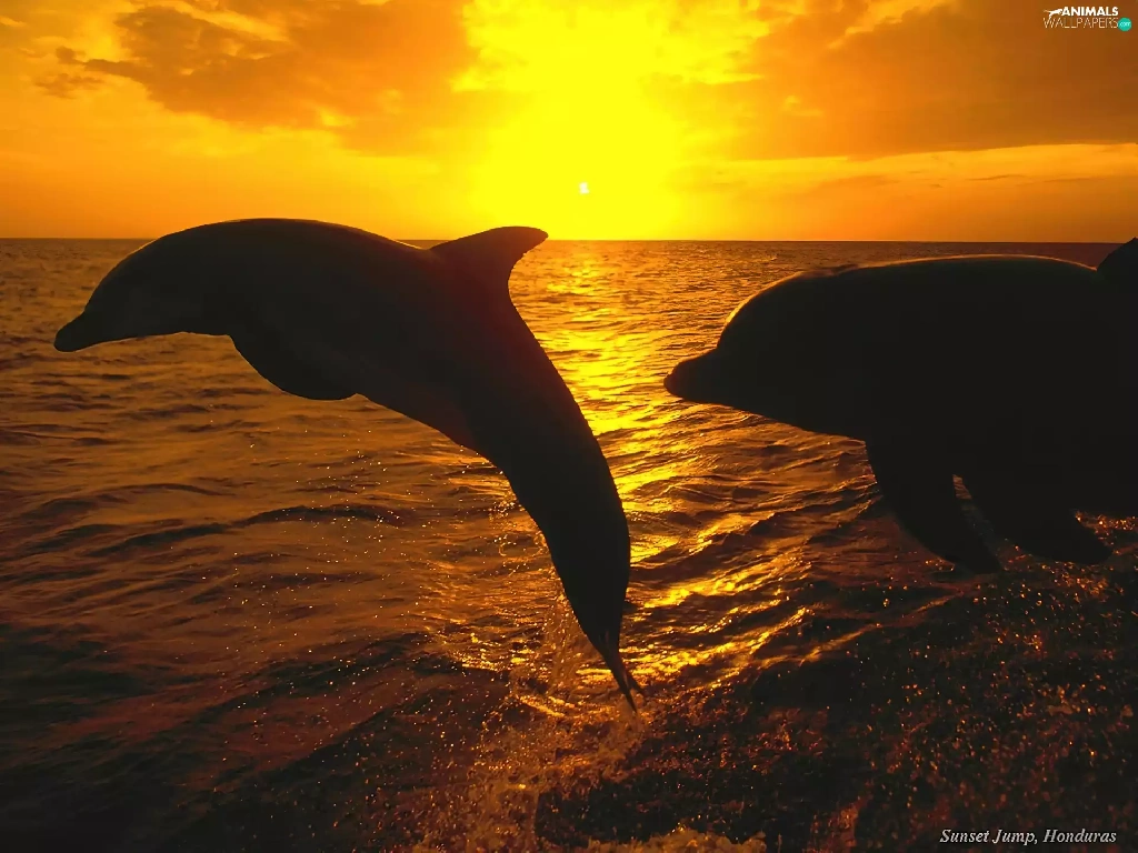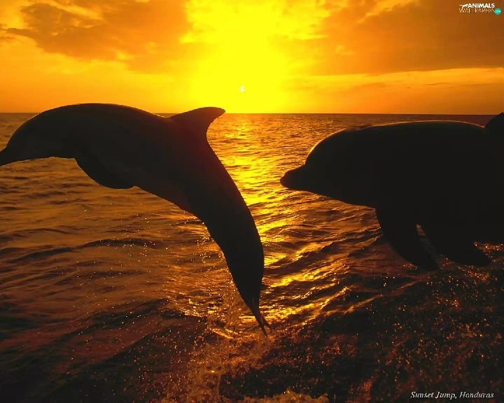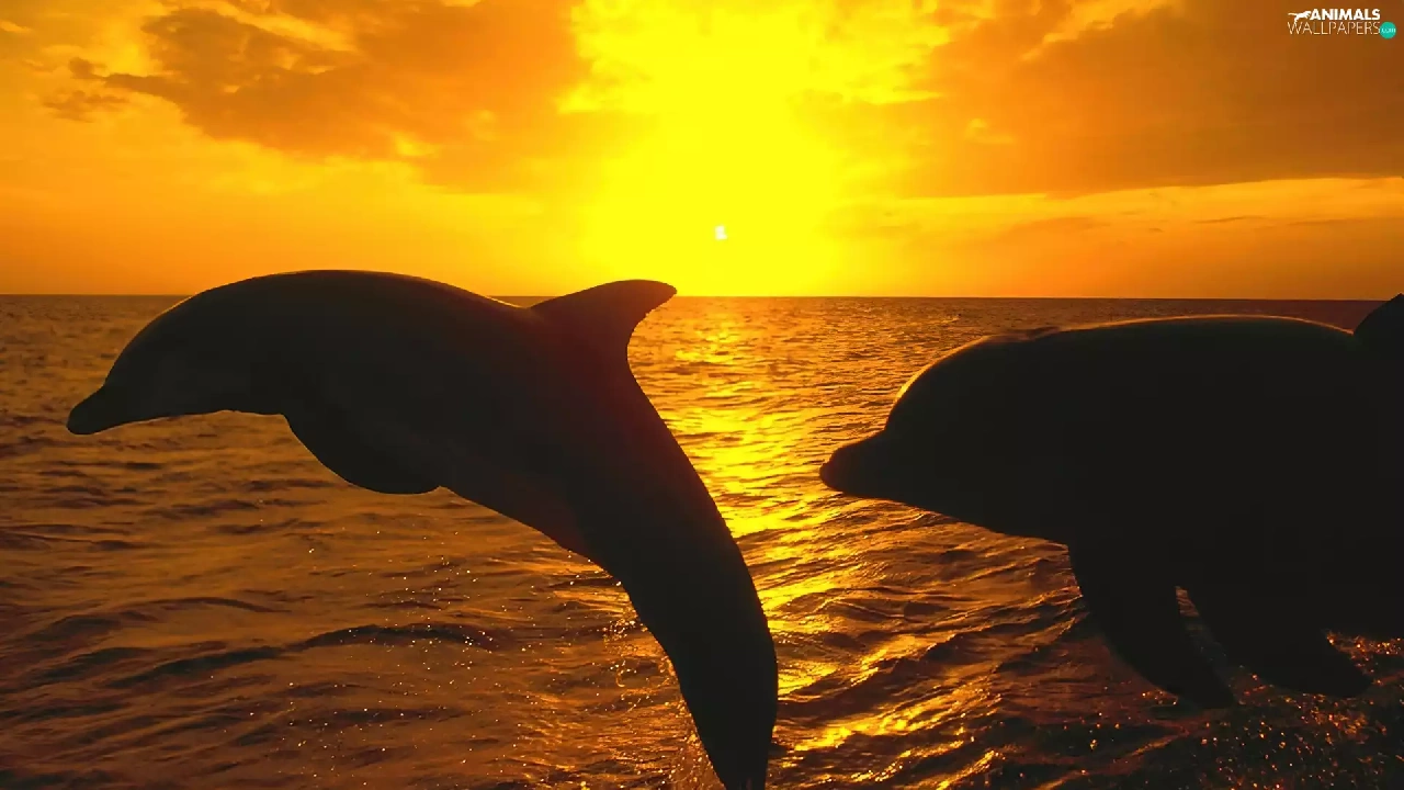 sea, dolphins, Great Sunsets
