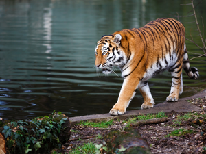 Stone, tiger, viewes, Rocks, White, trees, Great Sunsets