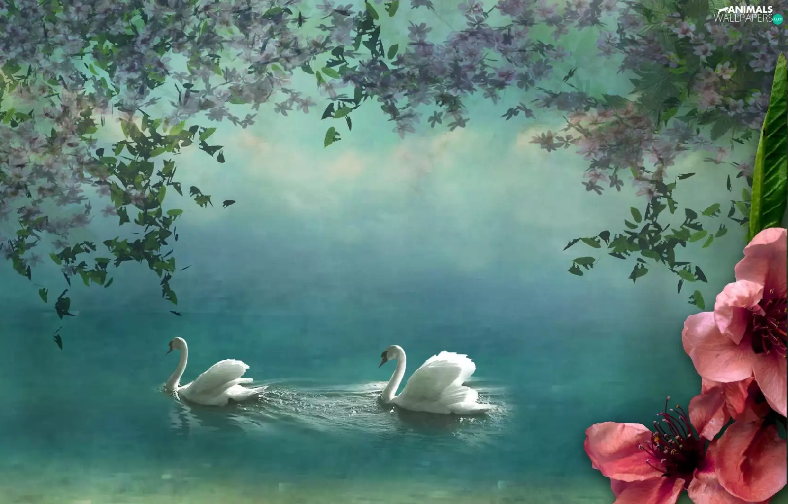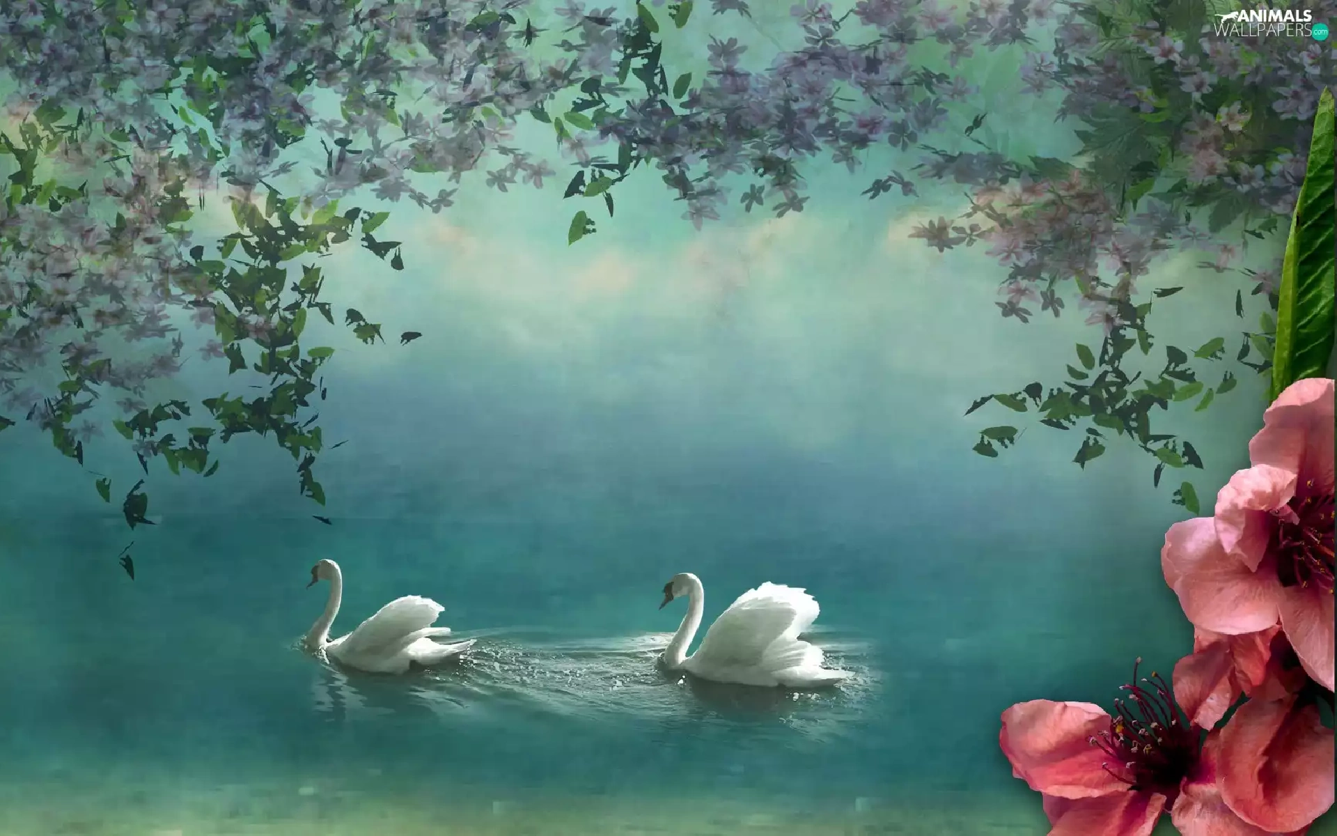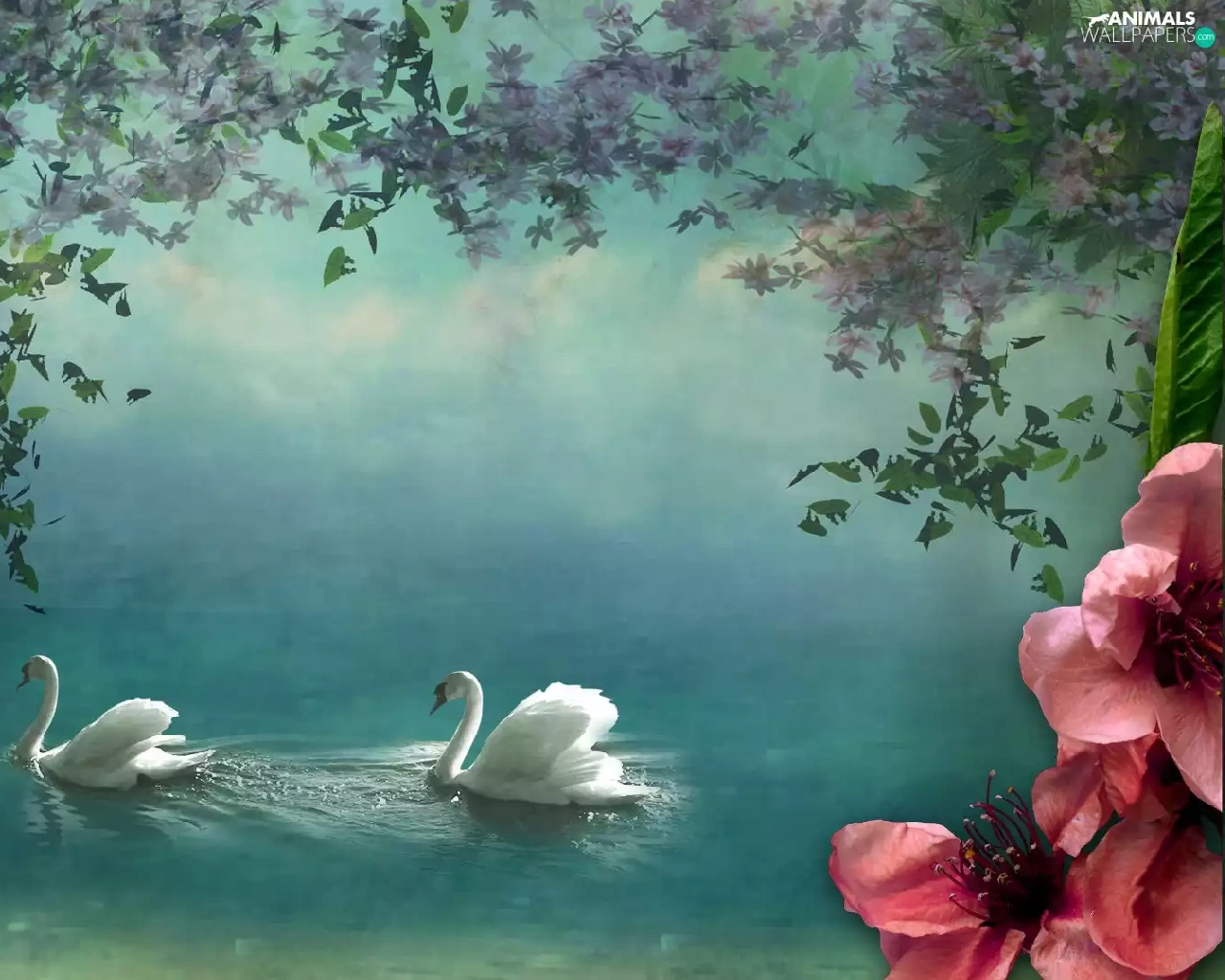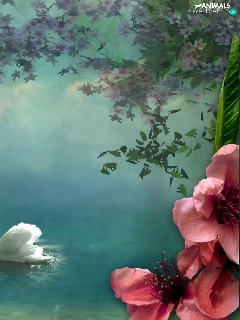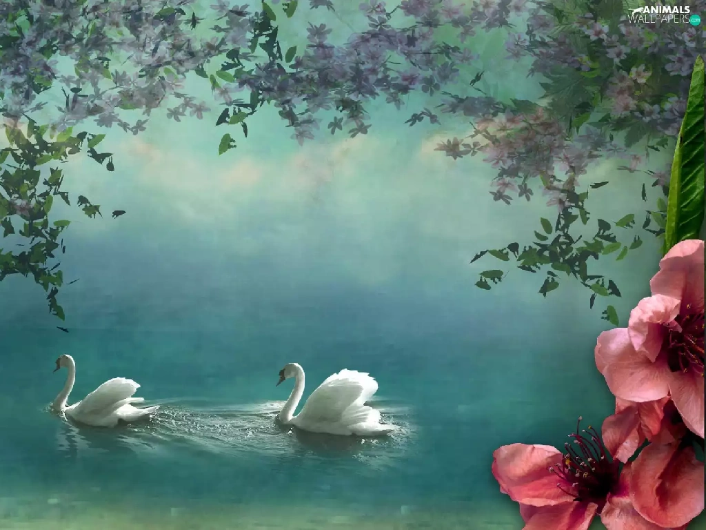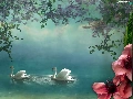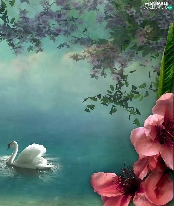 Swan, Colourfull Flowers