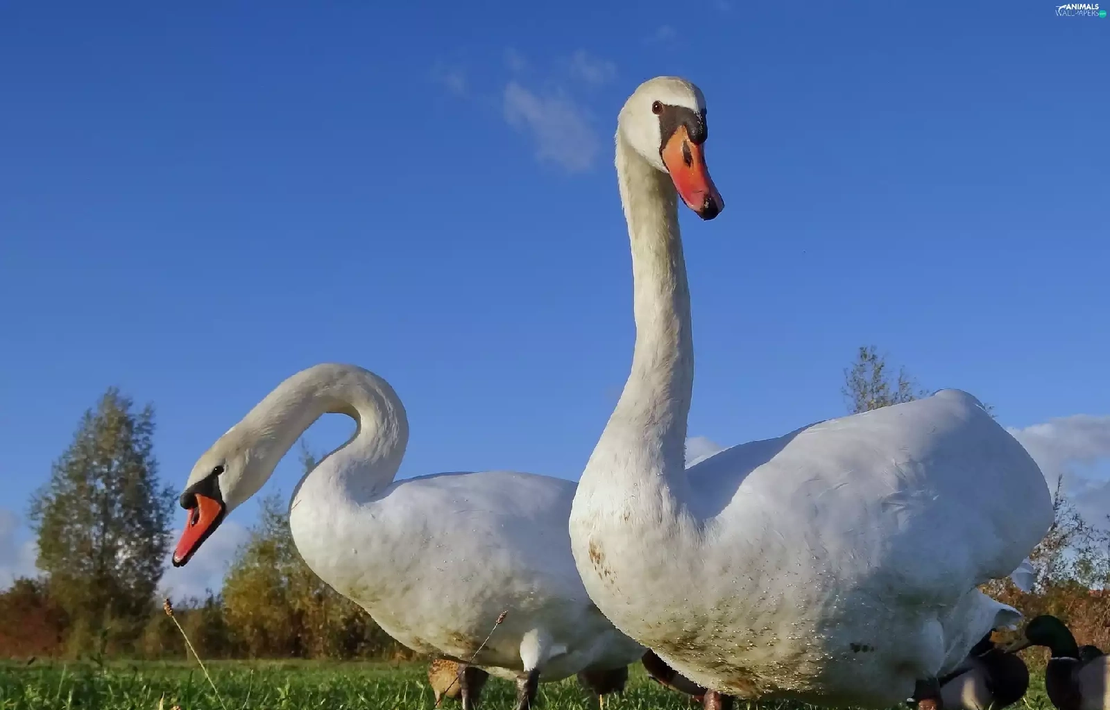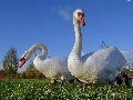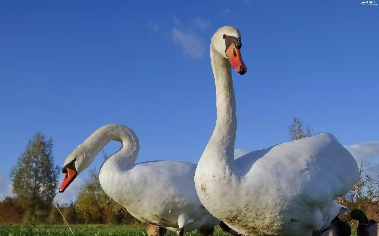 grass, Two cars, Swan