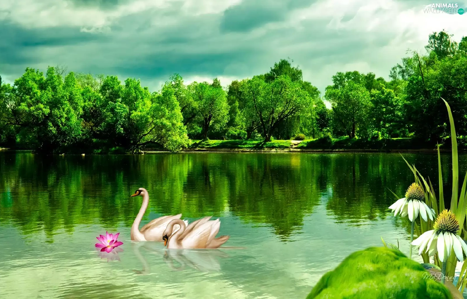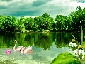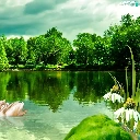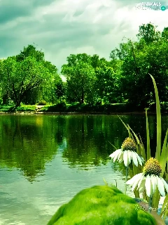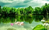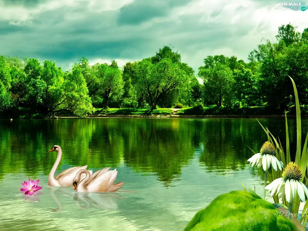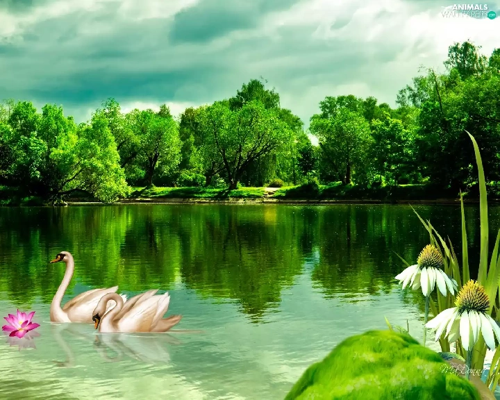 lake, trees, viewes, Swan