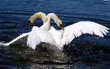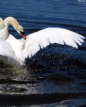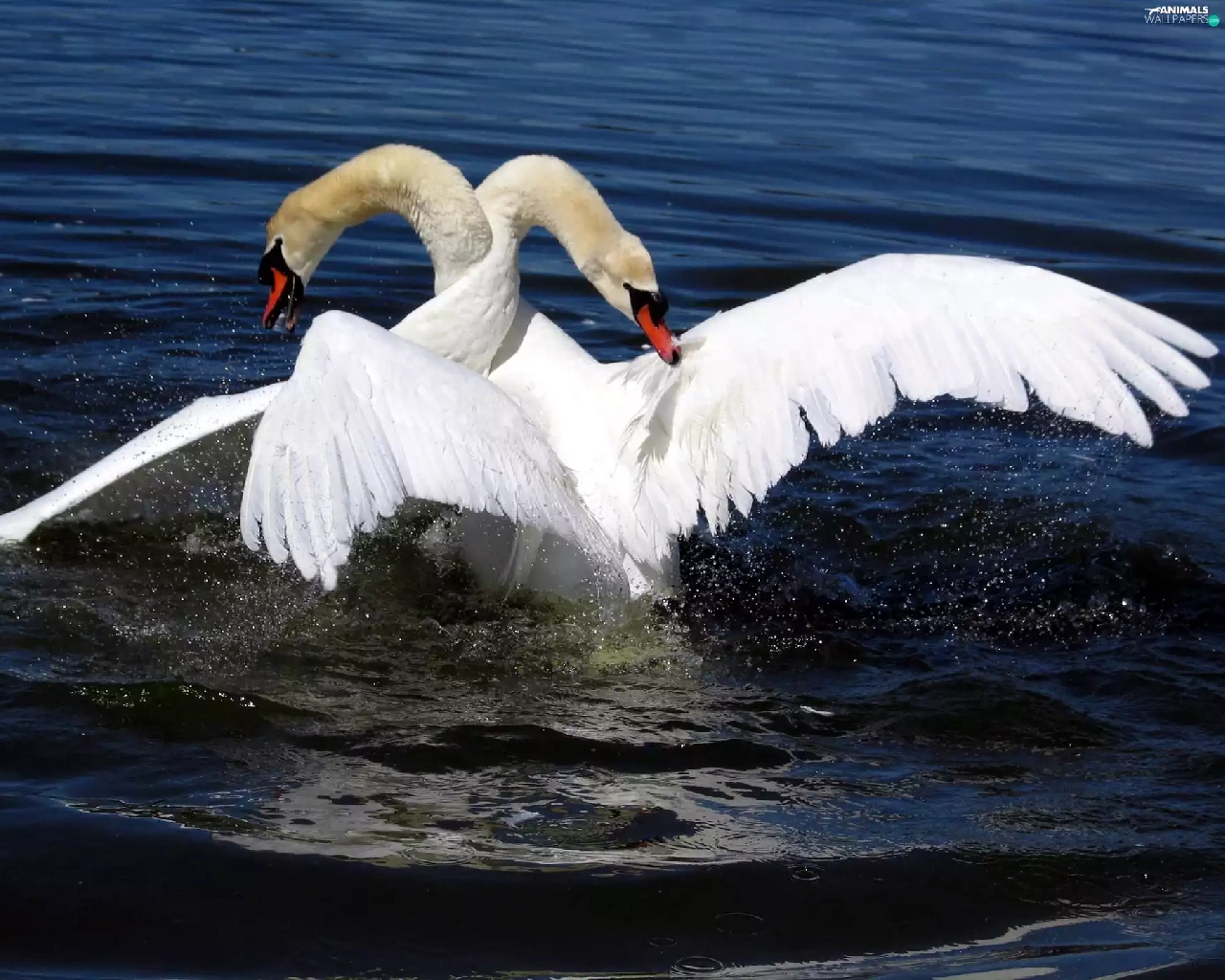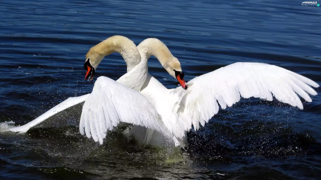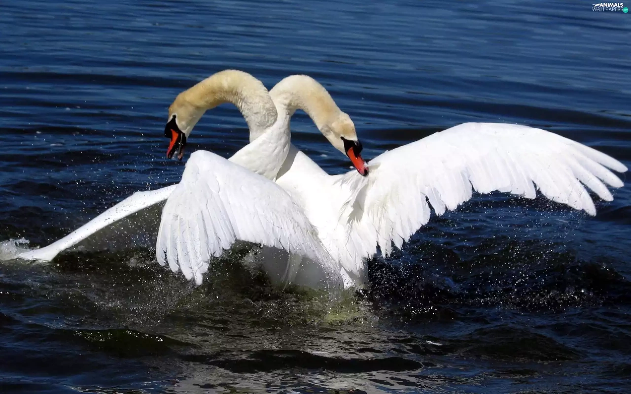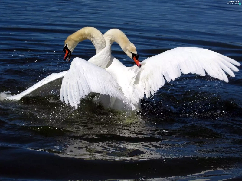 water, Two cars, Swan