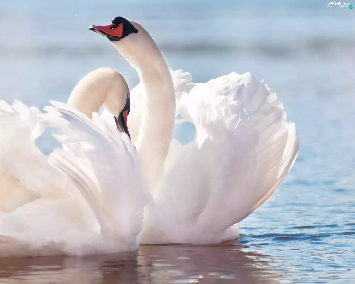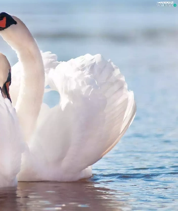 beatyfull, Swan, water, Two cars
