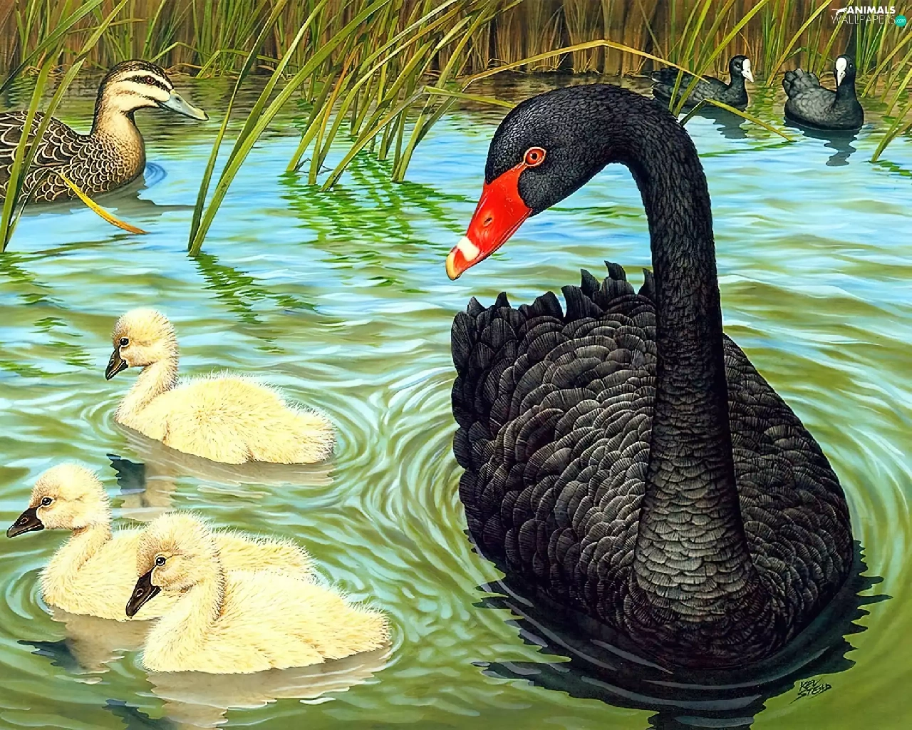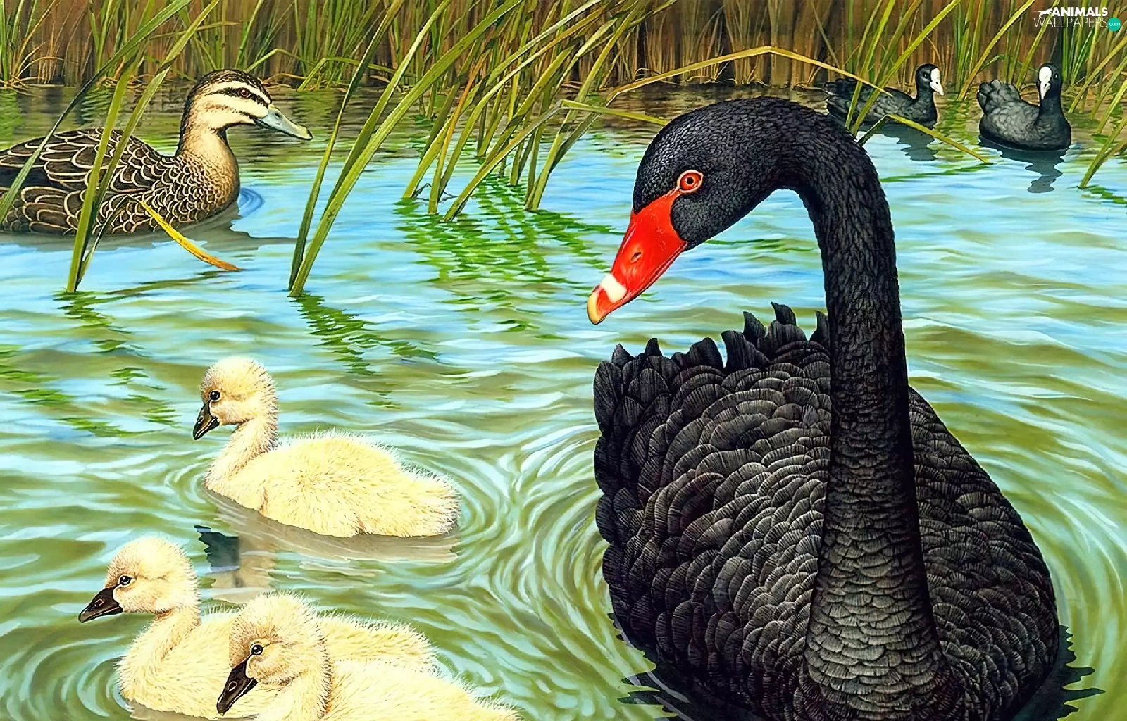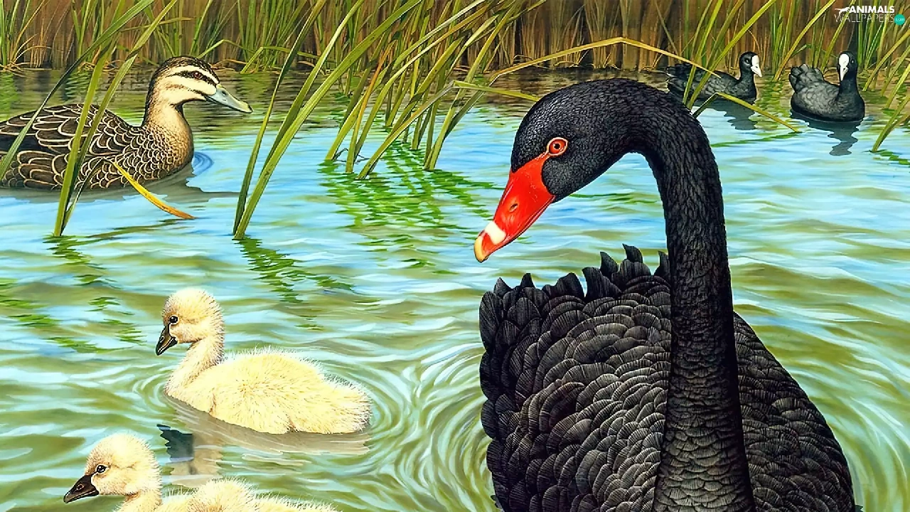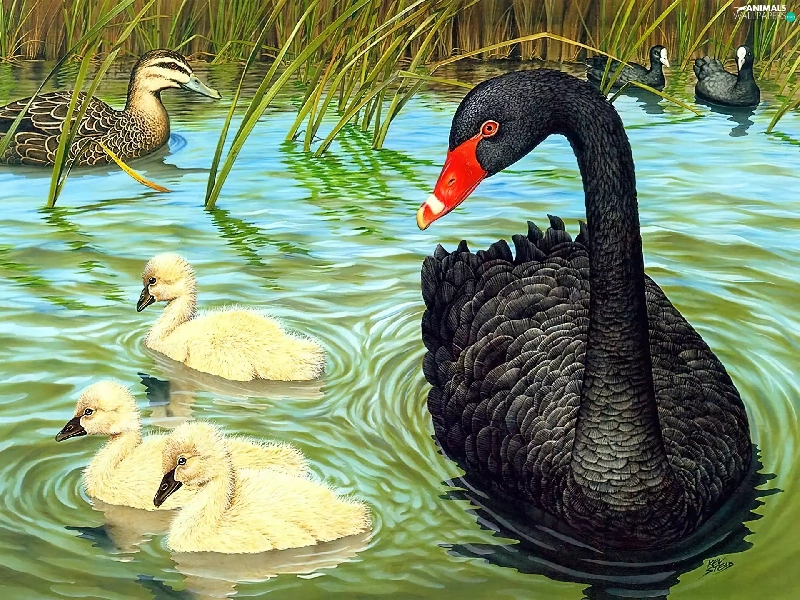 Black, young, picture, Swans
