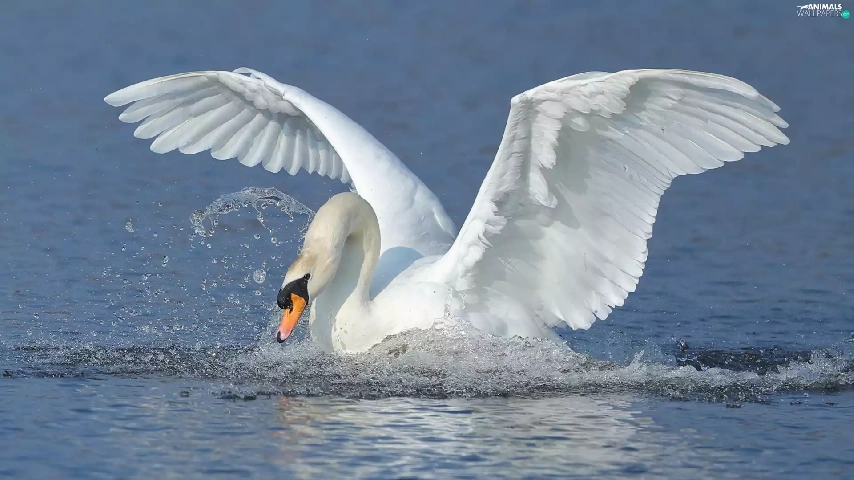 White, water, wings, Swans