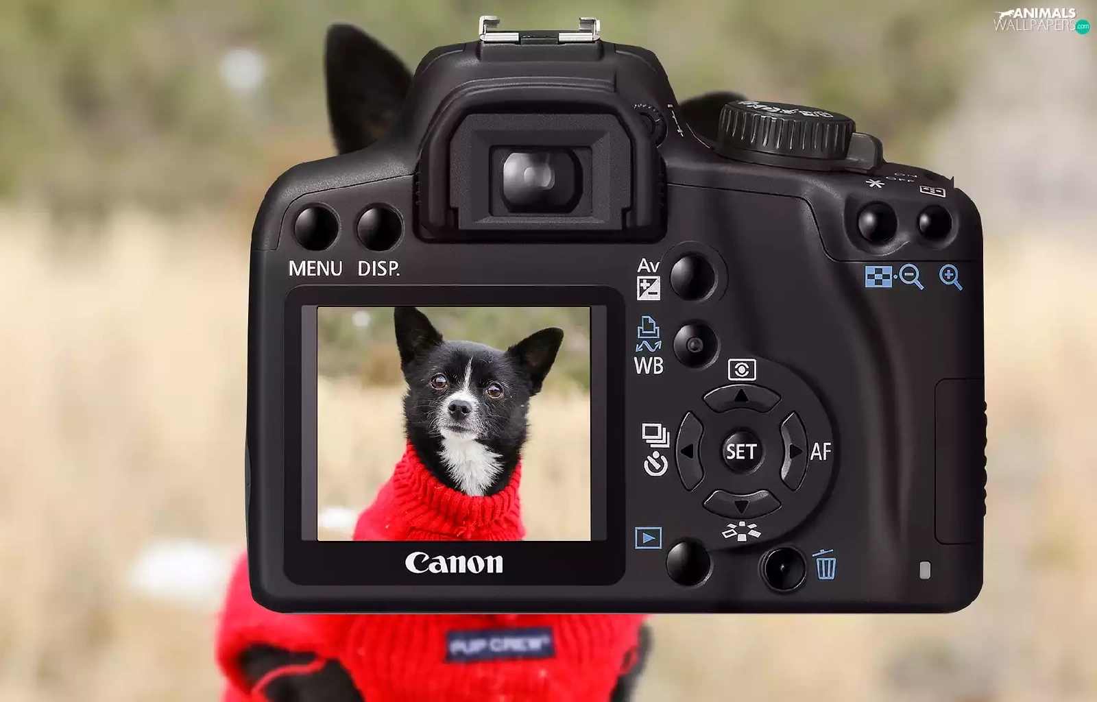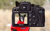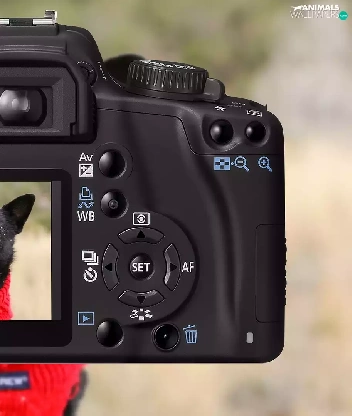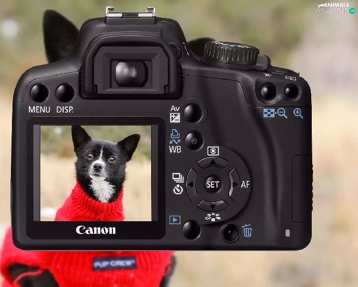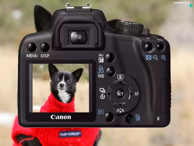 Red, Sweater, Canon, dog, Camera
