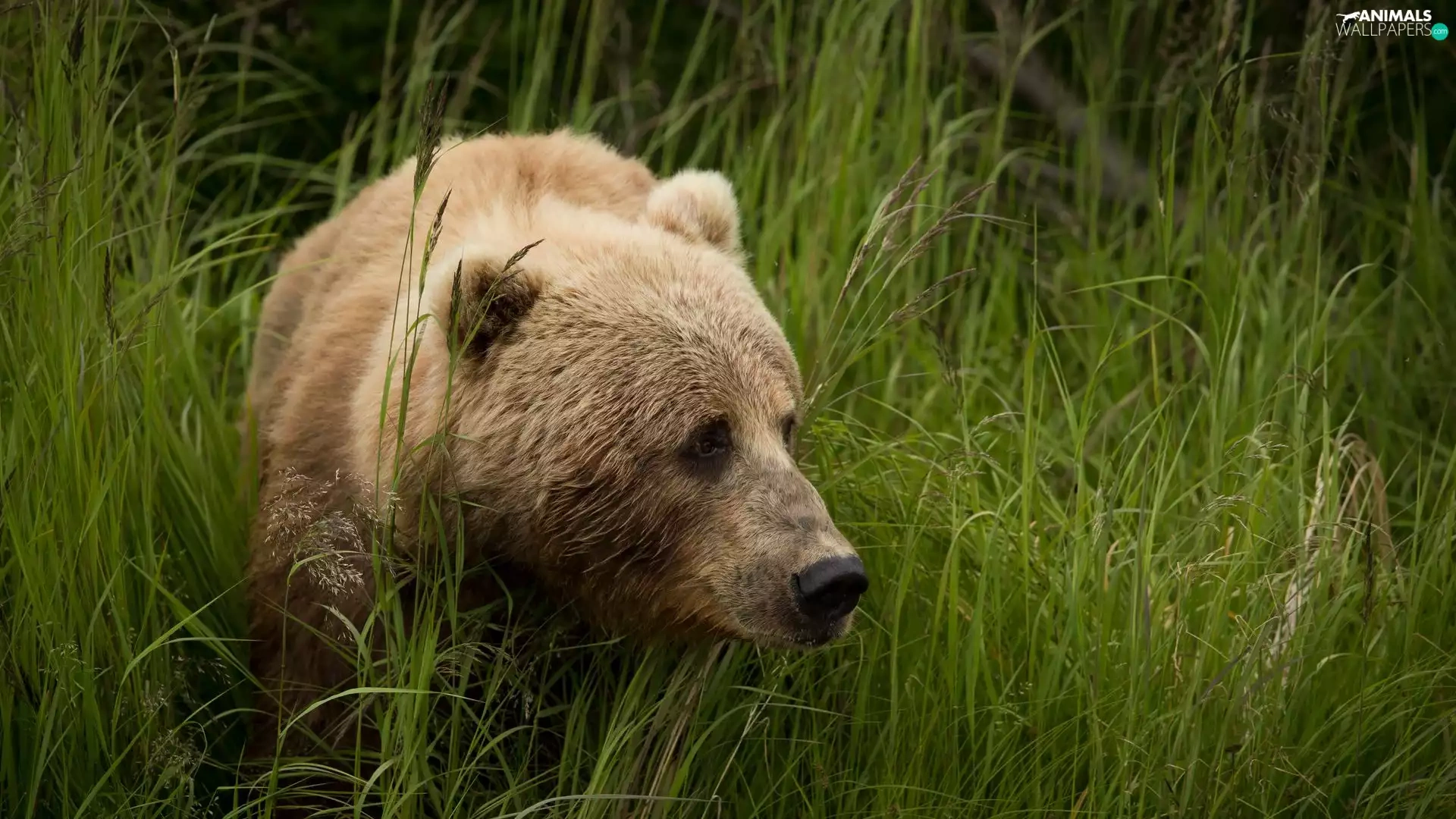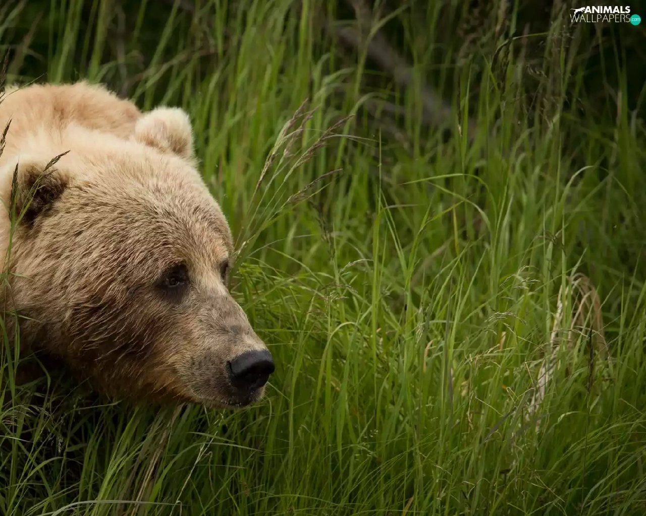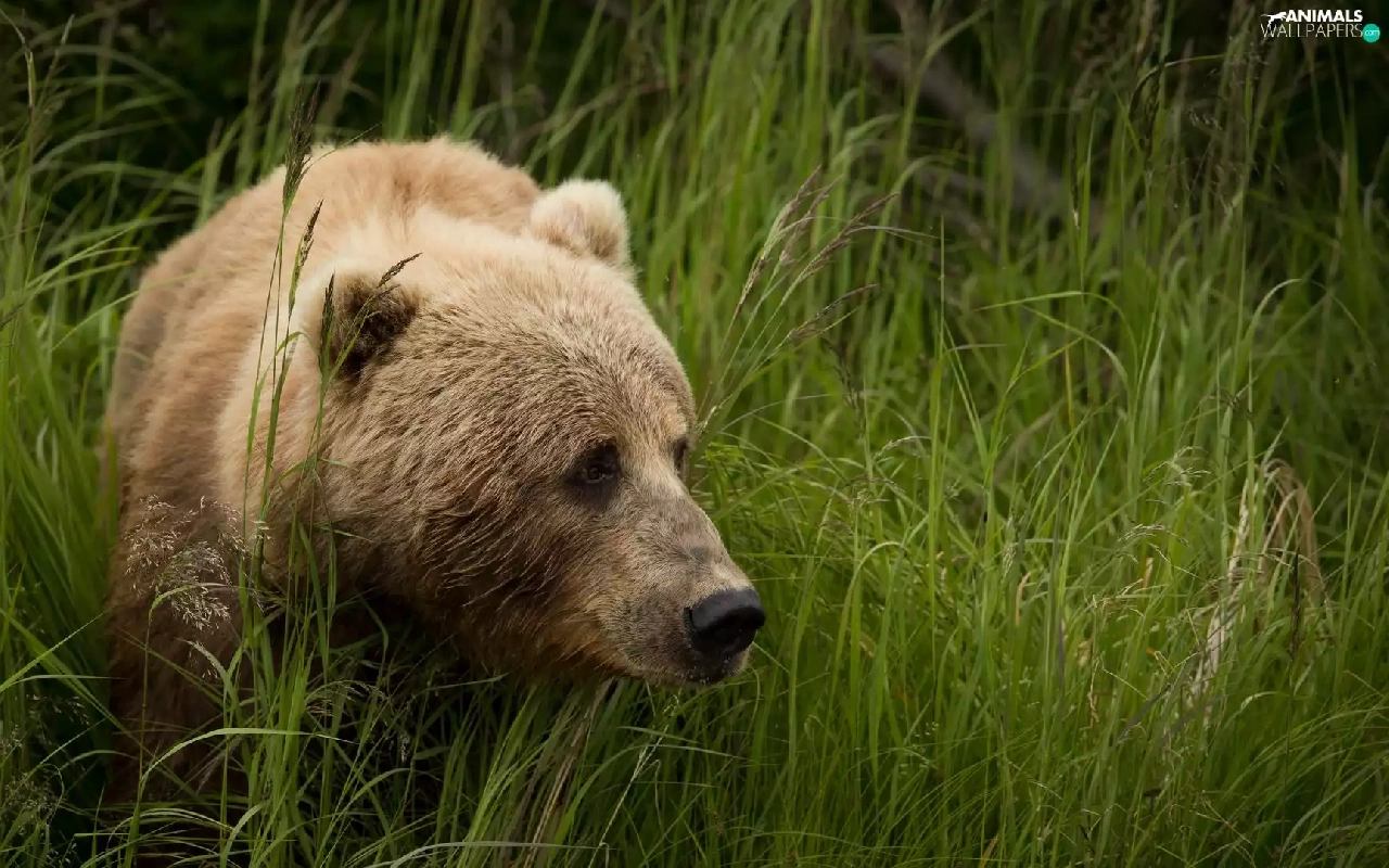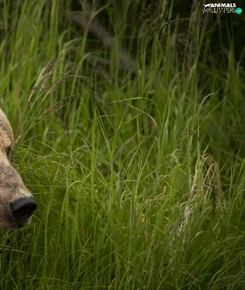 grass, Brown bear, tall