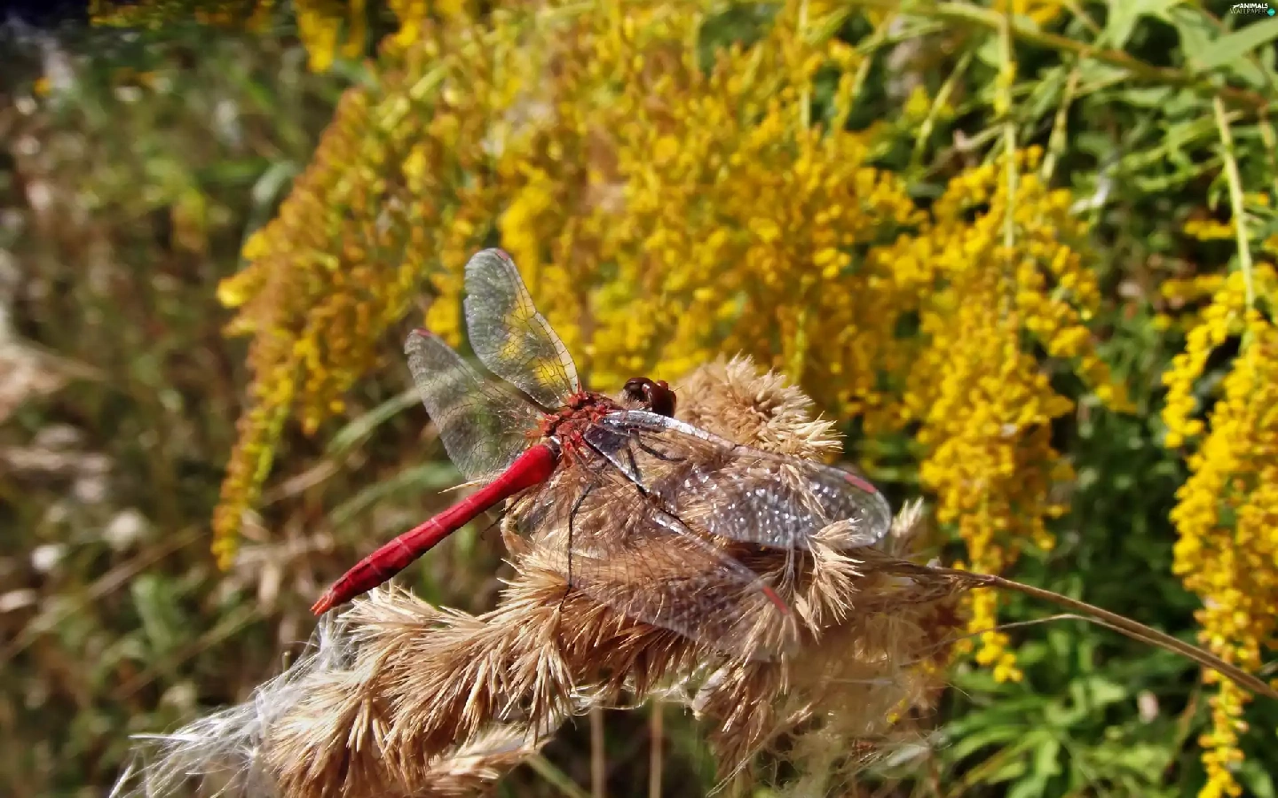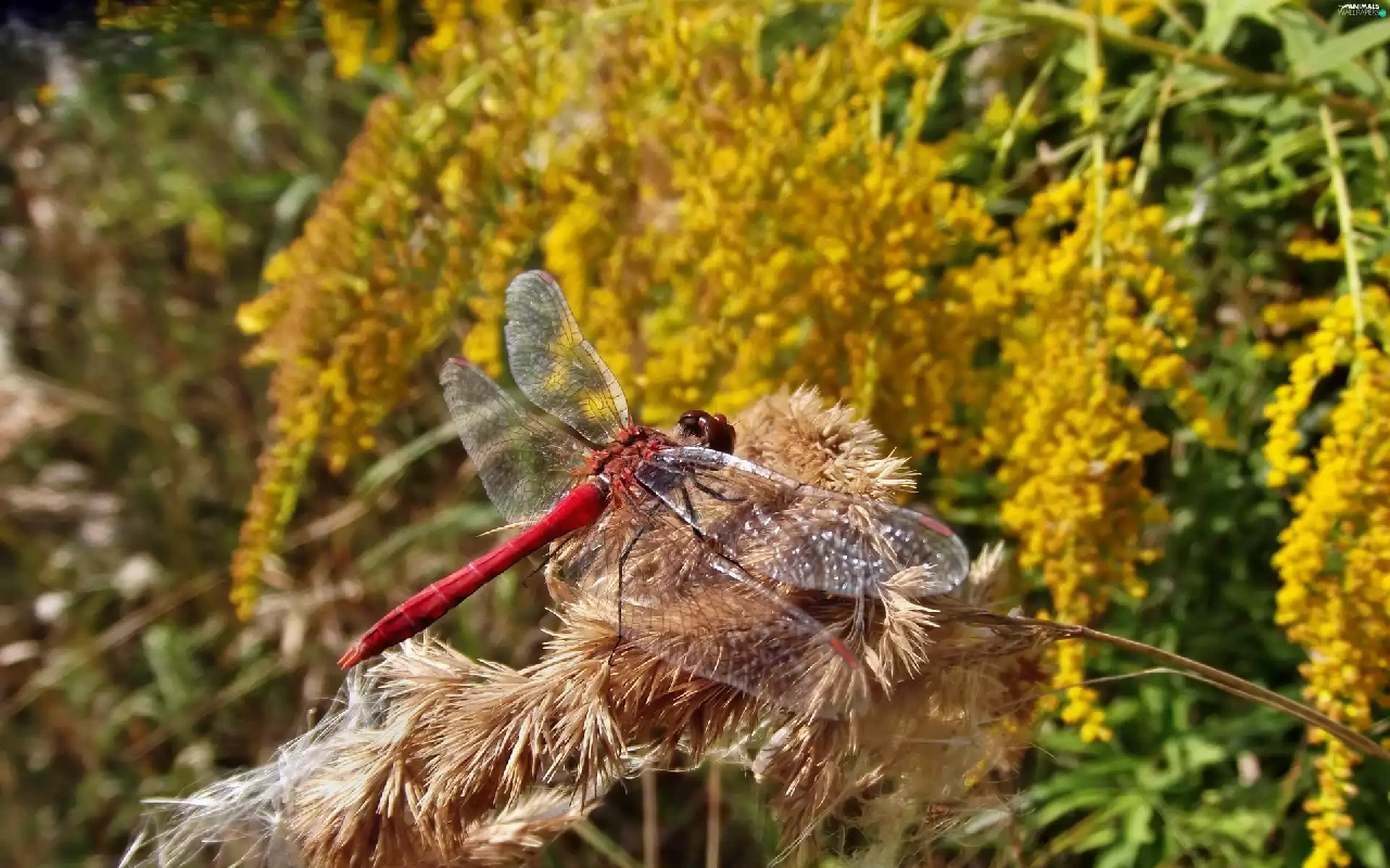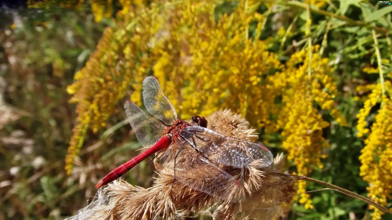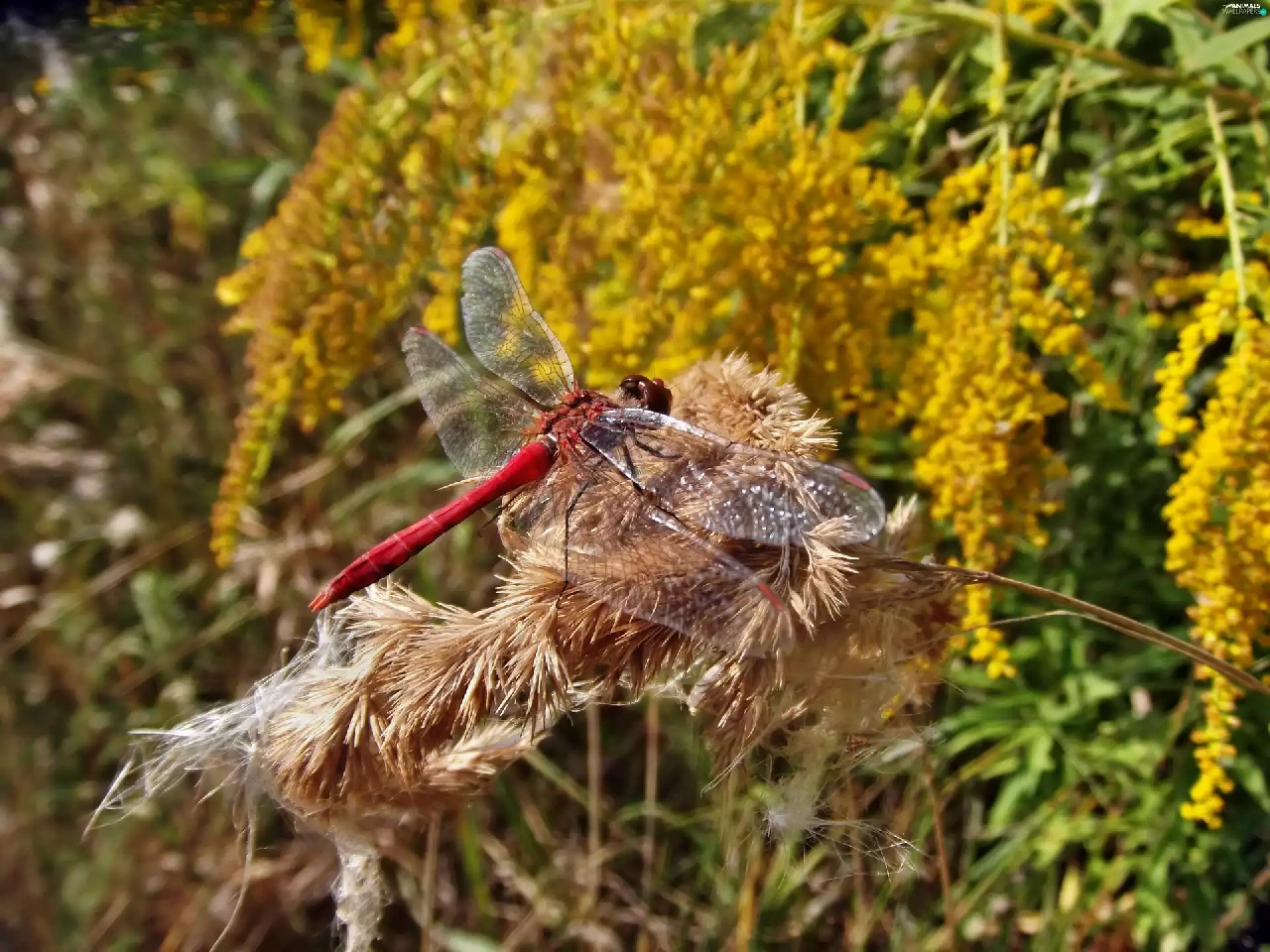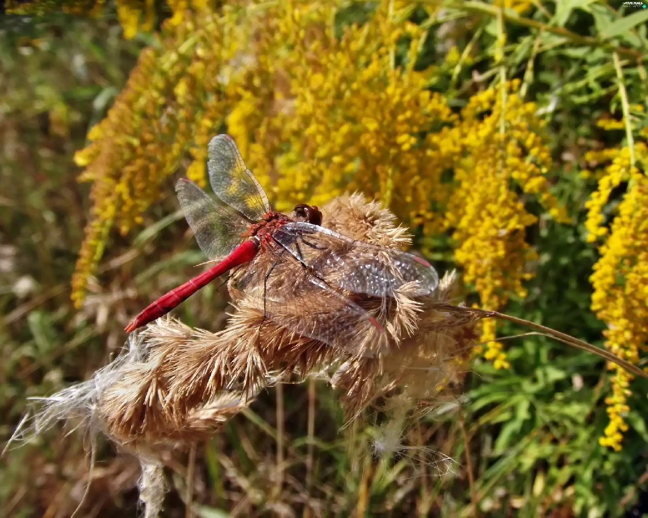 autumn, dragon-fly, teasel