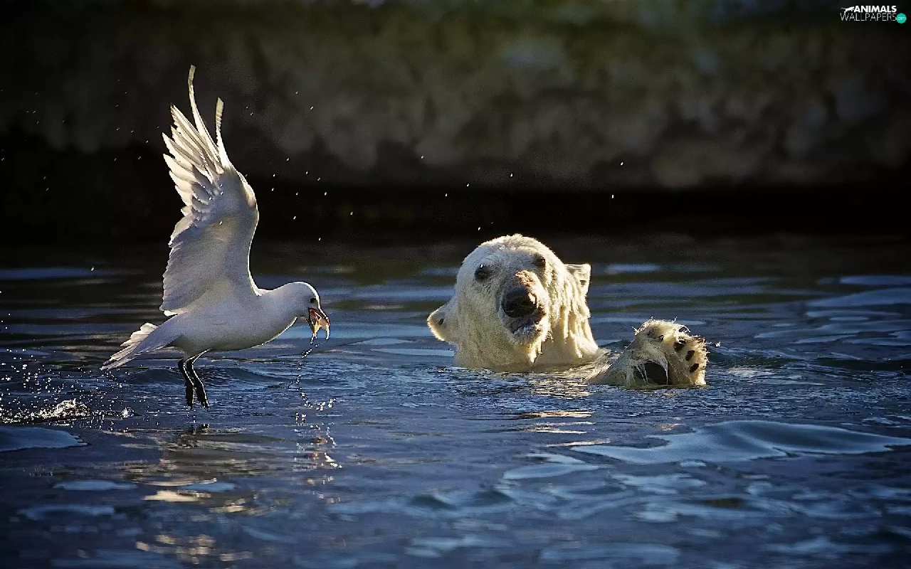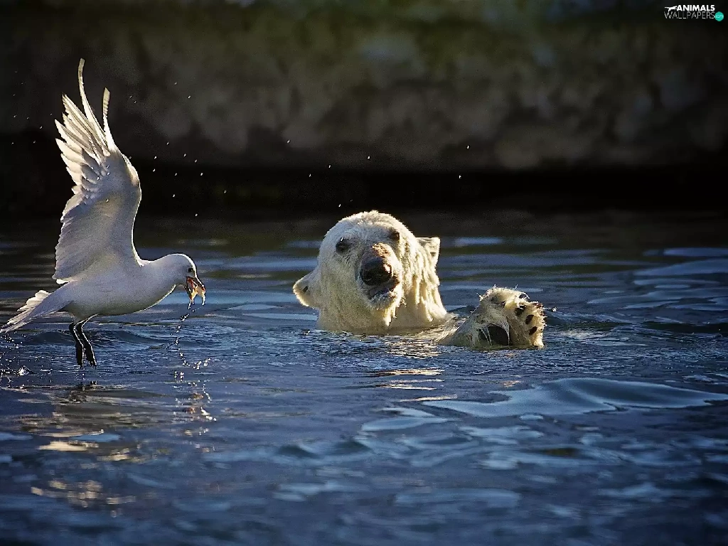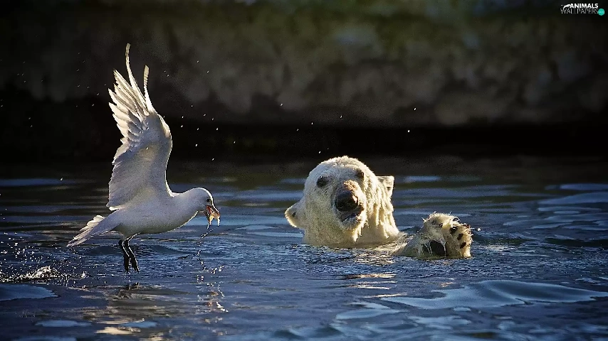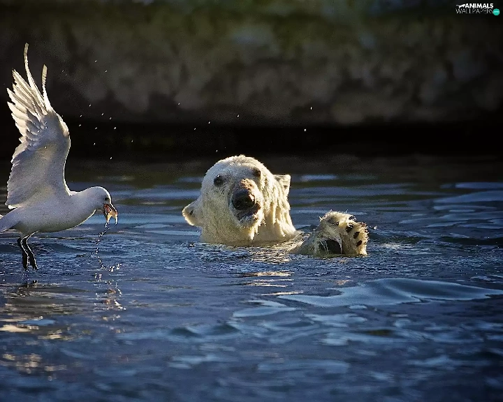 seagull, Teddy Bear, water, Head